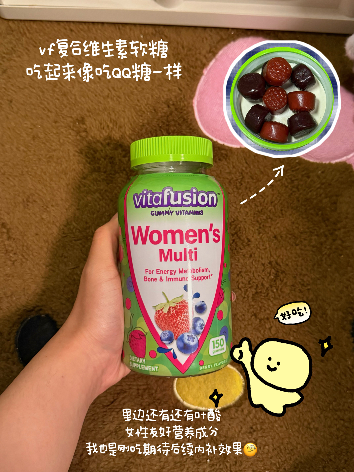 本篇笔记关联了Vitafusion 女士多维元气糖 瓶装 补充营养增强免疫力 150粒、AMORTALS/尔木萄 擦脸一次性卸妆洁面加厚卷筒亲肤洗脸巾 干湿两用悬挂抽取式 70片/包、X2HOMME 睡衣小熊莱恩 毛绒公仔 莱恩睡衣小熊等商品,为用户提供真实的使用体验和购买参考。