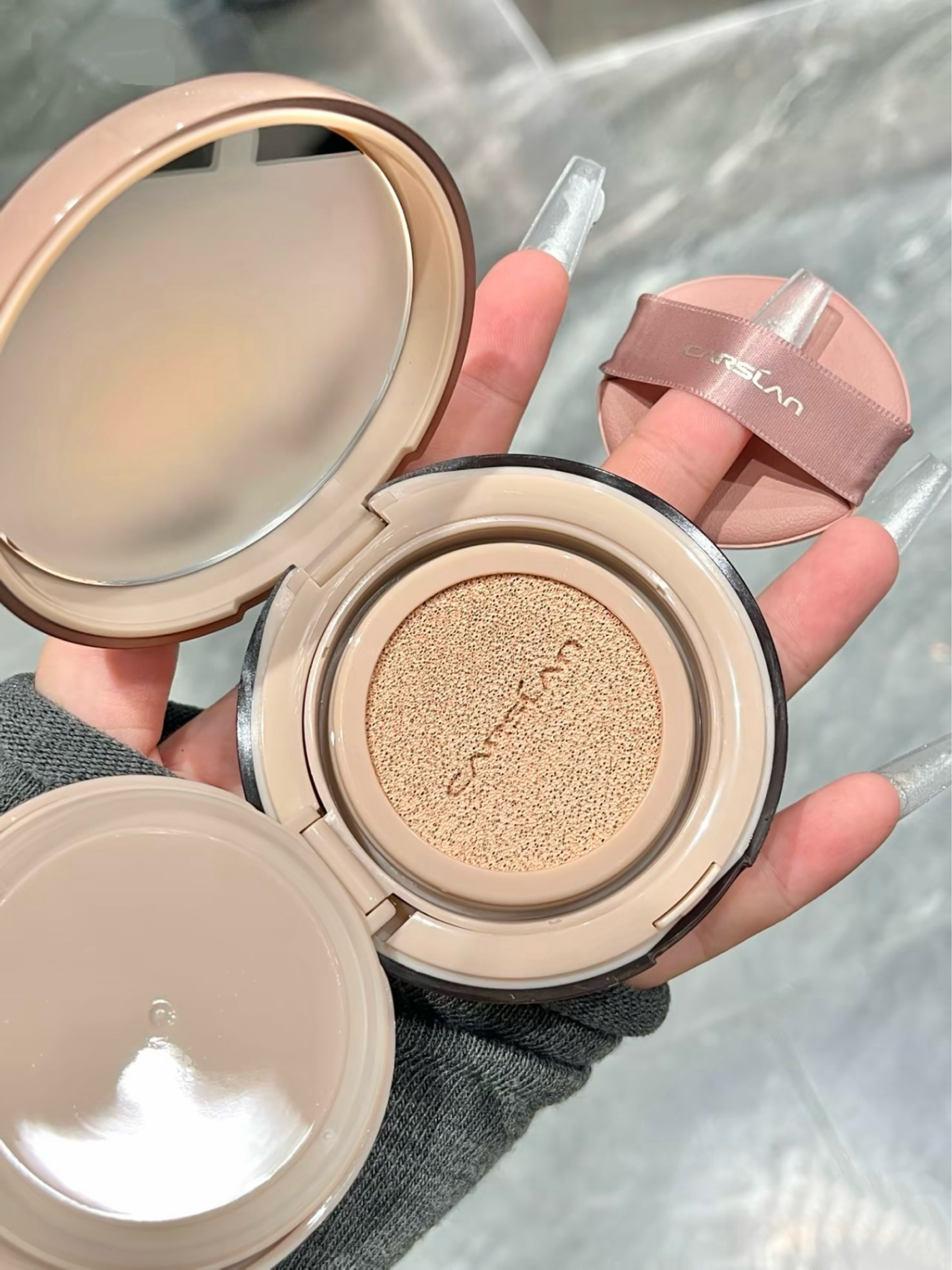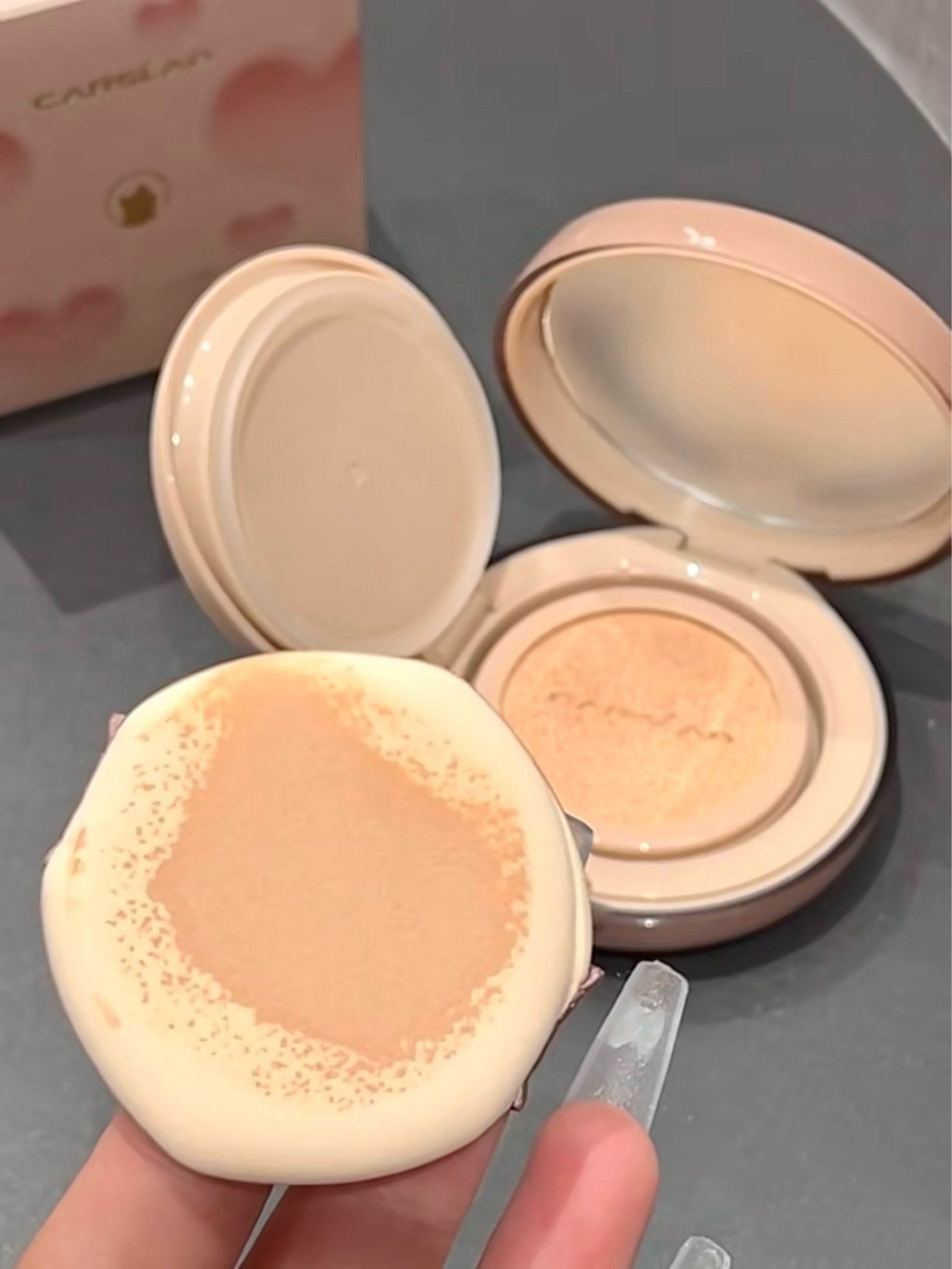 是介卡姿兰小夜猫气垫呀 早上能多睡五分钟啦 我觉得瑕疵能遮七七八八 而且持妆还可以 暑假出游妆容能坚持一天 嘿嘿出门放包包里也不占地