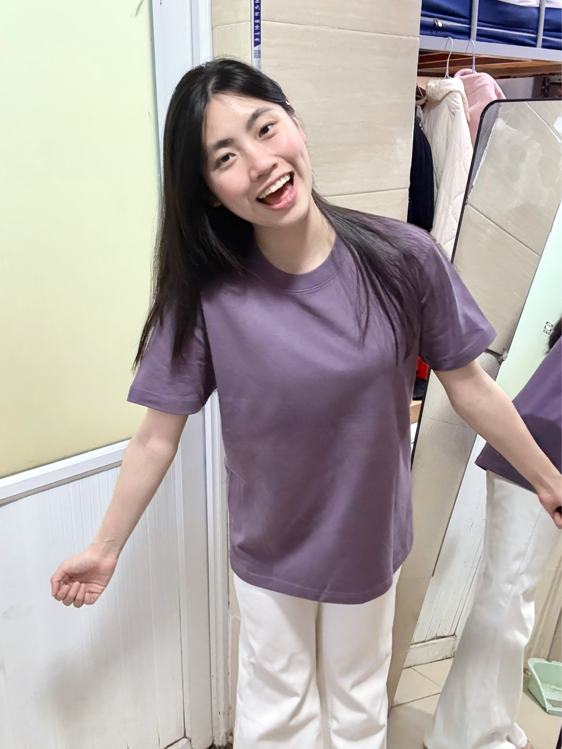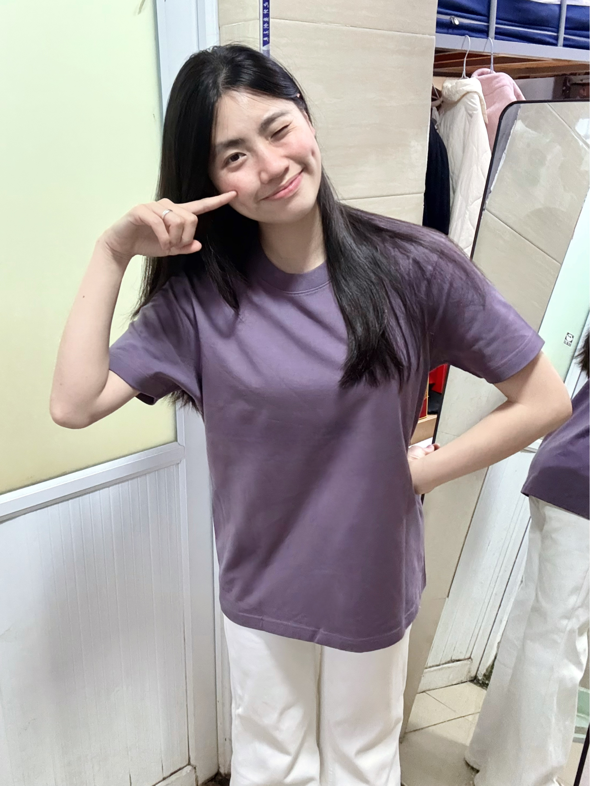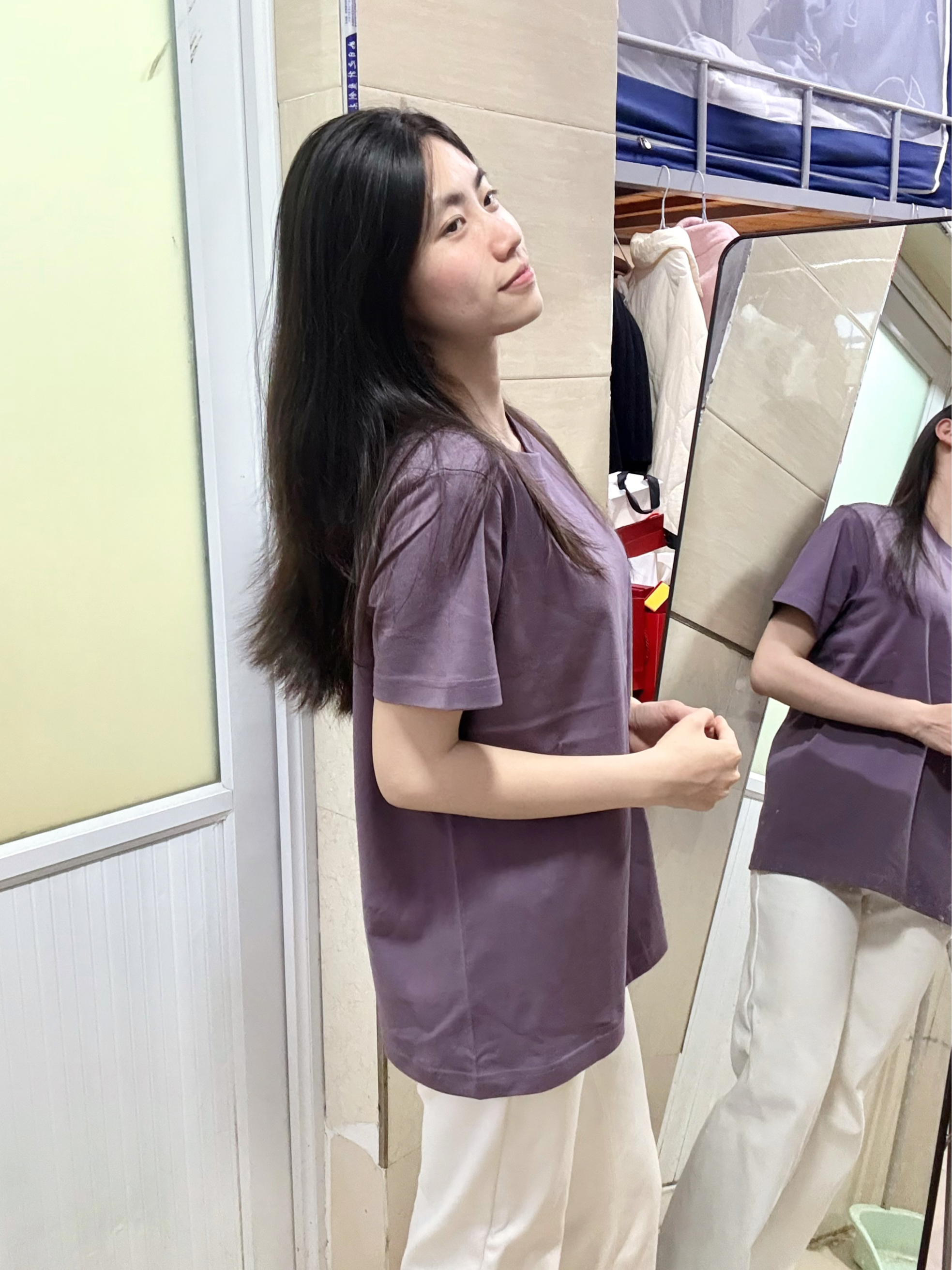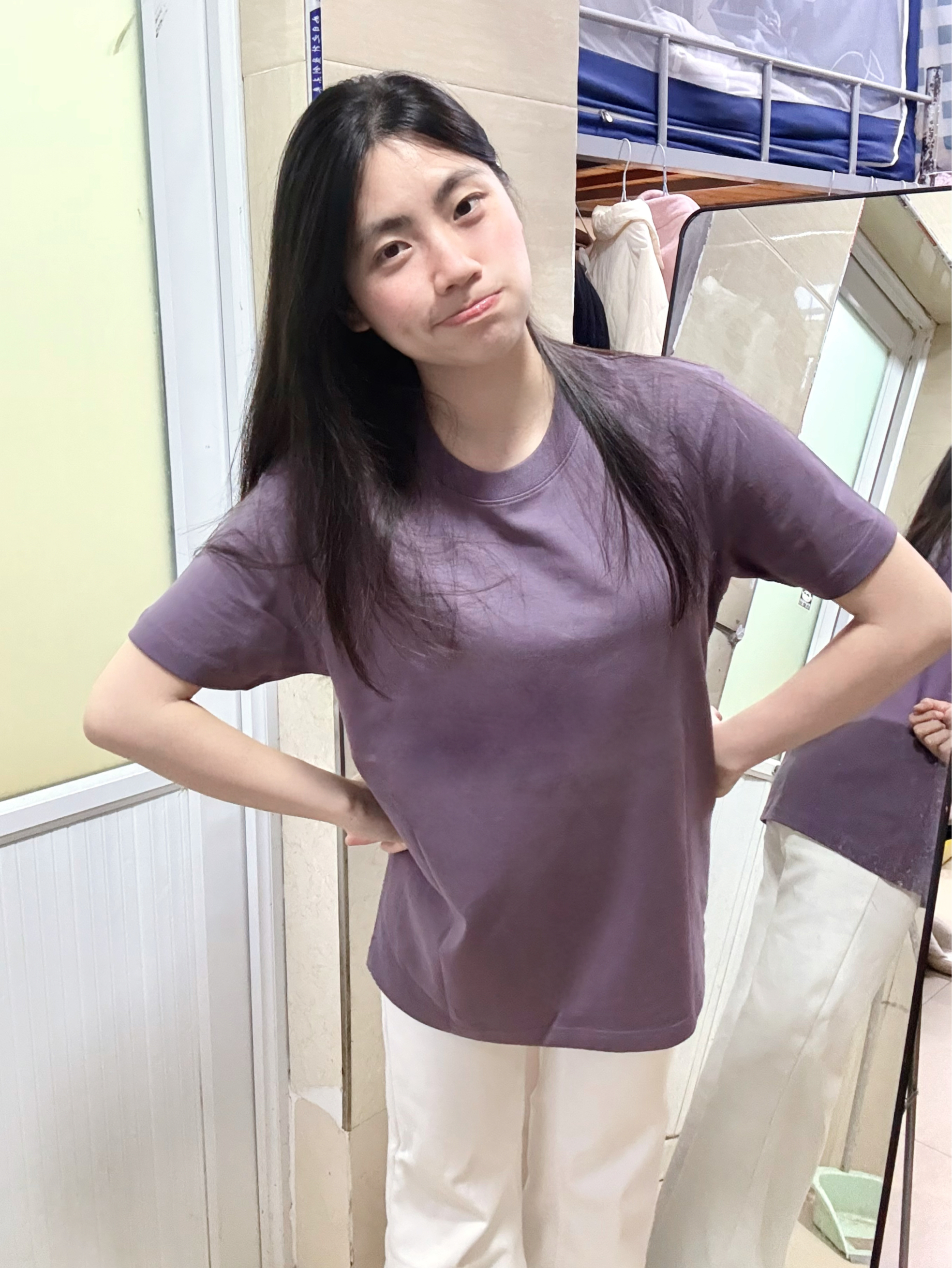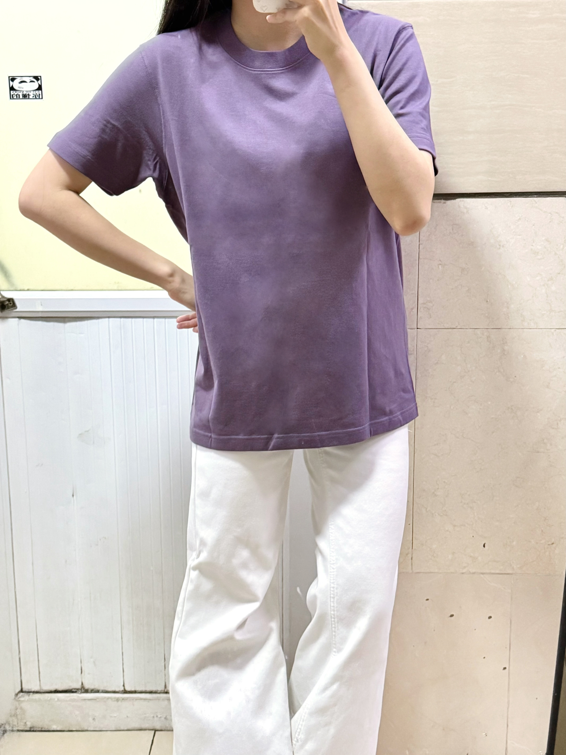166 102穿的是M码 是270克重磅纯棉面料 是正肩版型的 穿上很显瘦 喜欢简约风格的宝宝可以参考一下哦