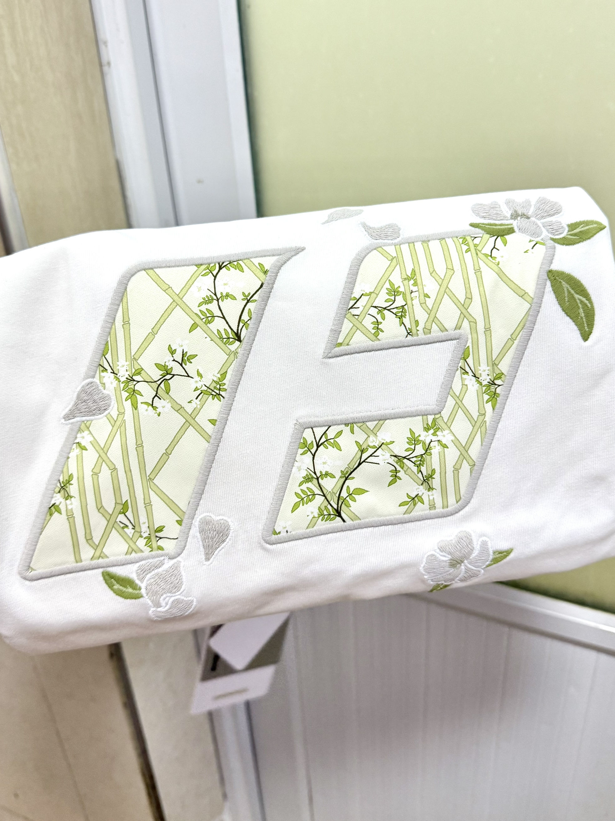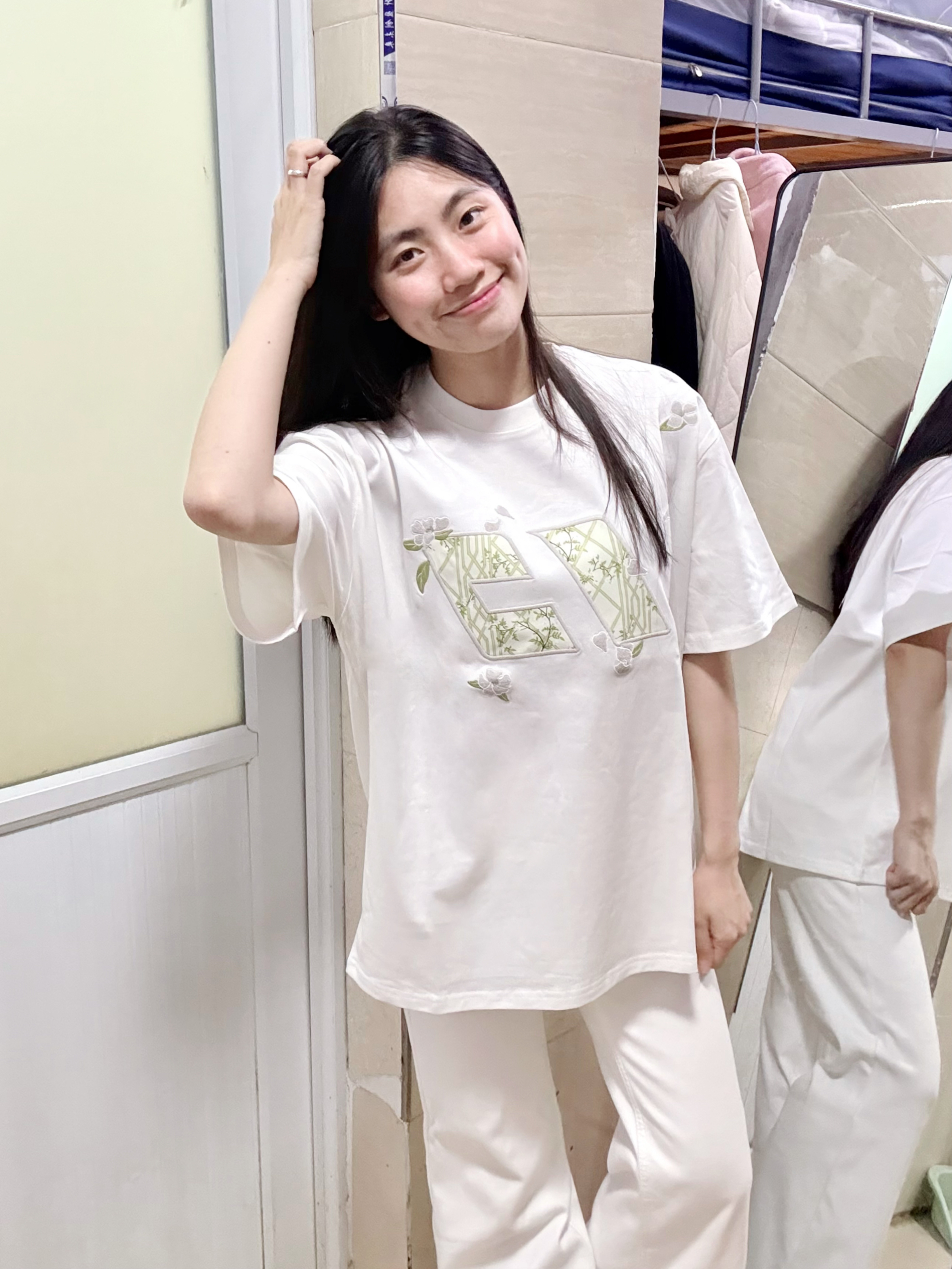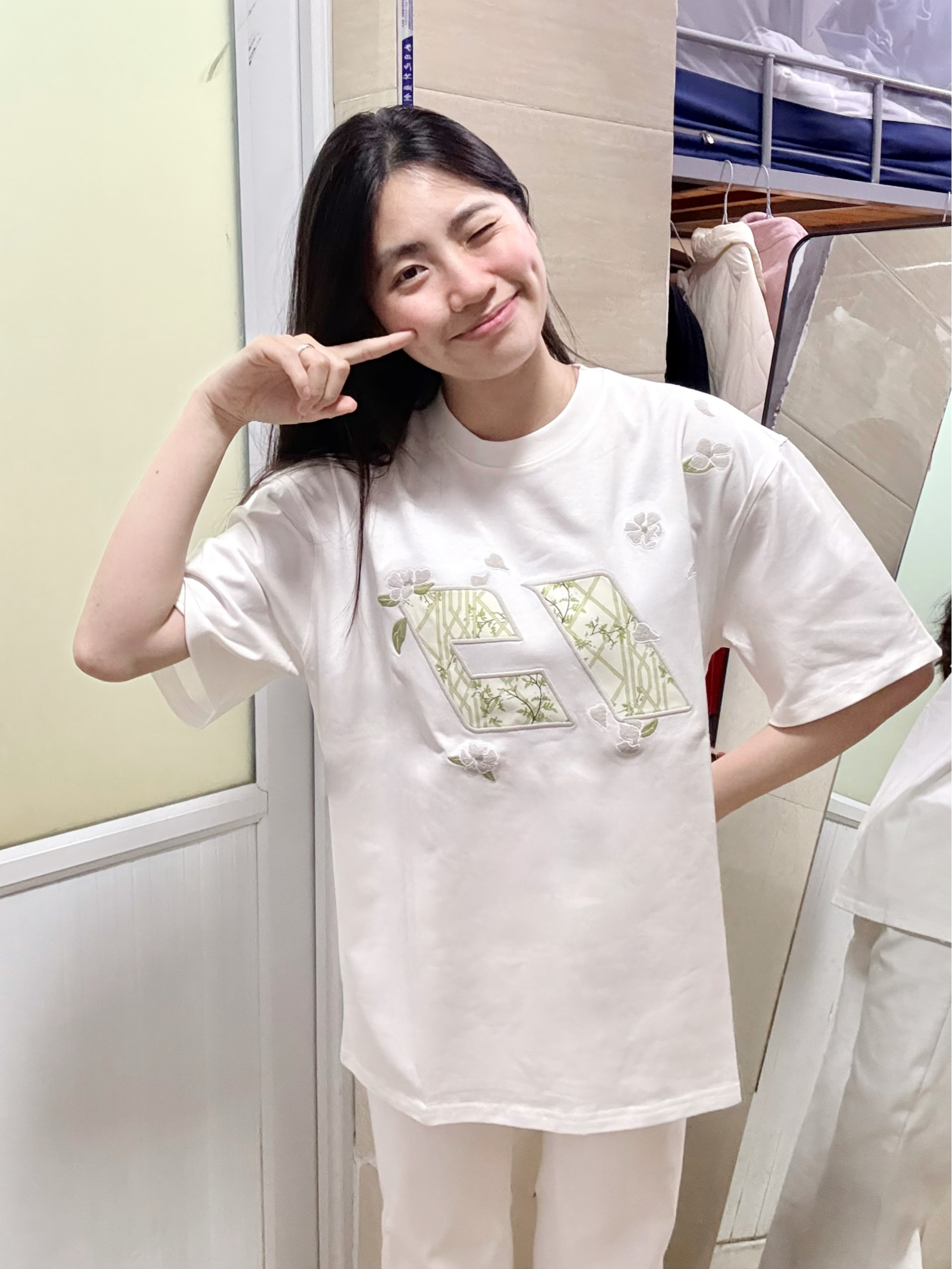 166 102穿的是M码 面料是纯棉的 胸前做的竹子和花的刺绣很有春天的氛围感呢 穿上还自带凉感呢 版型是正肩的 喜欢的宝可以参考一下哦