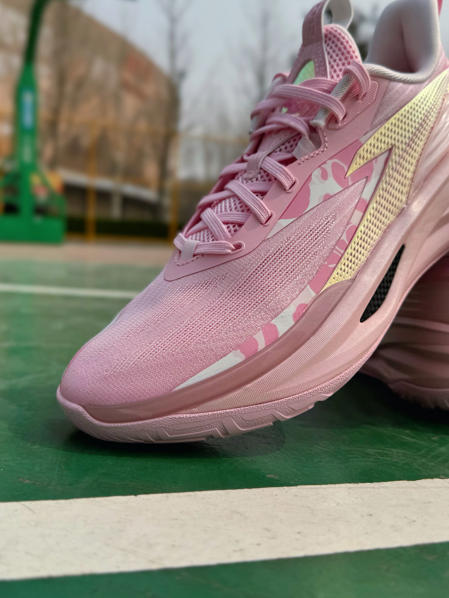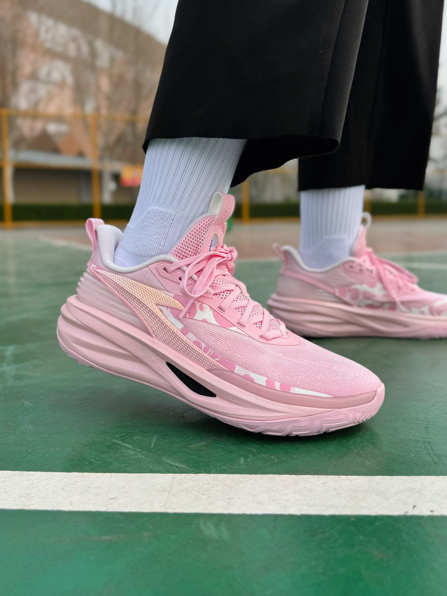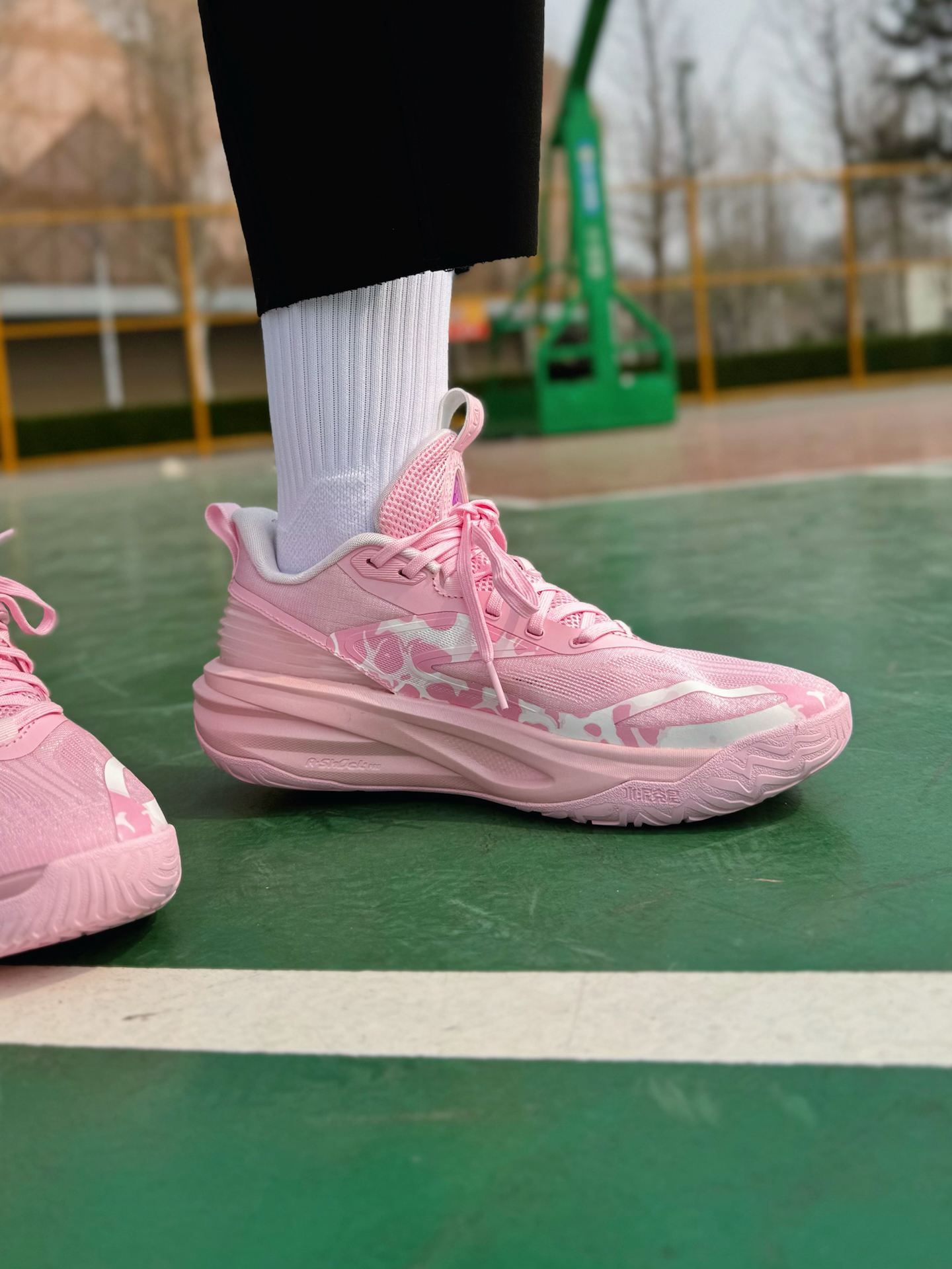 之前就有穿过踏子的追光篮球鞋啊,性能真的很不错,这不最近也是又冲了双新配色啊!这双“粉霞”小清新感拿捏的太稳了!侧面还加入了粉白色的小细节点缀 Logo以及侧边TPU上炫彩效果看起来真的很吸睛!就是说应该没有哪个球场猛男看了会不心动吧,妥妥的球场显眼包啊! 配置方面依旧是全掌氮80中底搭配A-SHOCK PRO框架!脚感踩起来偏软弹且回弹利落,起跳落地时缓震感很足,不会震脑震膝盖!内嵌一块X型柔...