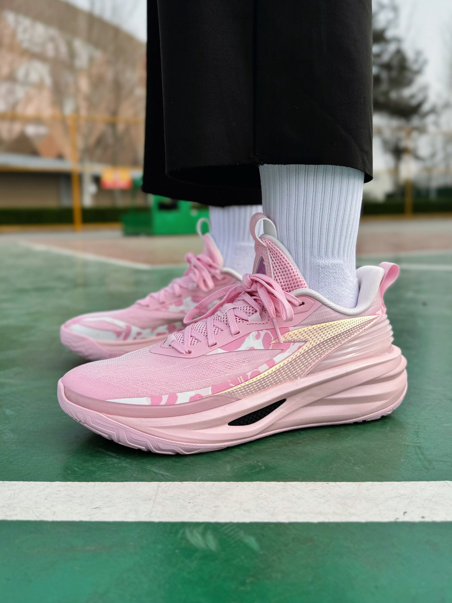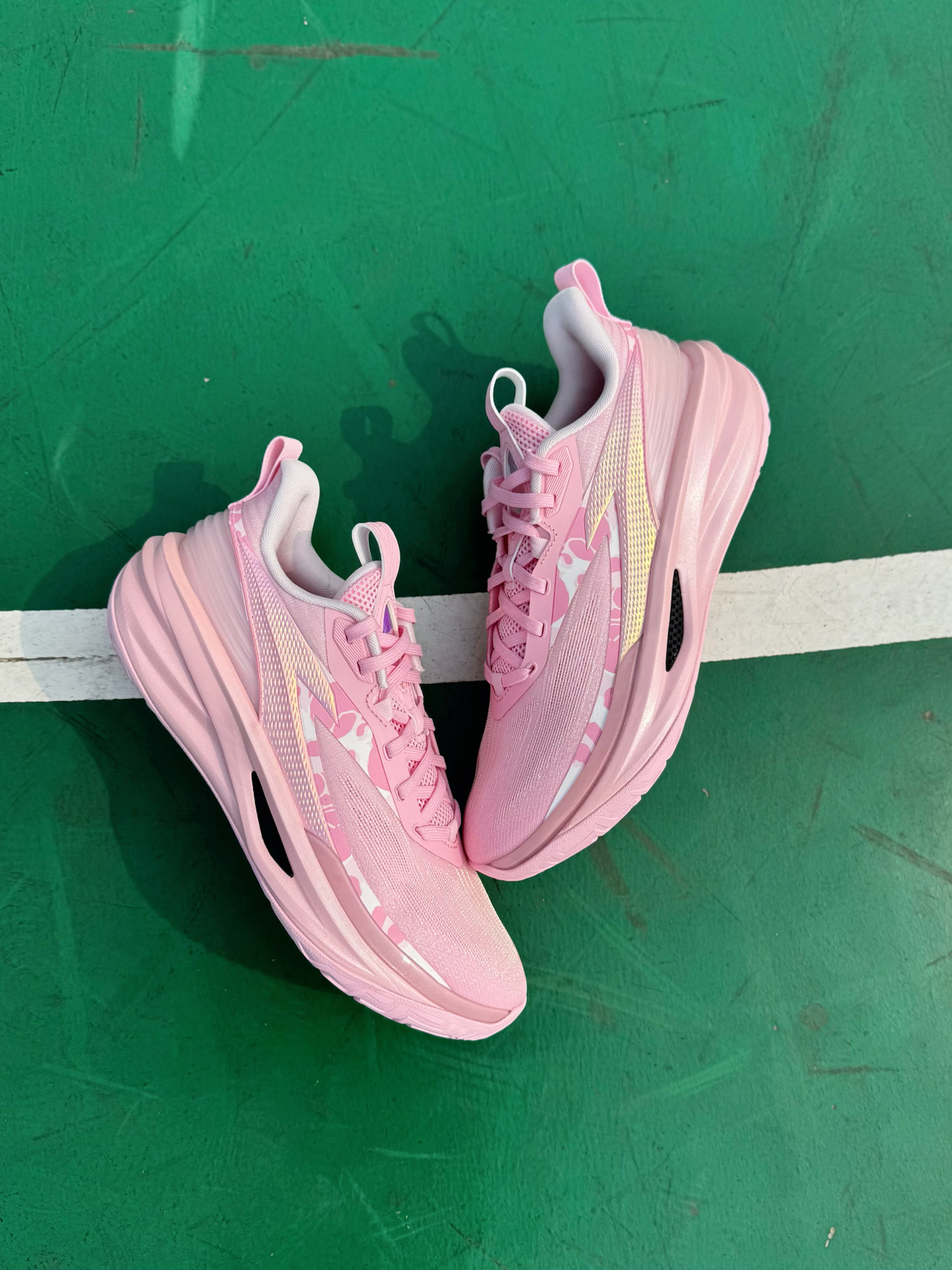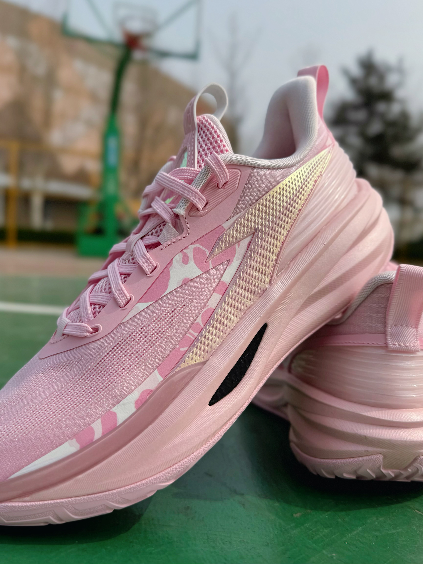 之前就有穿过踏子的追光篮球鞋啊,性能真的很不错,这不最近也是又冲了双新配色啊!这双“粉霞”小清新感拿捏的太稳了!侧面还加入了粉白色的小细节点缀 Logo以及侧边TPU上炫彩效果看起来真的很吸睛!就是说应该没有哪个球场猛男看了会不心动吧,妥妥的球场显眼包啊! 配置方面依旧是全掌氮80中底搭配A-SHOCK PRO框架!脚感踩起来偏软弹且回弹利落,起跳落地时缓震感很足,不会震脑震膝盖!内嵌一块X型柔...