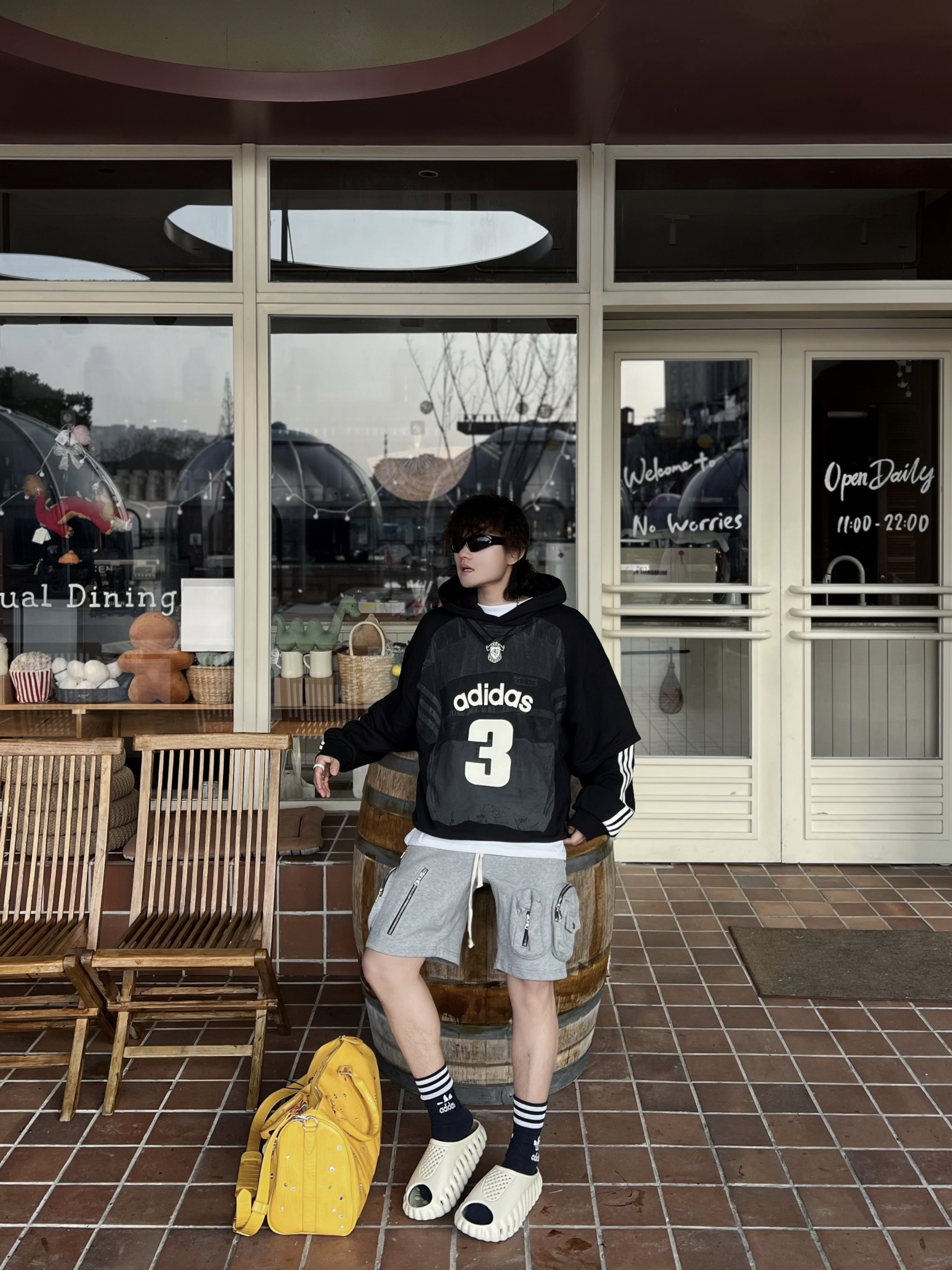 Hi、这里是有点懒的薯条🍟~ ☑️早春潮人出街🥊 还得是卫衣+短裤这套经典公式🫨 叠穿才是美式街头感的灵魂,松弛感直接焊在身上🤙 ▪️OOTD🤞 ▫️上衣:adidas假两件连帽卫衣 做旧网纱拼接+经典三条杠,oversize版型藏肉又随性,叠穿白T打造层次感,美式复古那味儿直接拉满 ▫️下装:灰色多口袋工装短裤 立体大口袋+拉链设计,机能感拉满,宽松剪裁不卡腿,和卫衣完美适配...