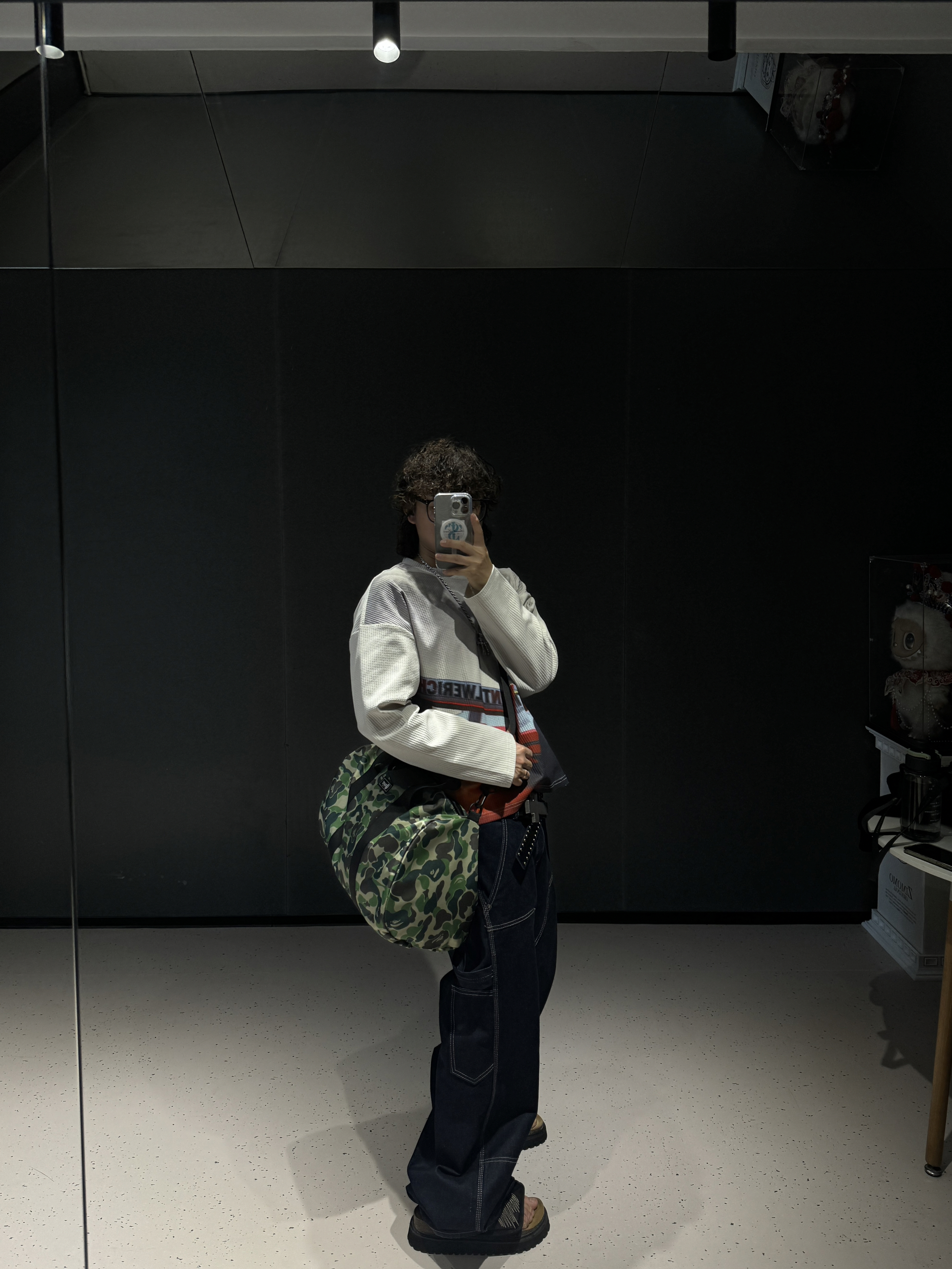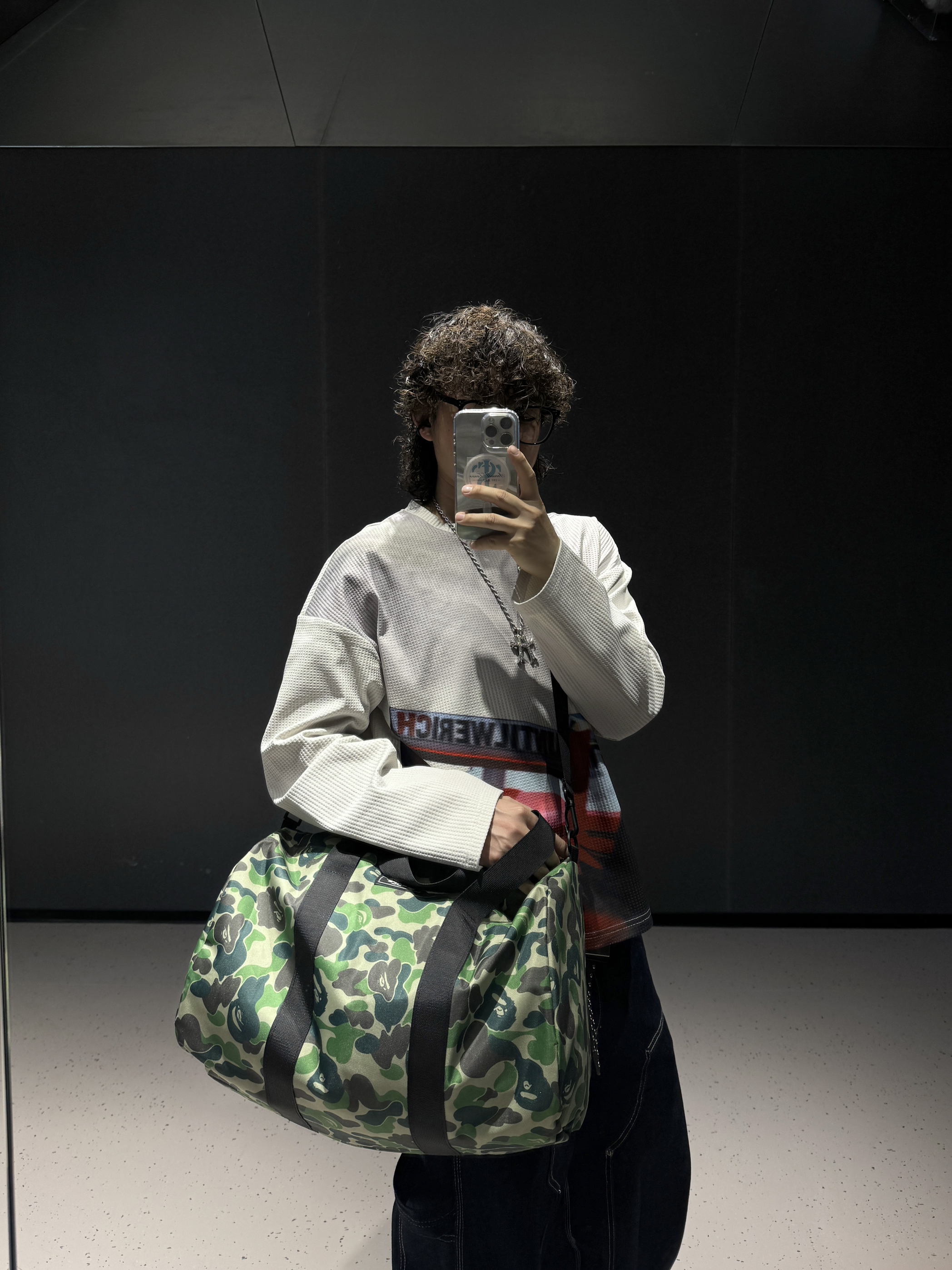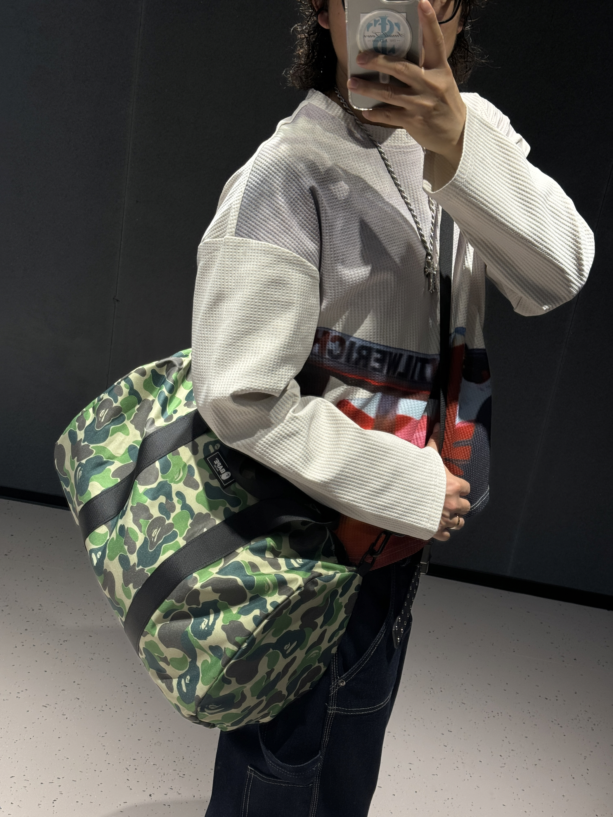 本篇笔记关联了Bape/猿人头 潮流运动桶包单肩包斜挎包旅行包手提包 绿色、美式微喇修身原牛丹宁合身牛仔裤 基础色等商品,为用户提供真实的使用体验和购买参考。