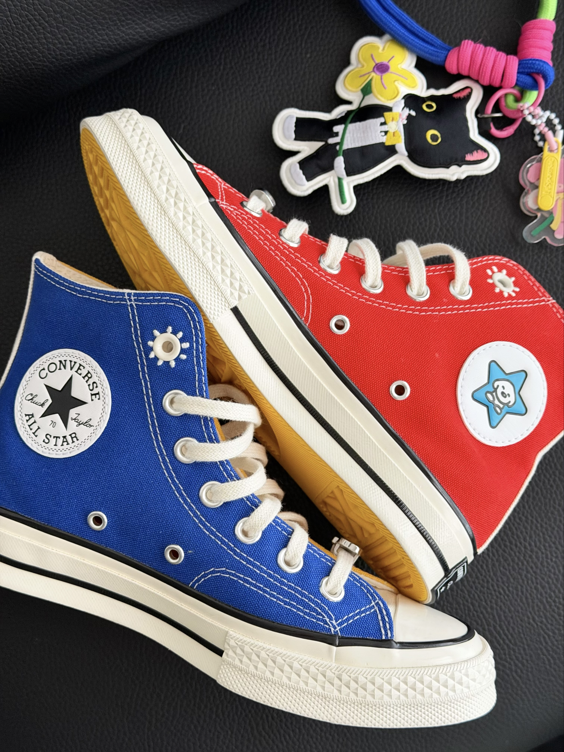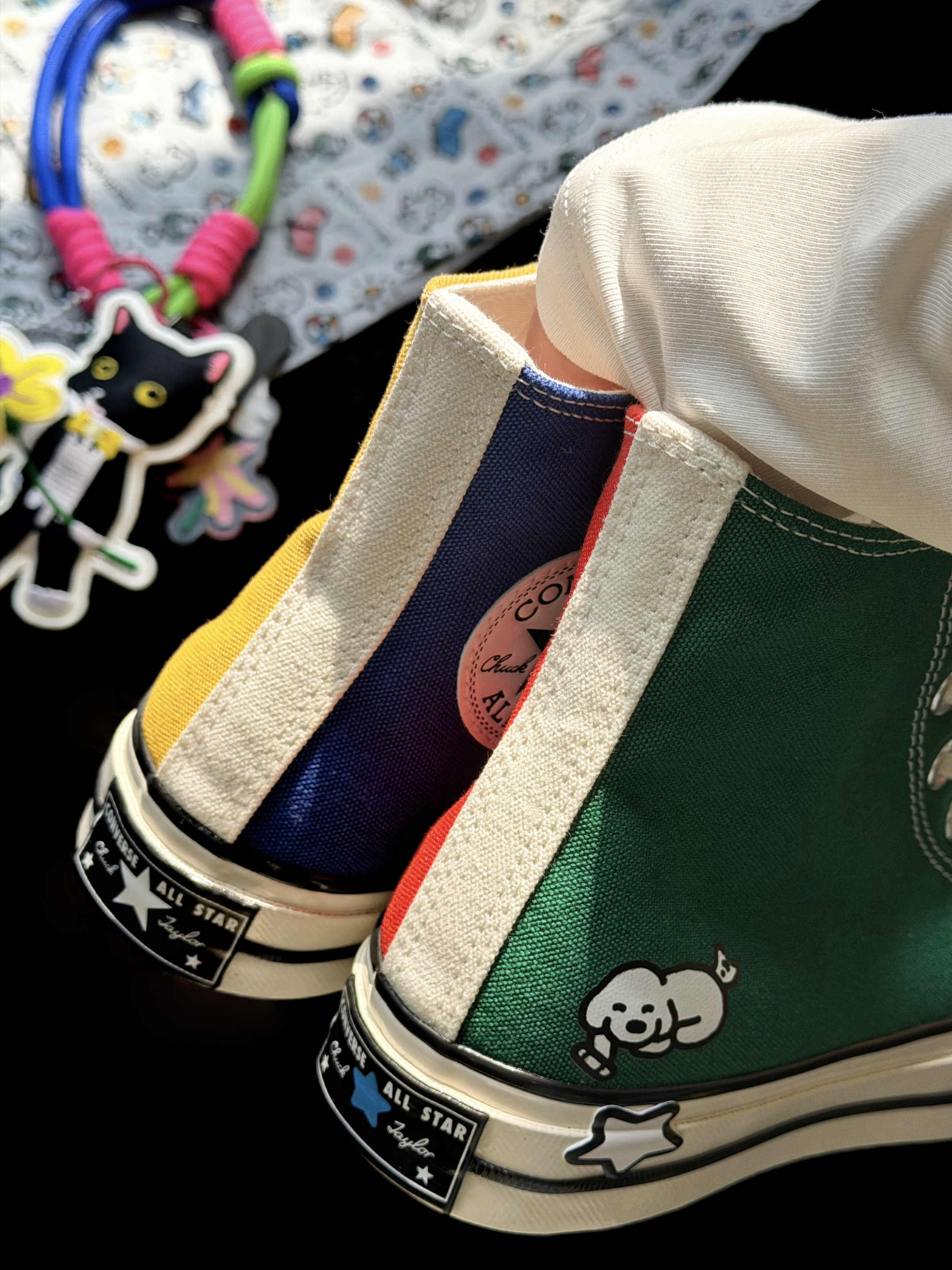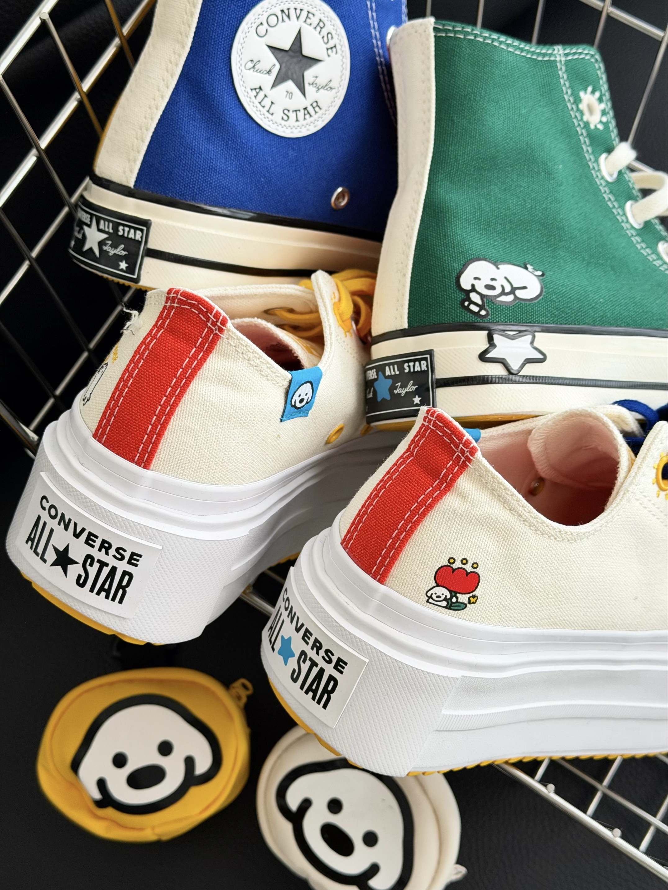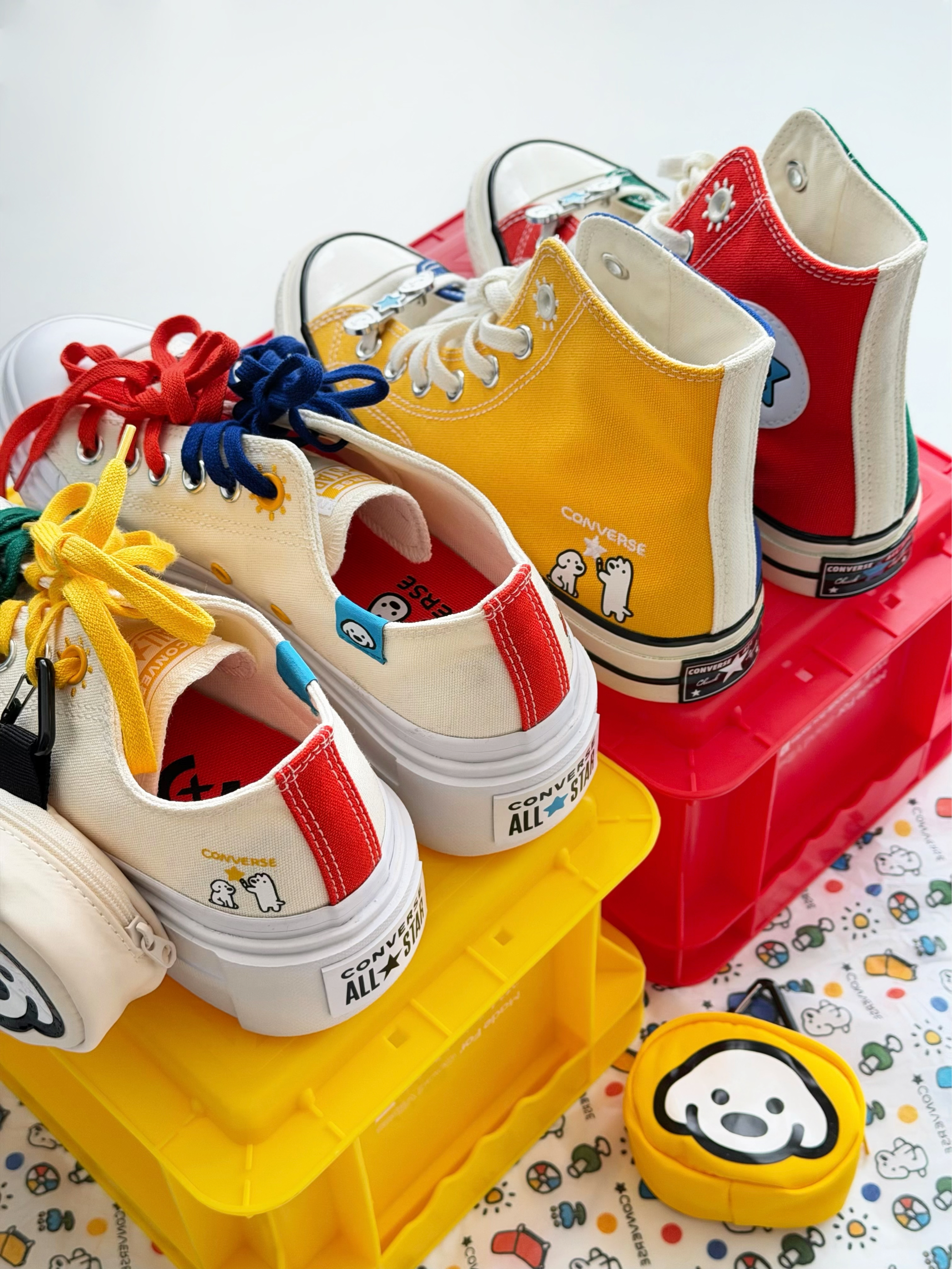 - 匡威这次和MATSUI松井犬的艺术家合作系列 直接把“治愈系”画风搬上鞋面 满满的多巴胺,细节又可爱 简直就是行走的调色盘🎨 这次一口气入了两双👇 ✔ 1970S高帮鞋 鸳鸯四色拼色鞋面、亮黄鞋底,夏日多巴胺来袭 ✔ 双层厚底鞋 5厘米轻松增高,DIY双色鞋带,鬼马又俏皮 两双鞋侧都有不同的治愈小狗元素 还附赠有联名款小包 搭配当包挂或者做零钱包都超合适! 细节控直接沦陷😭