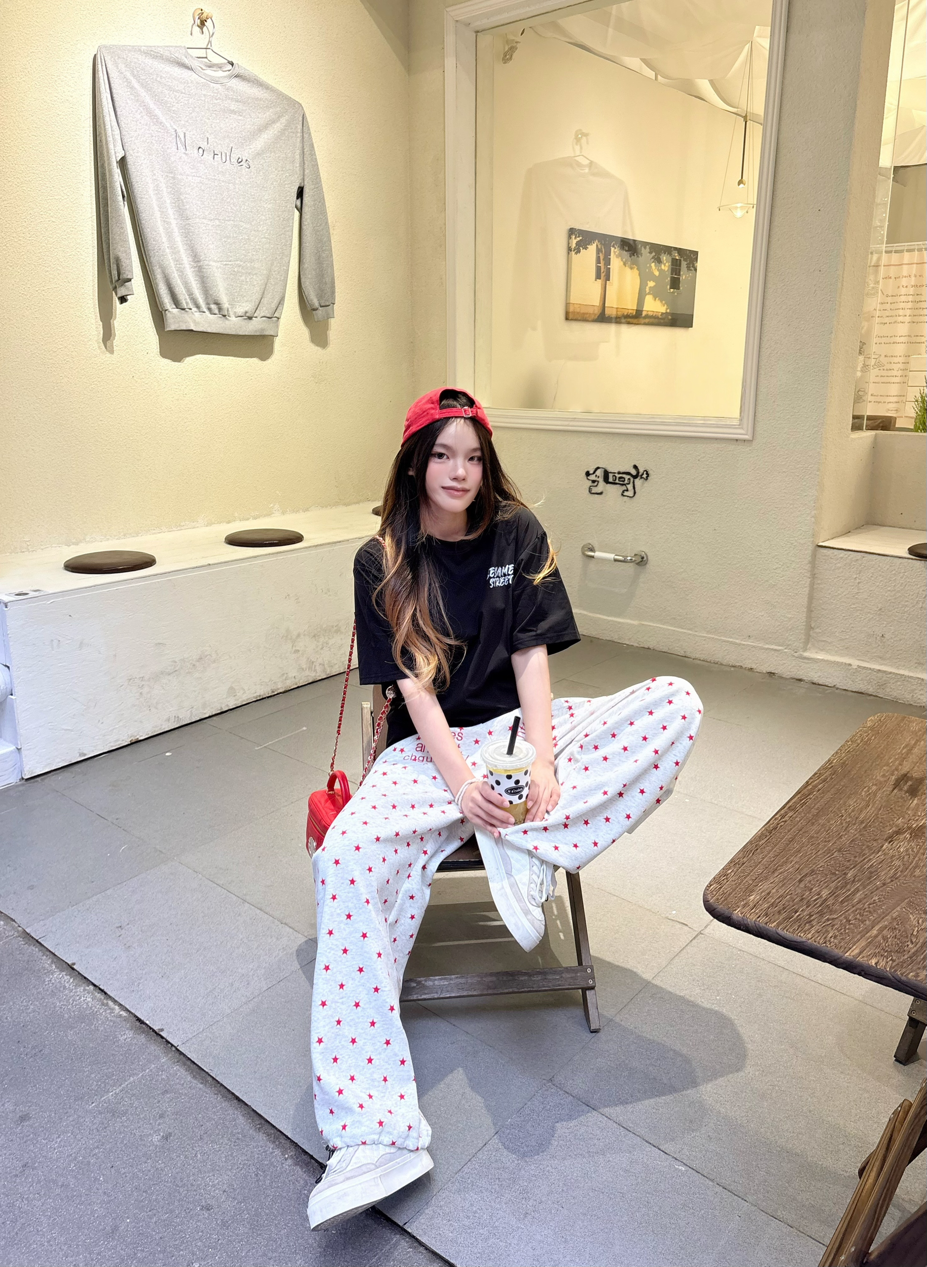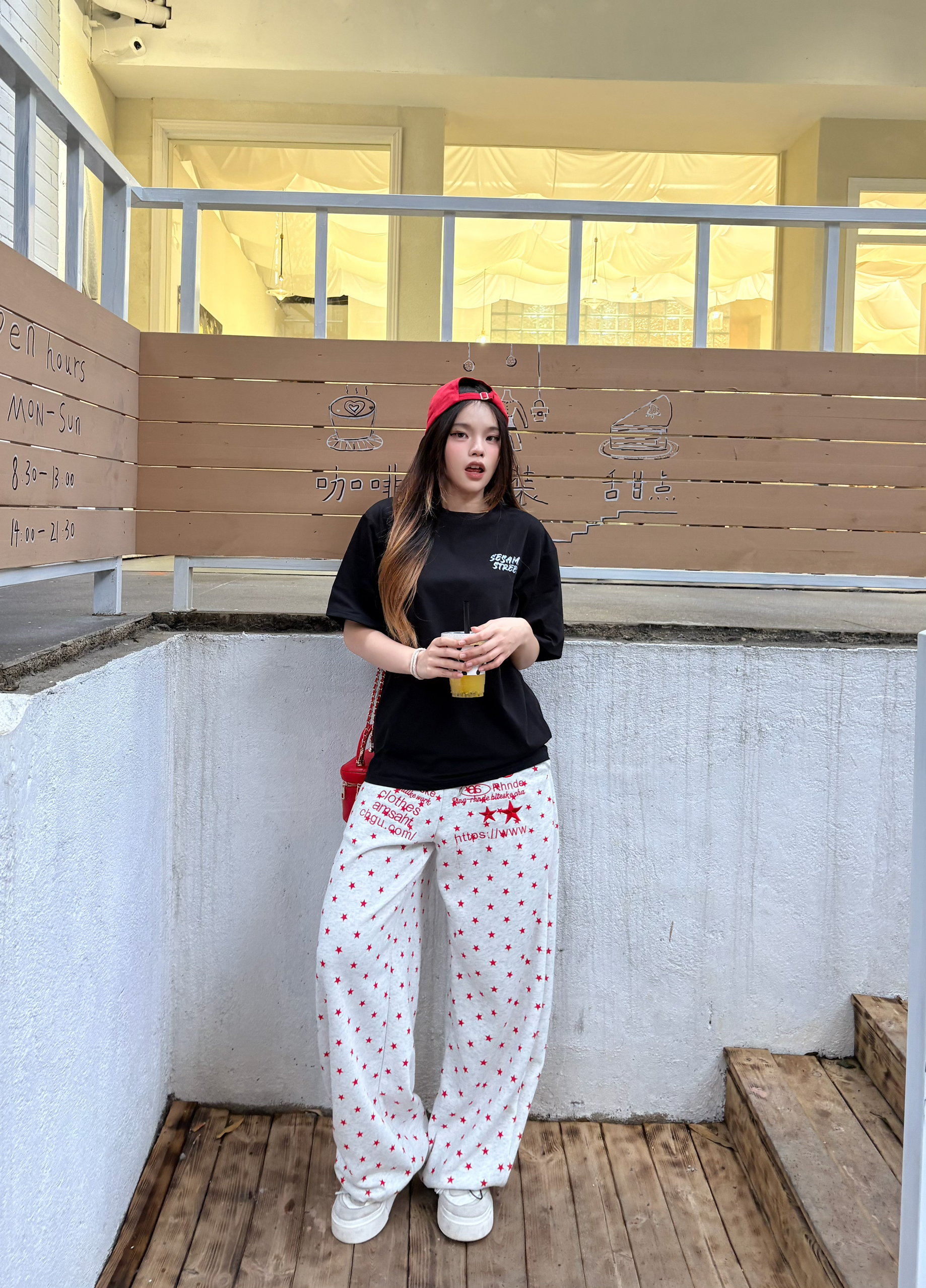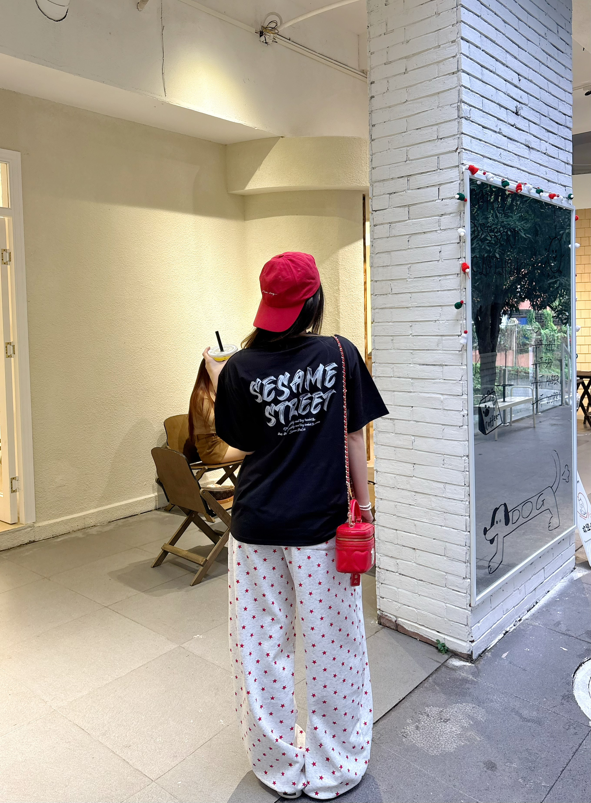我的今日ootd 穿搭思路💡 oversize字母黑T + 红元素点缀 + 松弛感下装 = 不费力的美式街头风🧢 这套穿搭的核心逻辑,就是用「基础款+撞色+细节」,把简单的单品穿出高级感,同时兼顾舒适度和出片率,完全是懒人友好型穿搭。💯 上衣设计巧思:前后双印花设计太加分了 正面小字母标低调不突兀,日常穿不夸张; 背面大涂鸦印花转身就有亮点,拍照超有层次感,避免了纯黑T的单调。☑️ 我165/9...