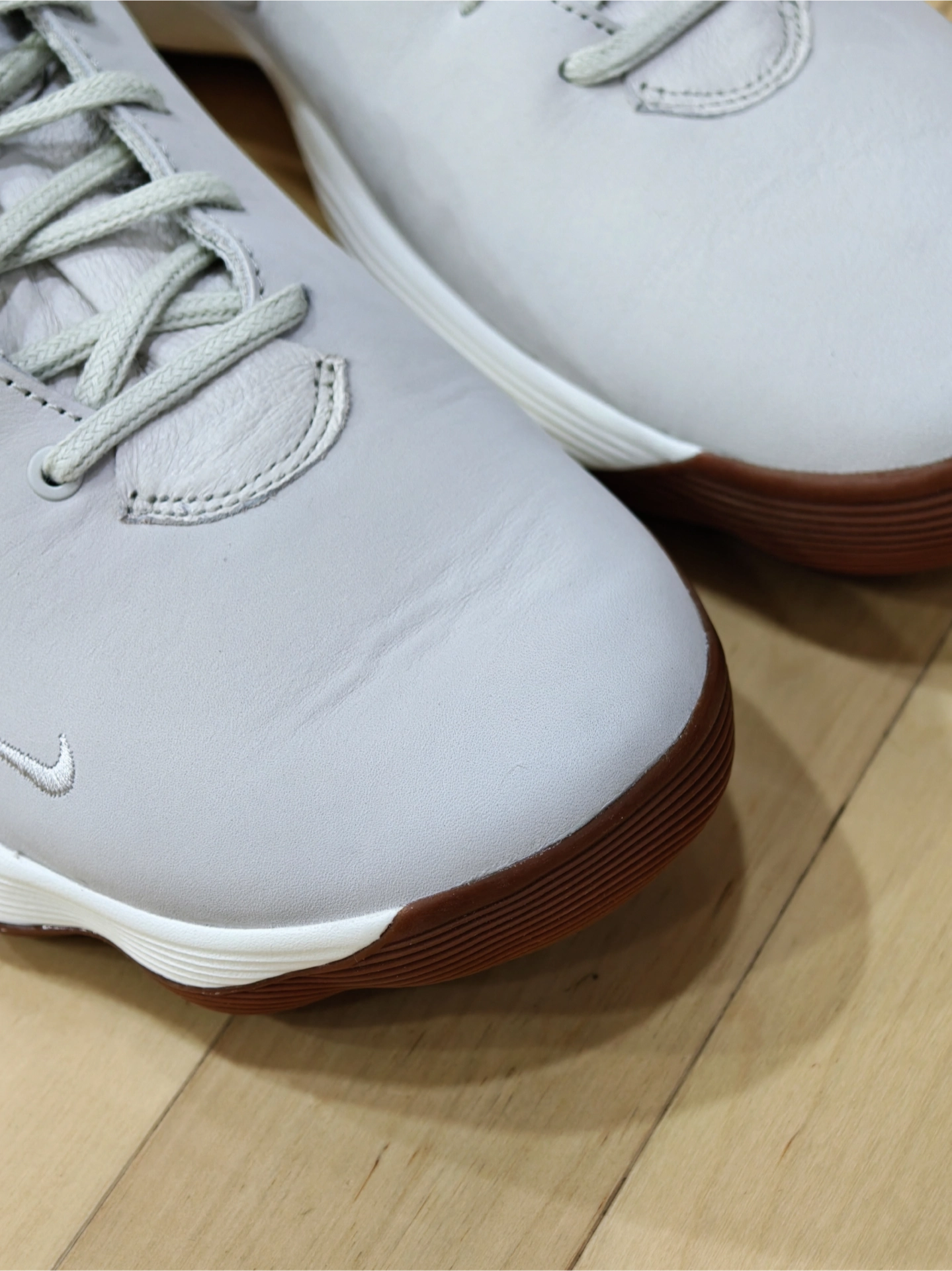 众所周知,HD17只有fk版本才是真神,复刻的低帮穿着体验很一般。那么复刻配色中元年没有的皮质版本,到底是补强还是拉完了? 普通版本hd17最大的问题是鞋面支撑差,皮质版本解决了这个问题,但带来了新的问题,就是包裹更差,且鞋面弯折时贴合感很一般。所以从实战角度来说,这个版本会更差,只适合压马路穿!