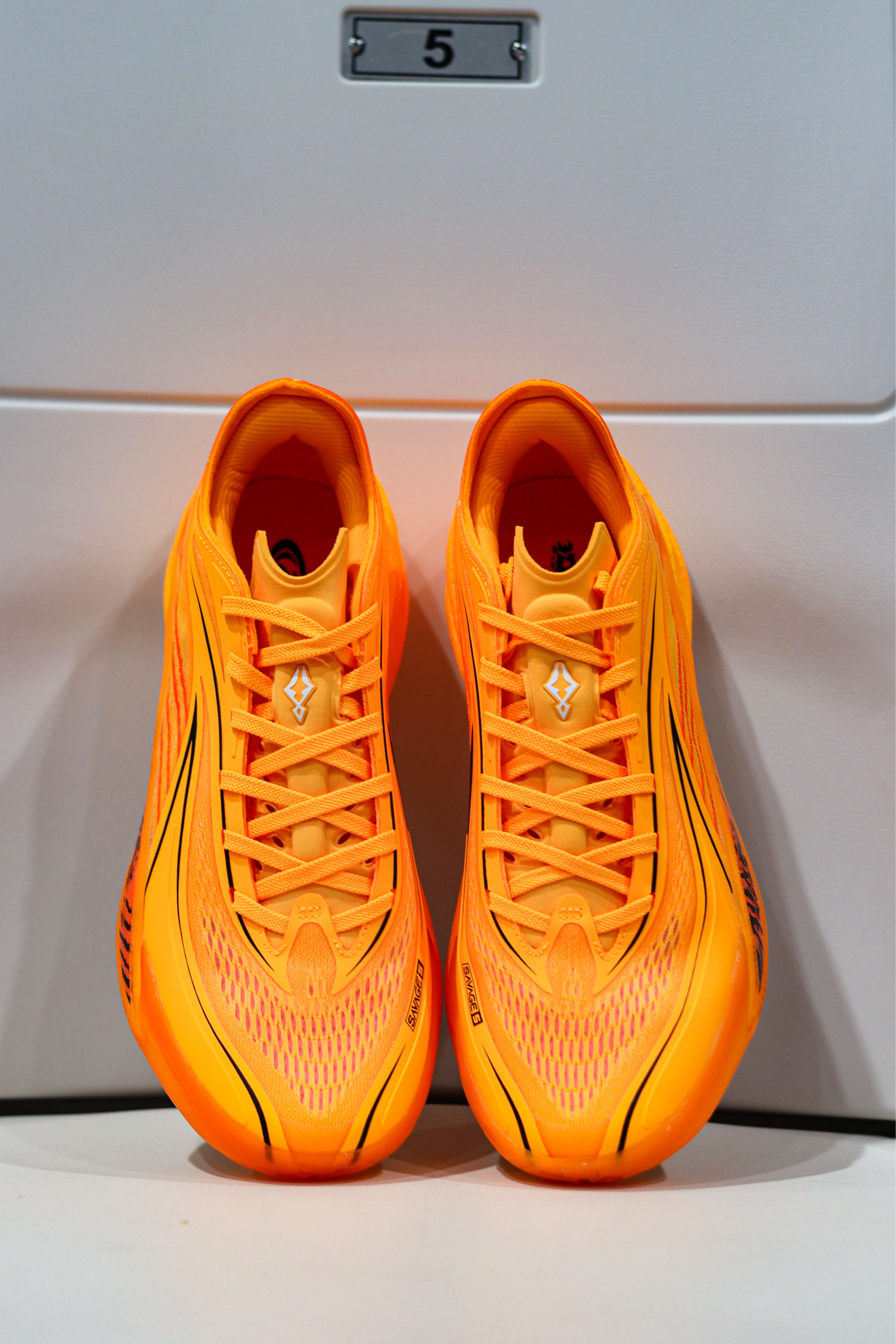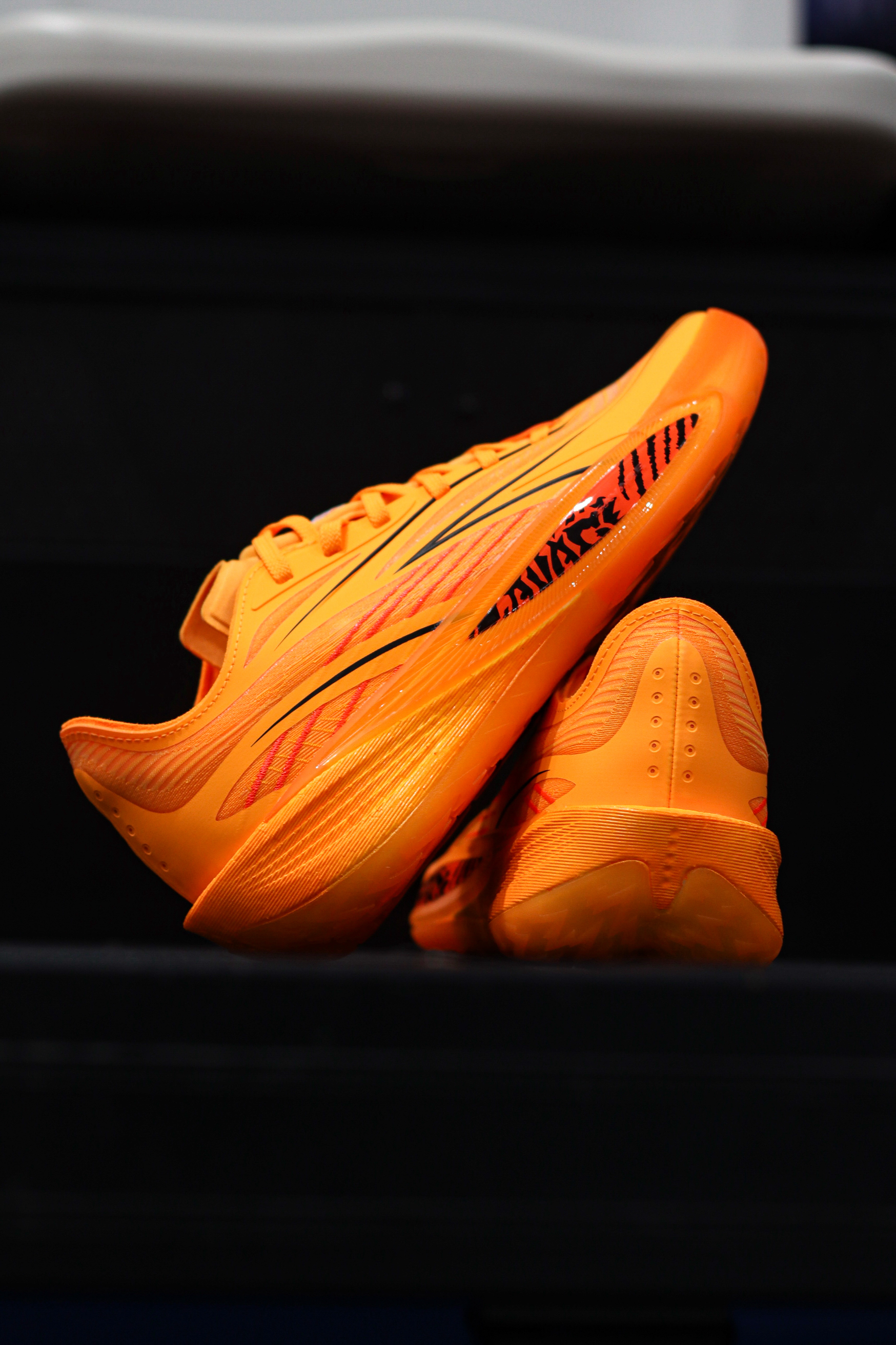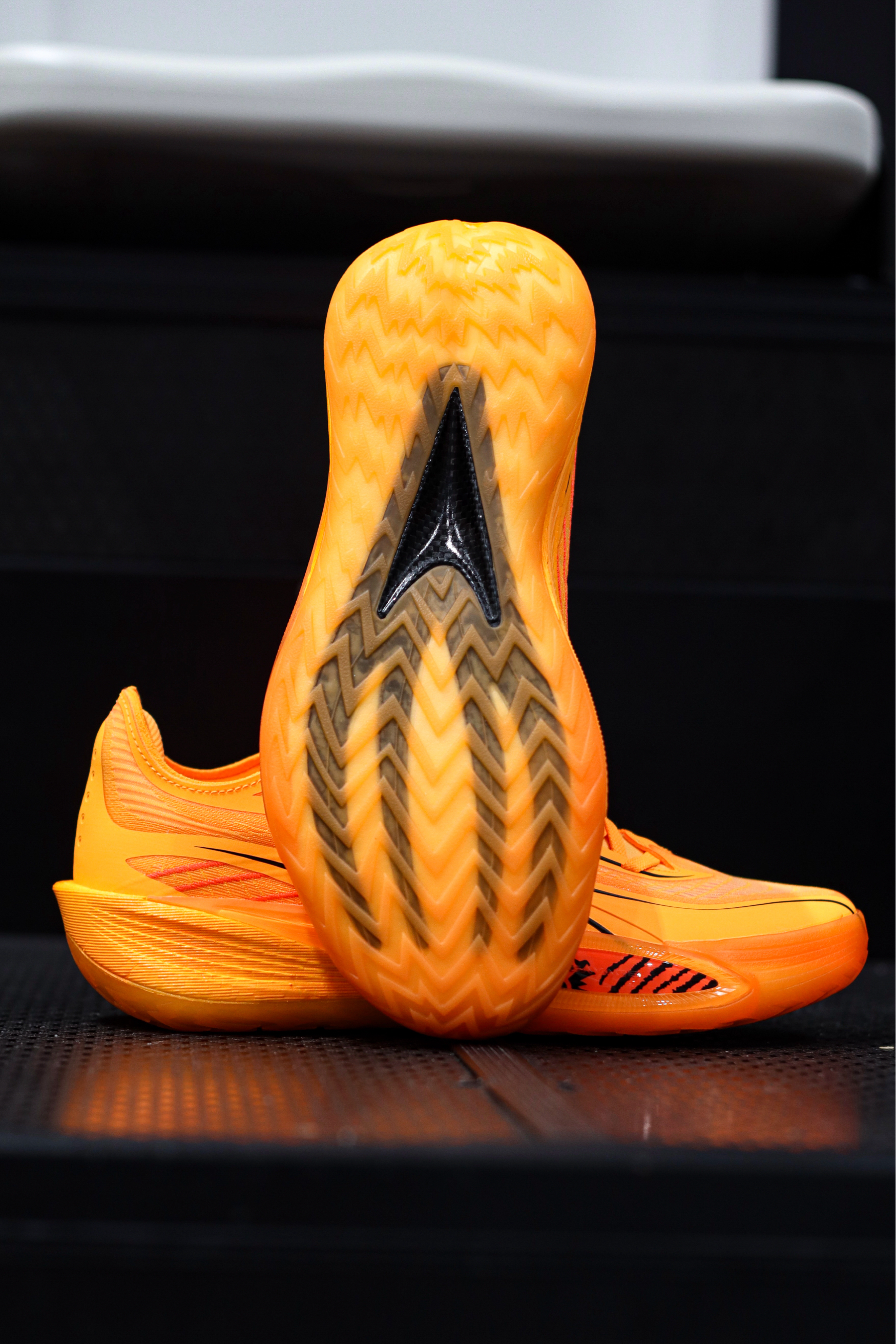 作为安踏目前最轻的球鞋,轻狂5的造型一眼就抓住了我的眼球! 整个鞋身的线条干净利落,很有速度感~“失控”这个配色整体是很亮眼的橙色,侧面的TPU还有类似虎纹的点缀,上脚很有辨识度! 42码单只才290克,上脚完全没负担!氮80中底搭配金刚狼爪样式的前叉碳板,脚感轻弹有韧劲,助推明显,而且变向突破更灵活~我觉得很适合喜欢突破的灵动型后卫! LTR橡胶大底轻质又耐磨,防滑抓地很不错!可以说轻狂5有...