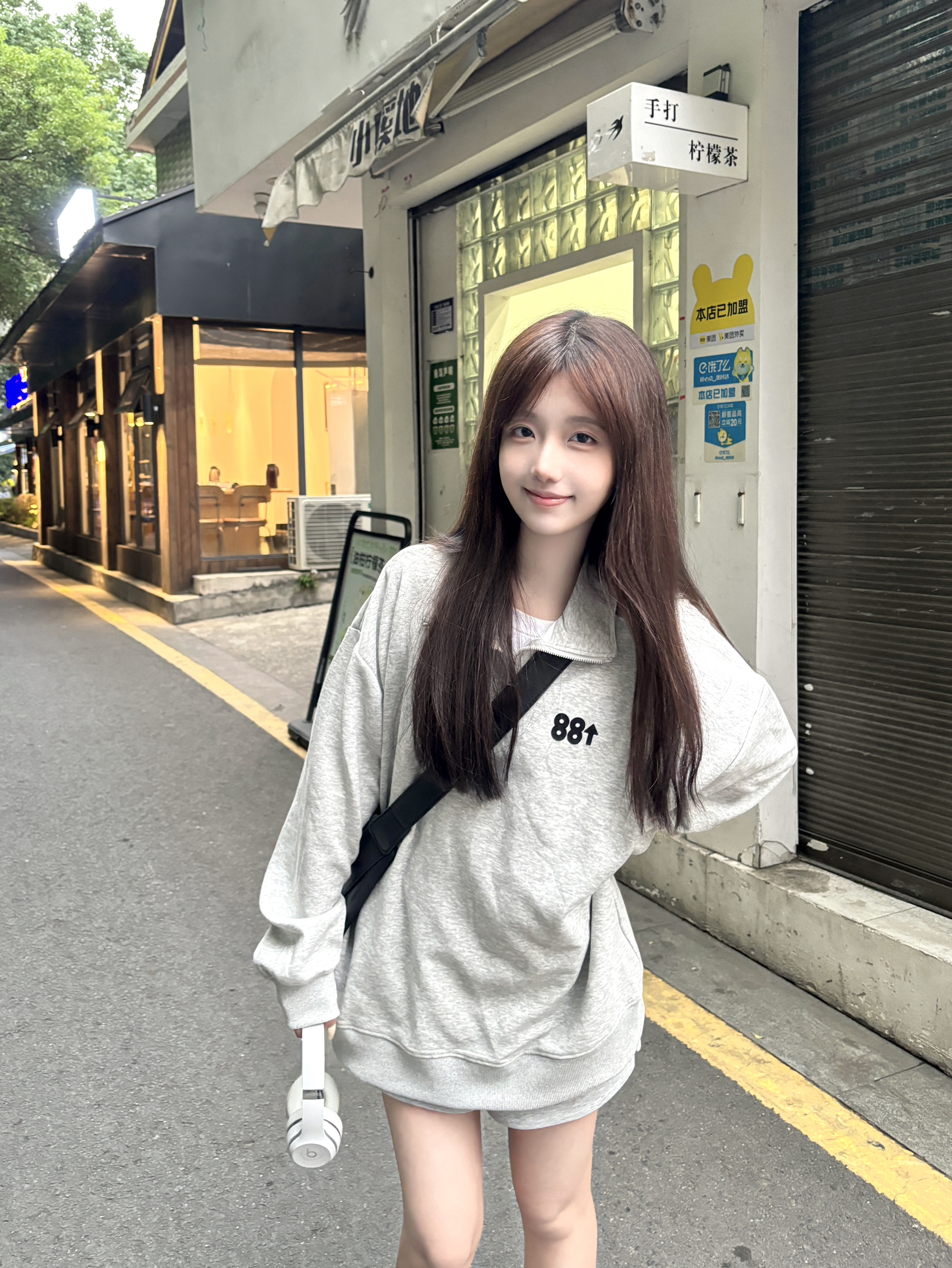 春夏好适合穿polo衫! 这件长袖真得很舒服 面料软软糯糯滴 浅灰色很百搭衬人 显得人很温柔 领口拉链可调节大小 真的很方便啦 宽松的版型很休闲 运动上班上学出门玩穿都很合适!
