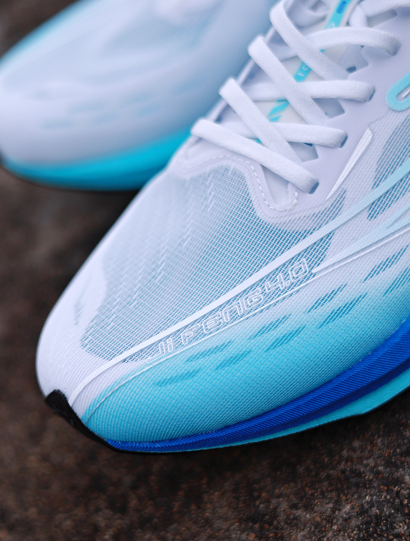 白蓝渐变颜值真的戳我💙,干净又清爽,闪电侧标很有设计感,配校服、运动裤都很搭,日常出街也不违和。 鞋面很透气,鞋子很轻,上脚没累赘感,我脚偏宽,正常码不挤脚,脚趾活动空间充足。 炁科技中底落地缓冲,1000米后程蹬地有劲,不软塌。玻纤抗扭+鲨鱼齿大底,折返跑、起跑都稳,不打滑🌪️。 海南38℃穿也不闷脚,长距离脚趾会有点顶,配长袜就好。 体测、训练、通勤一双搞定,学生党放心入✅ ...