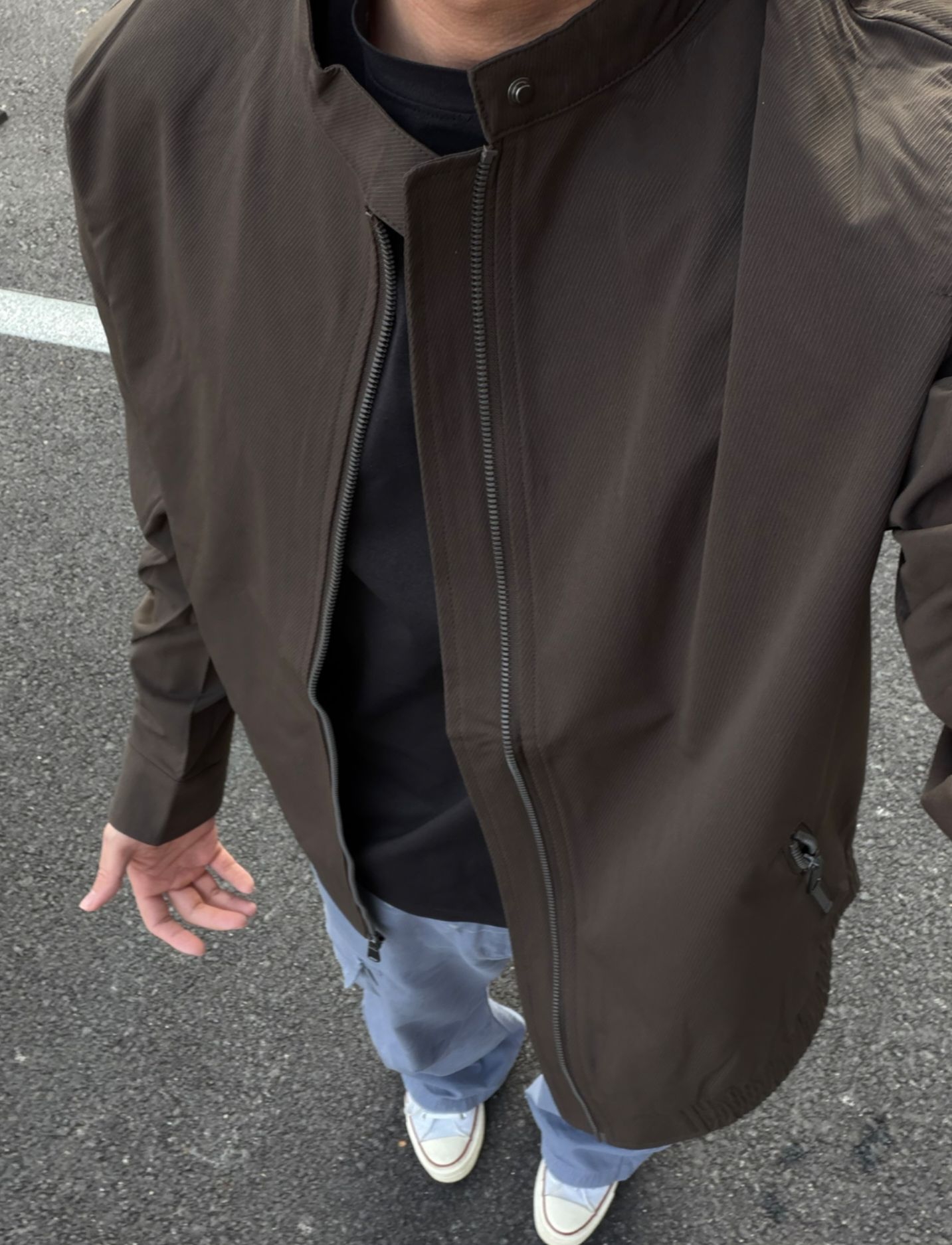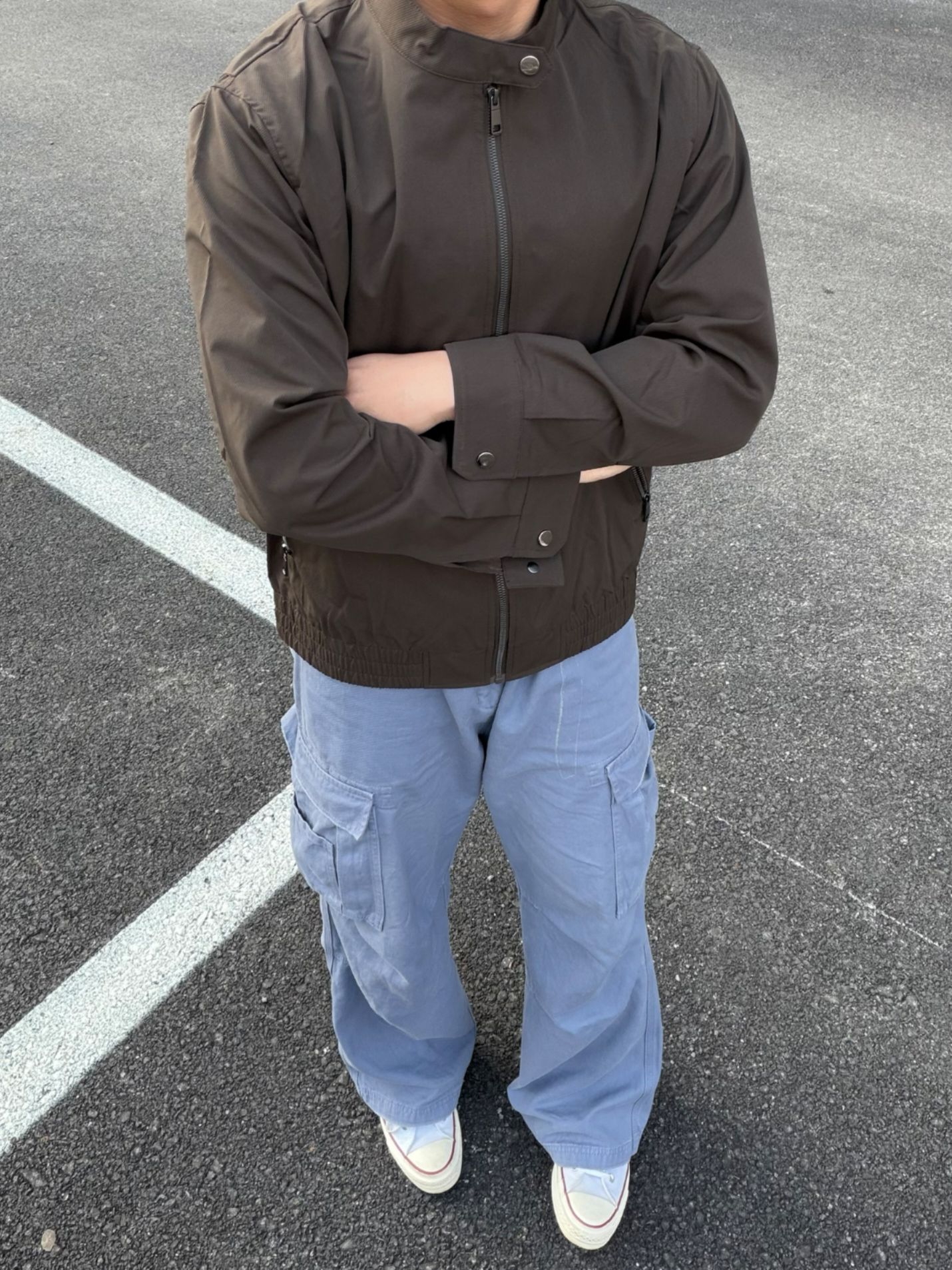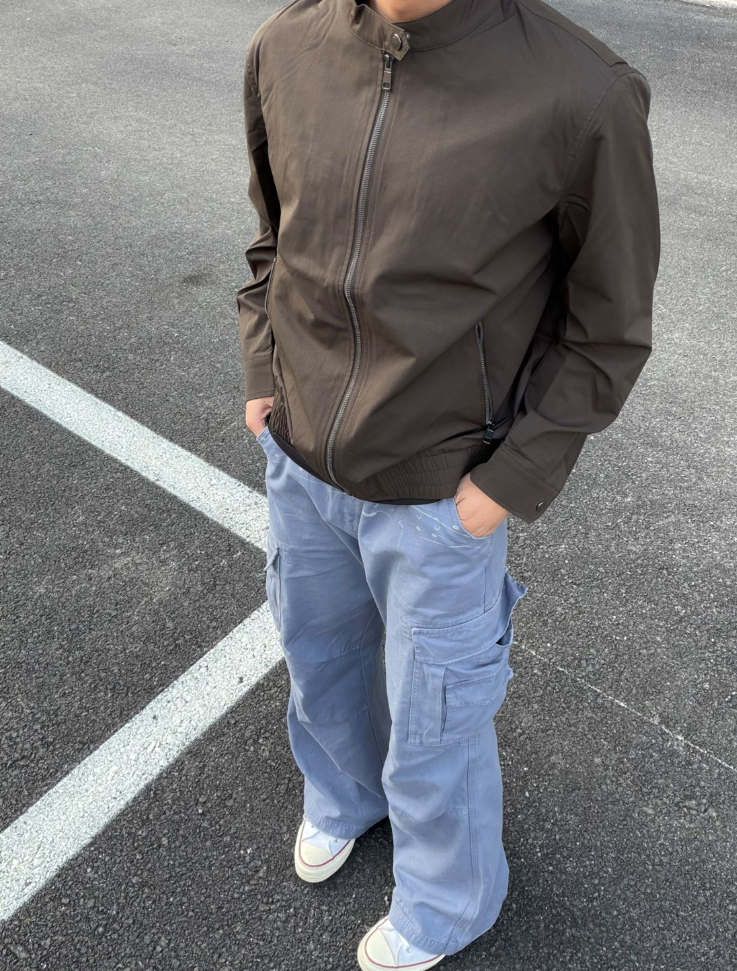 上身纯色夹克外套简单又帅气 面料也很轻薄舒服 内里搭配一个黑色打底再加上法工蓝帅气工装裤 开春穿的简单一点就很帅啊