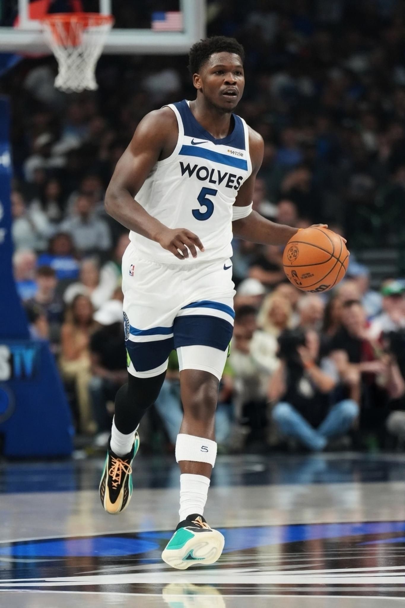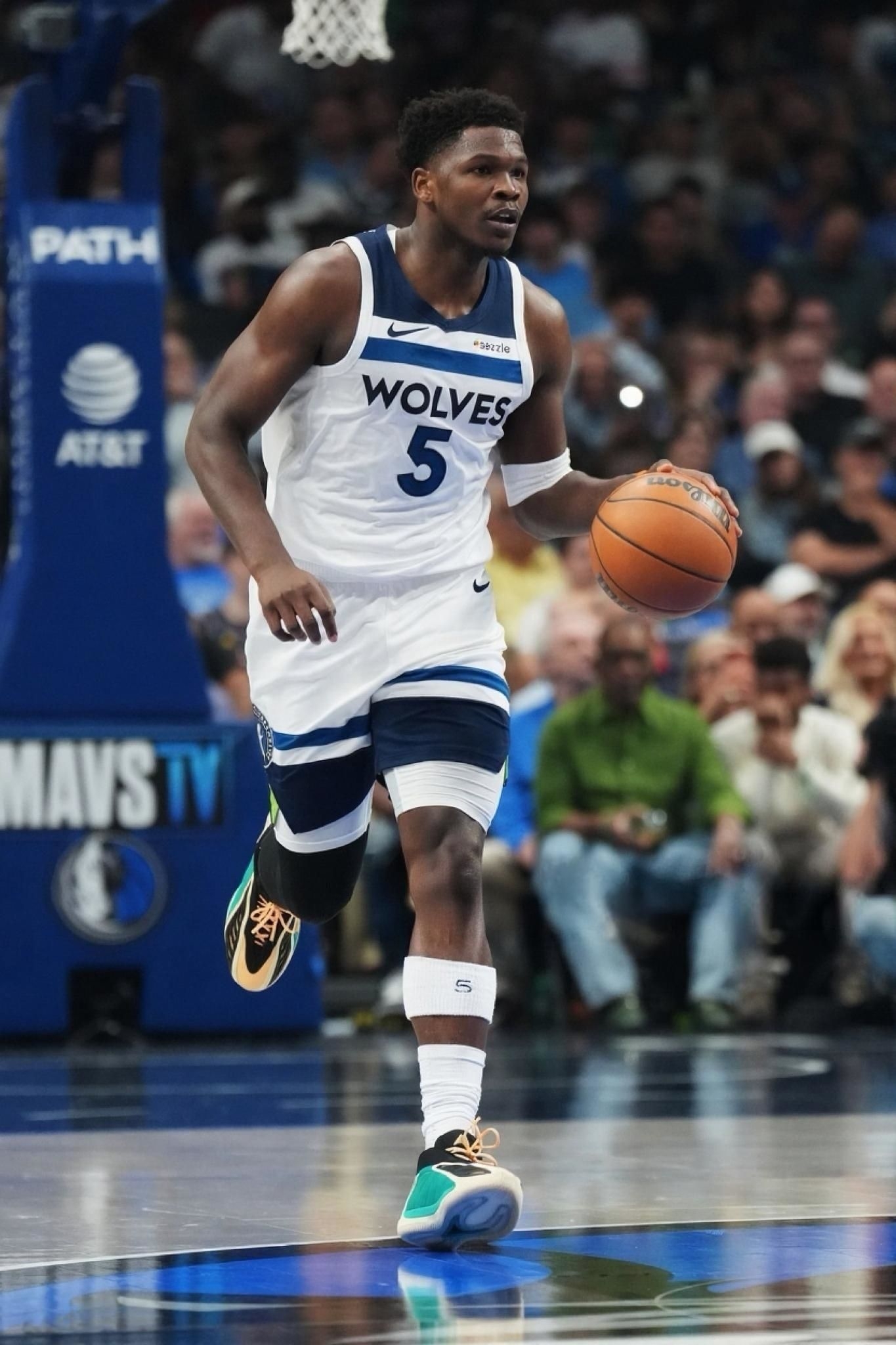 今日NBA常规赛森林狼124-94战胜独行侠。 本场比赛,森林狼队球员安东尼-爱德华兹替补出战22分钟,投篮13中7,三分球3中2,罚球1中1,得到17分2篮板4助攻。 比赛中,爱德华兹上脚adidas AE2“Equipment Green”。