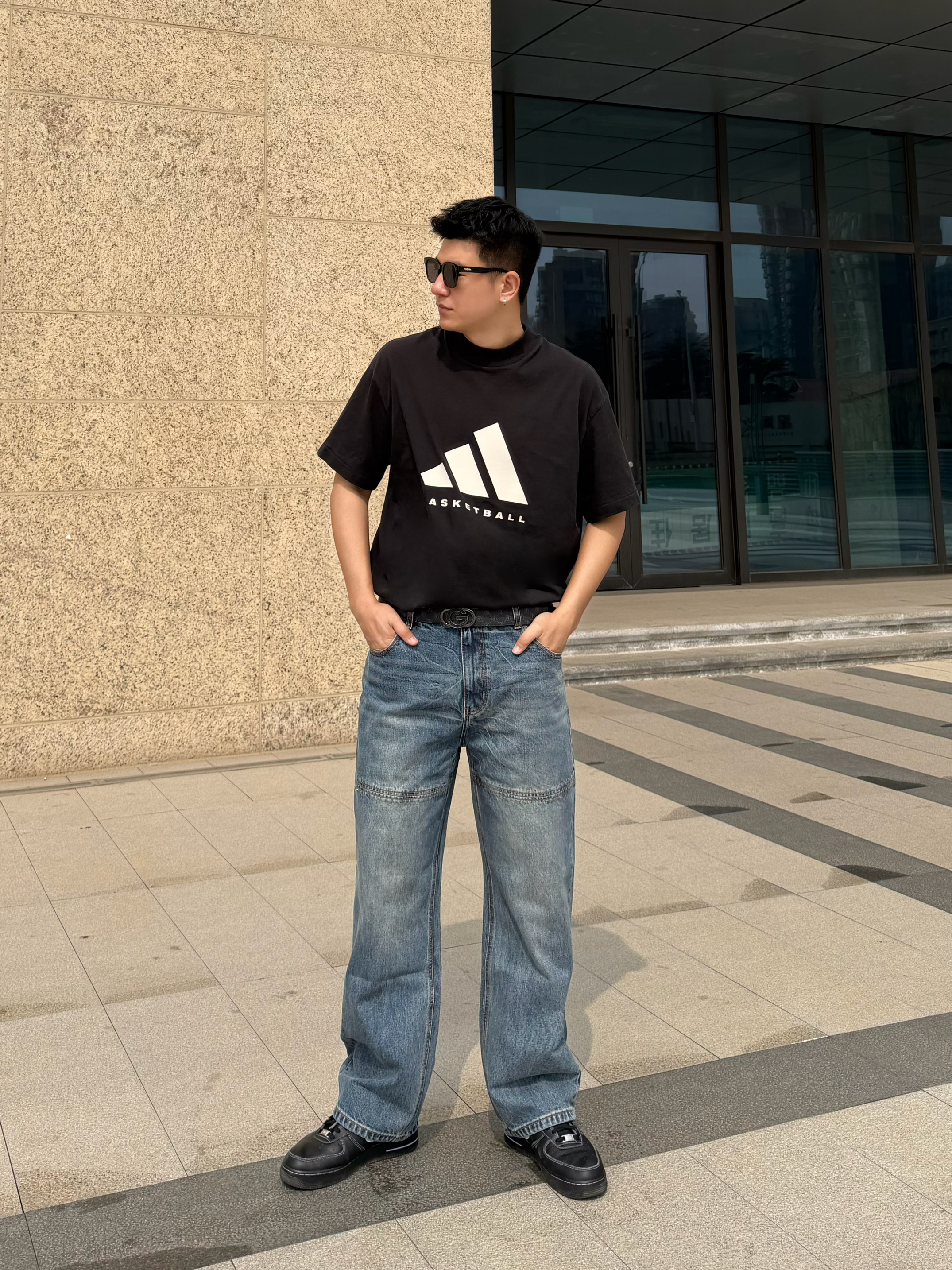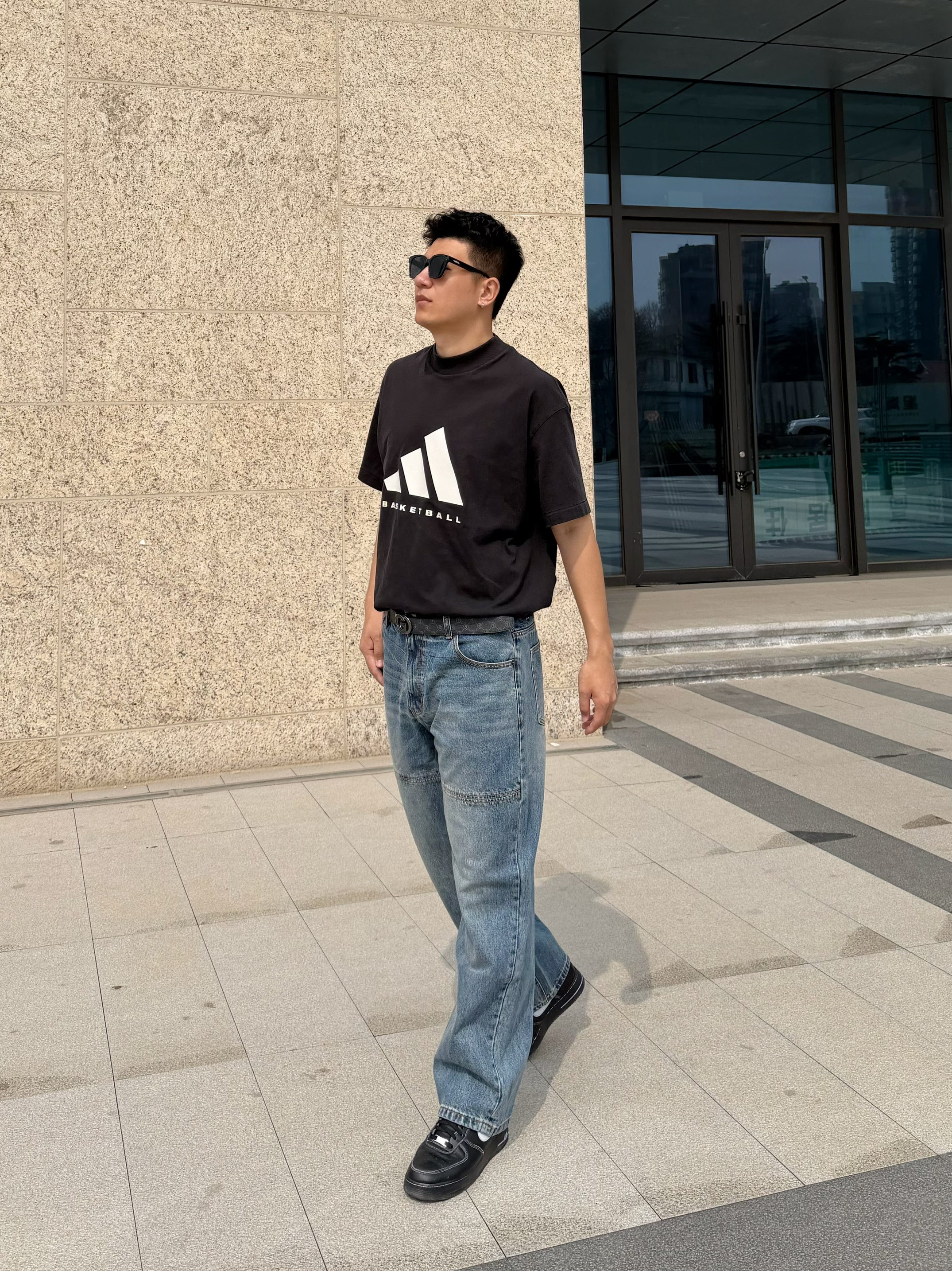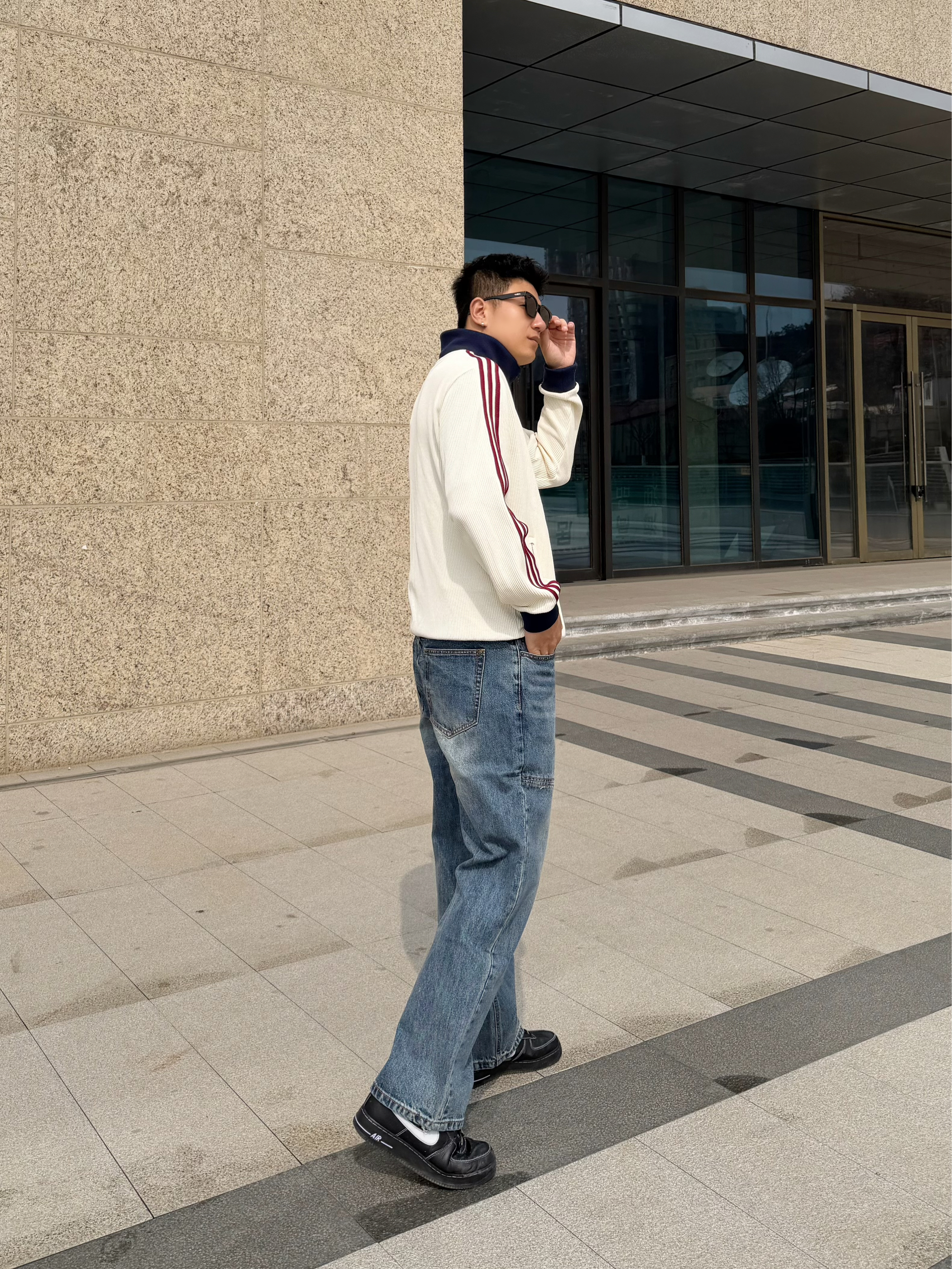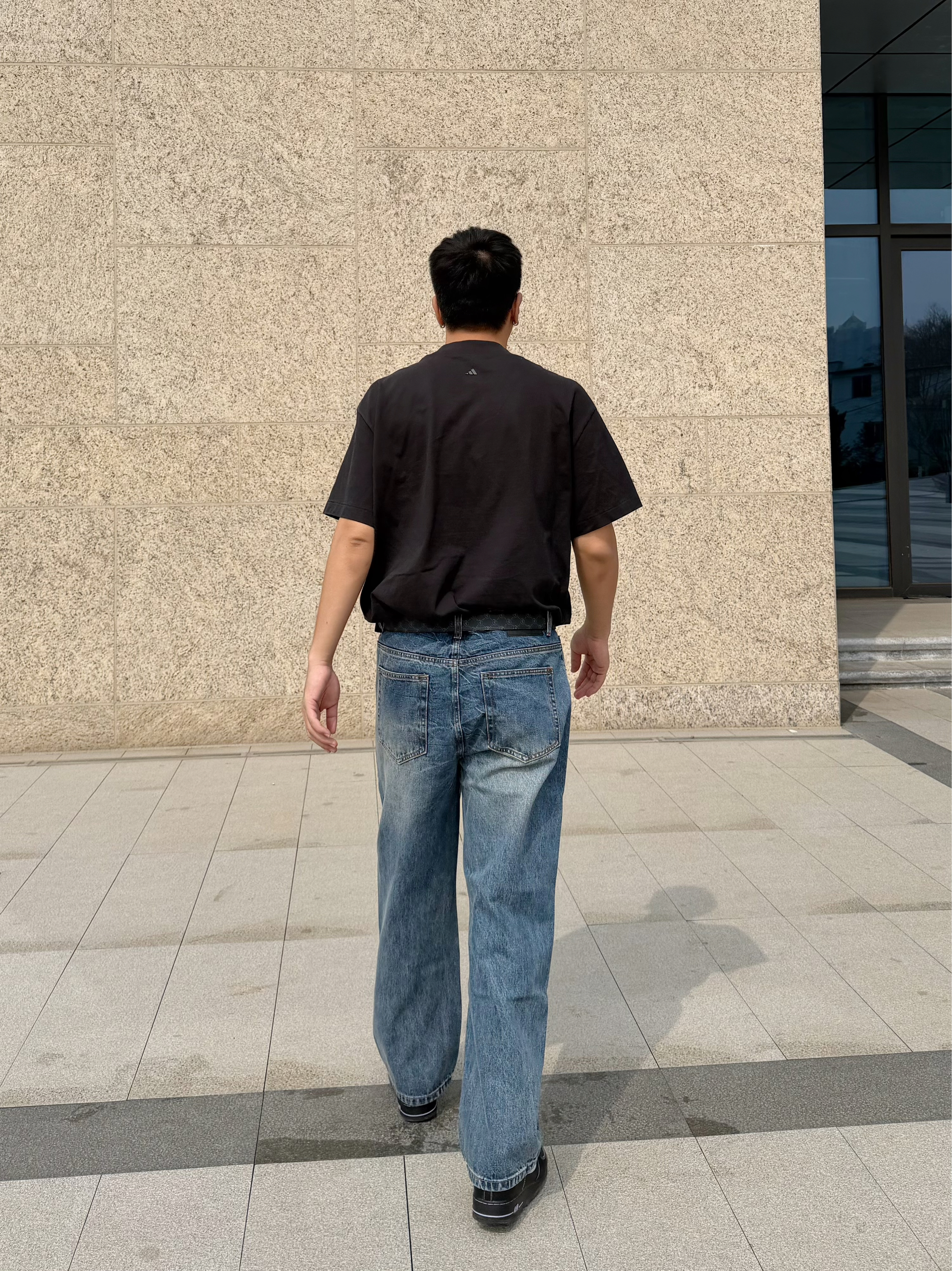 长得帅真不如穿得帅😎 这条歌随牛仔裤,上身没有束缚感 中蓝色直筒版型,宽松不挑腿 上身搭乳白华夫格or黑色运动T恤 脚踩一双黑板鞋,怎么搭配都好看 百搭不挑衣服,简约设计,很大方耐看 👦🏻:188 | 85 👖:36