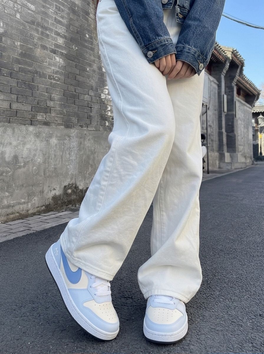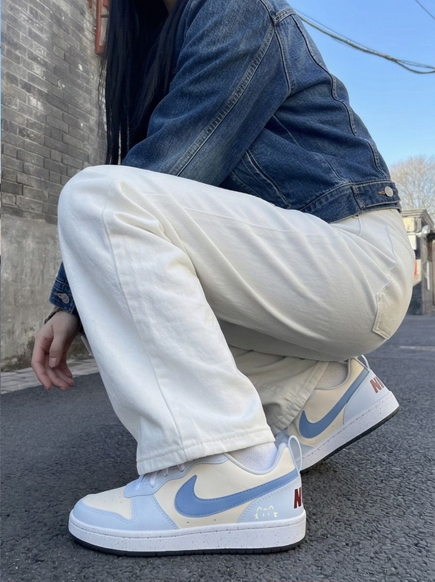 刚收到这双板鞋就穿着去打卡胡同啦~走在路上回头率超高,连路上的大爷都问我在哪买的👀 蓝白配色真的太治愈了✨米白和浅蓝的搭配干净又清新,像是把天空和云朵穿在了脚上~鞋侧的小图案也很可爱,为鞋子增添了几分俏皮感😝 搭配我这条奶白色的裤子,简直绝了!整体看起来温柔又舒服,不管是日常上学、逛街,还是和朋友出去玩,这样的穿搭都超合适~而且鞋子的鞋底很软,走路久了也不会累脚👣 我已经能想象到搭配裙子、短...