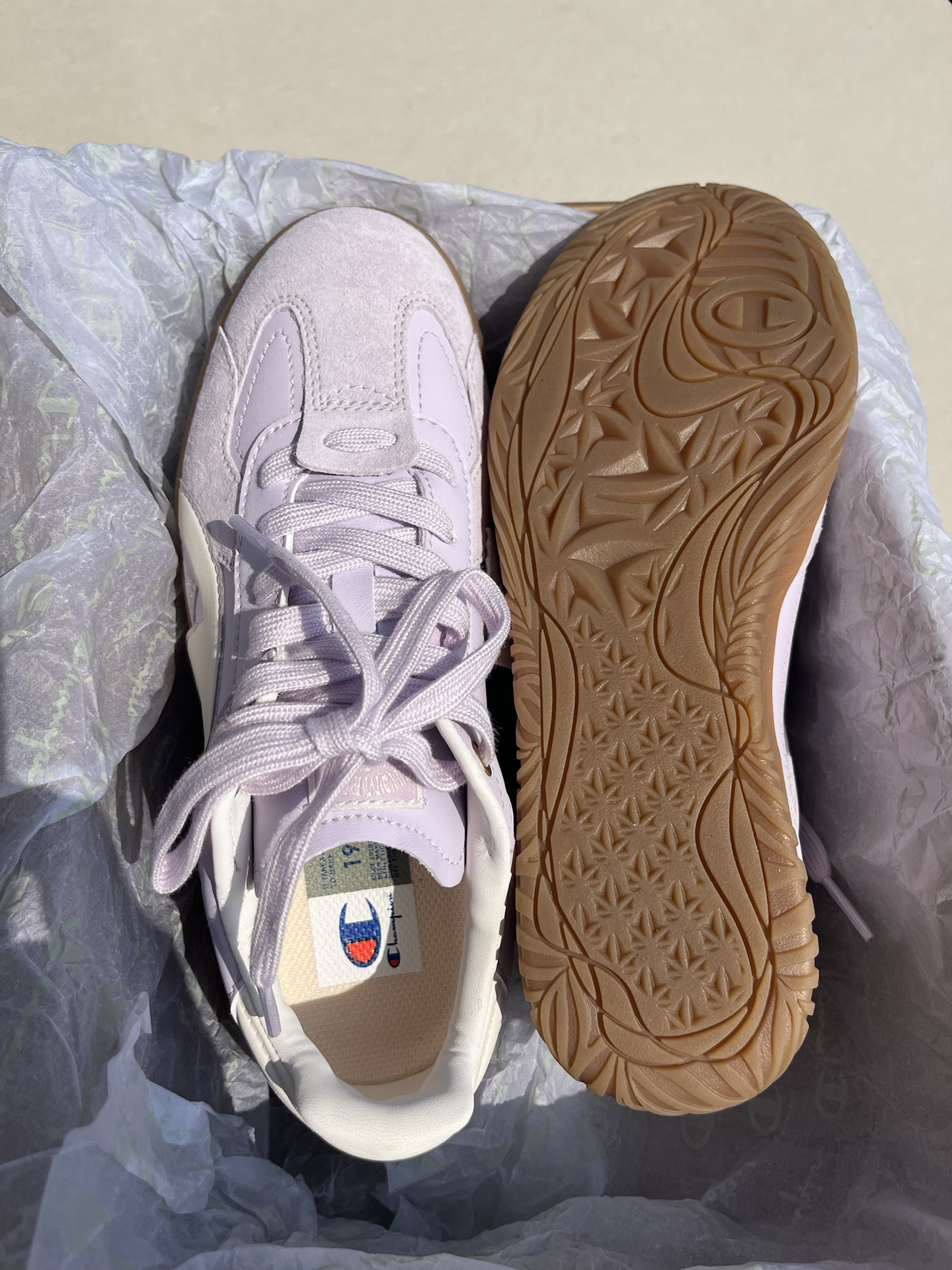很难不爱介双Champion德训鞋呀 芋泥紫的配色敲好清爽的 logo飘带设计显得很特别 不勒不闷很好穿 日常通勤都没问题 爱咯爱咯