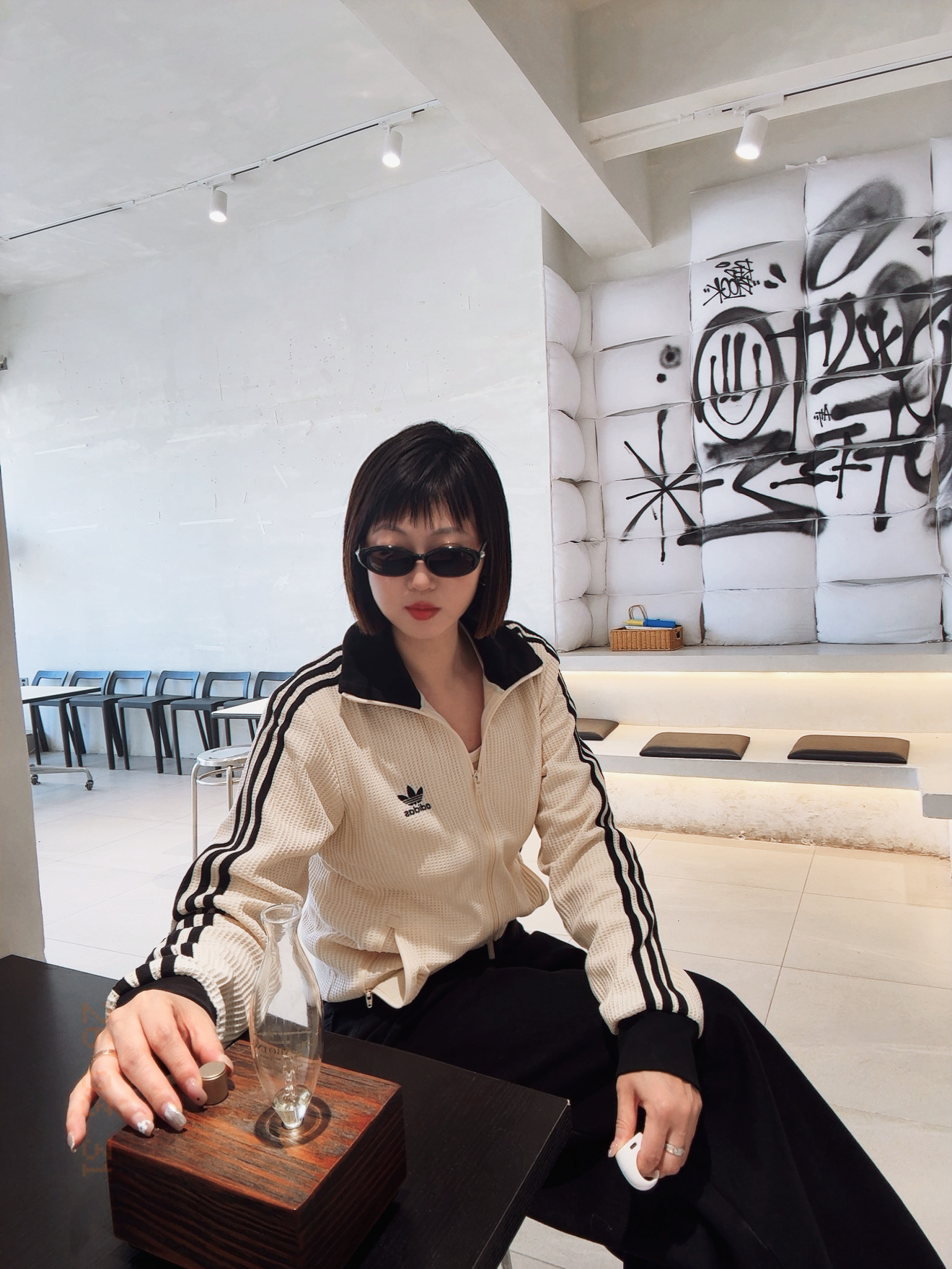 春天的酷感,是黑白给的。 经典阿迪三条杠短款外套,搭配垂感黑阔腿裤,利落又不拖沓。短款版型刚好优化比例,自带韩系街头感 墨镜一戴,谁都不爱,一键切换入春酷飒模式 运动风也能穿出清冷感,这套黑白穿搭直接焊在春天的衣柜里🕶️