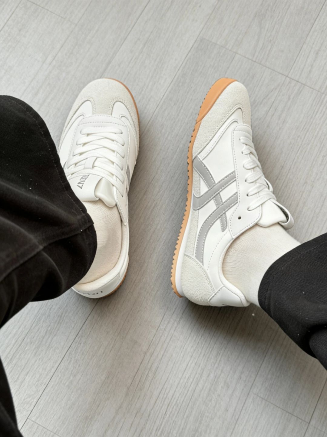 这双德训鞋真的很百搭,白灰拼色+翻毛鞋头,看着干净又耐脏。 皮面好打理,脏了一擦就干净,生胶底软弹还防滑。 昨天穿它通勤4万步,脚部没有任何不适感。 日常出门配运动短裤、牛仔裤都好看,上班通勤、周末逛街、公园散步都能穿,脚感舒服不磨脚,是那种穿了就不想脱的基础款,随便搭都不出错~😌✨