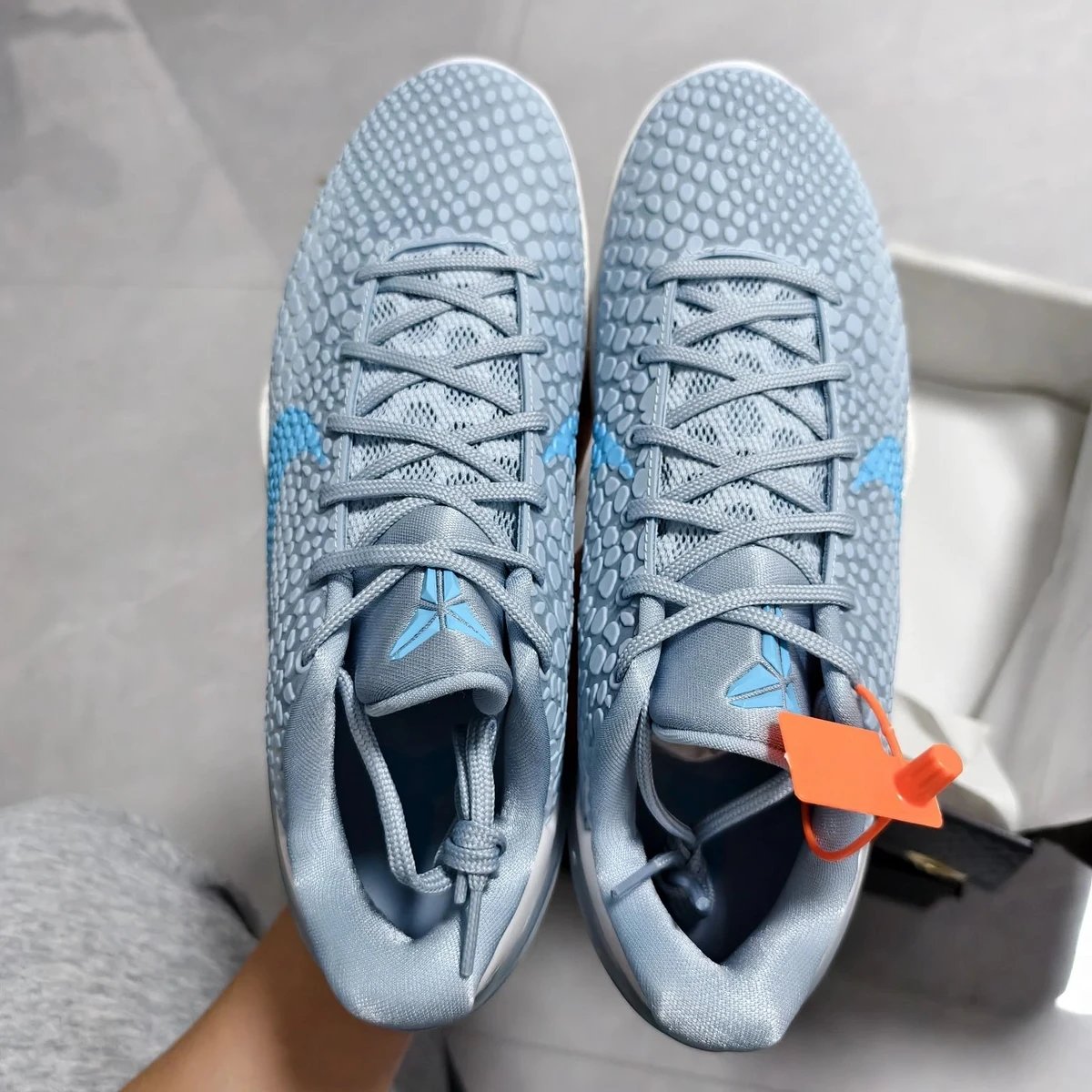 这双联名科比6真的一眼心动!清爽蓝色调高级又耐看,标志性蛇鳞纹路质感满满,细节处暗藏Caitlin Clark专属元素,颜值直接拉满💙 低帮版型上脚利落不臃肿,男女同款都能轻松驾驭,日常搭牛仔裤、运动裤都超百搭。前掌Zoom气垫脚感绝了,缓震柔软又不失回弹,实战启动迅猛,变向突破都很稳定。包裹性贴合舒适,长时间打球也不压脚,水波纹大底防滑耐磨,场地感优秀。 既有曼巴精神的经典传承,又有女篮超新...