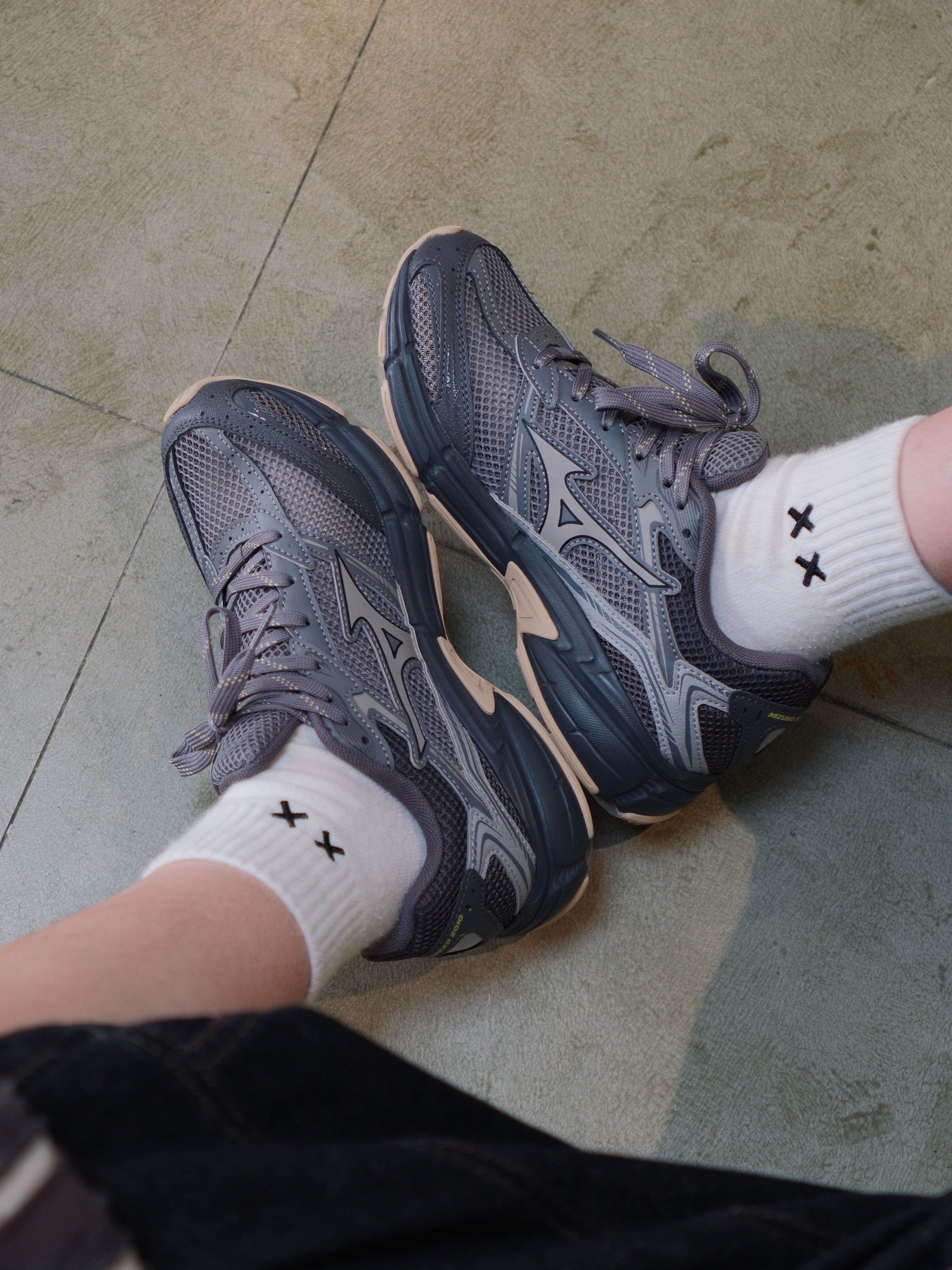 现在的跑步鞋时尚感十足 今天上脚这双美津浓 speed2010款 灰色鞋面搭配卡其色中底,复古又百搭 透气网眼春夏天穿不闷汗 侧边依旧是经典的品牌logo,很有辨识度 搭配条纹T恤➕七分裤 春天出街运动直接slay全场
