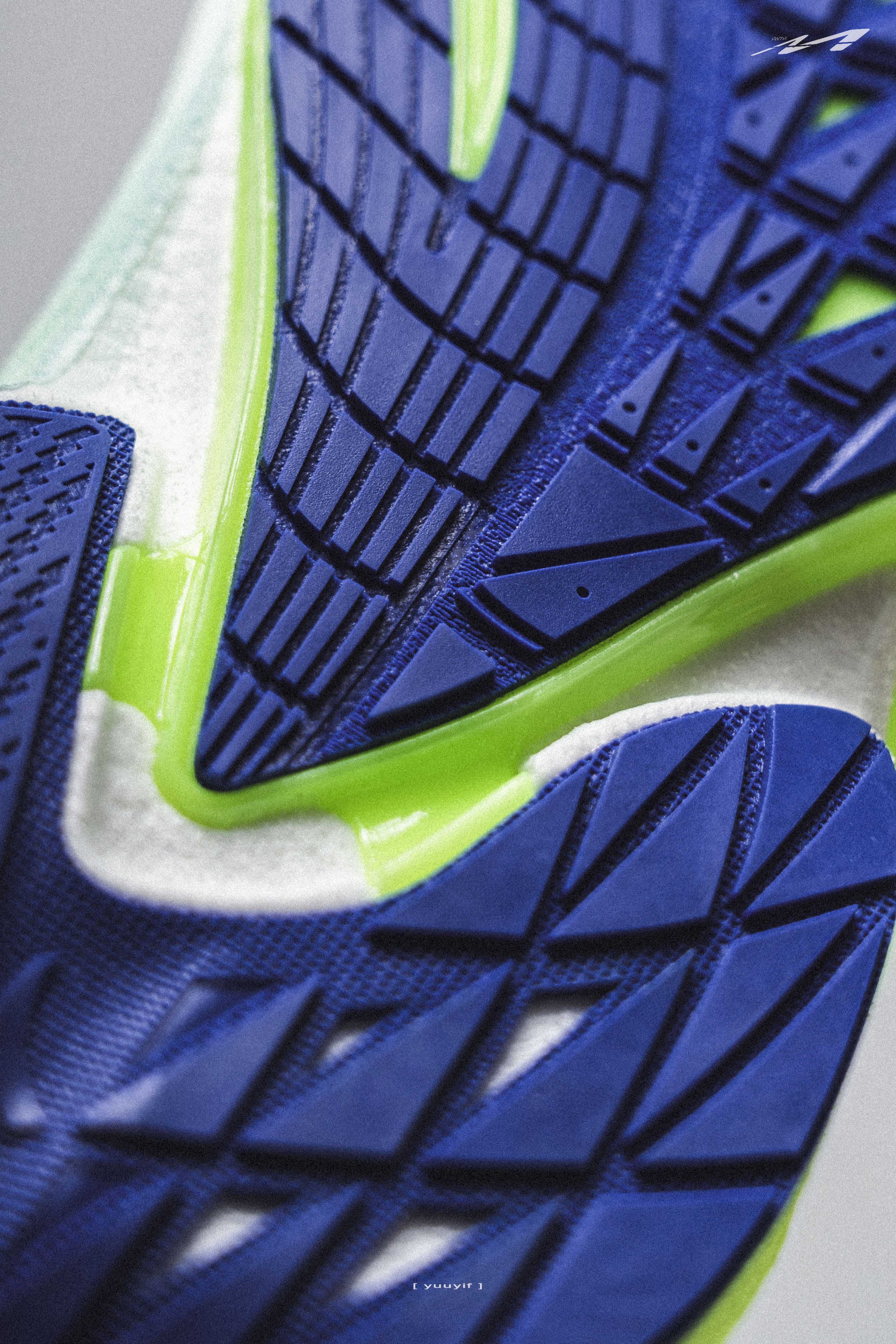 专业场地竞训跑鞋马赫6代,外观设计语言延续了系列一贯的风格。 配置方面,搭载全掌氮80中底+氮90鞋垫的形式,中足有特殊设计的异形弹射片,内侧延伸至足弓上,增强内侧的支撑性,外侧搭配外底的“过弯牵引”设计,也是针对场地竞速而做的, 此外AT-FIBER鞋面,也具有轻量透气的特性。 体考体测首选,适配高强度场地竞训穿着。
