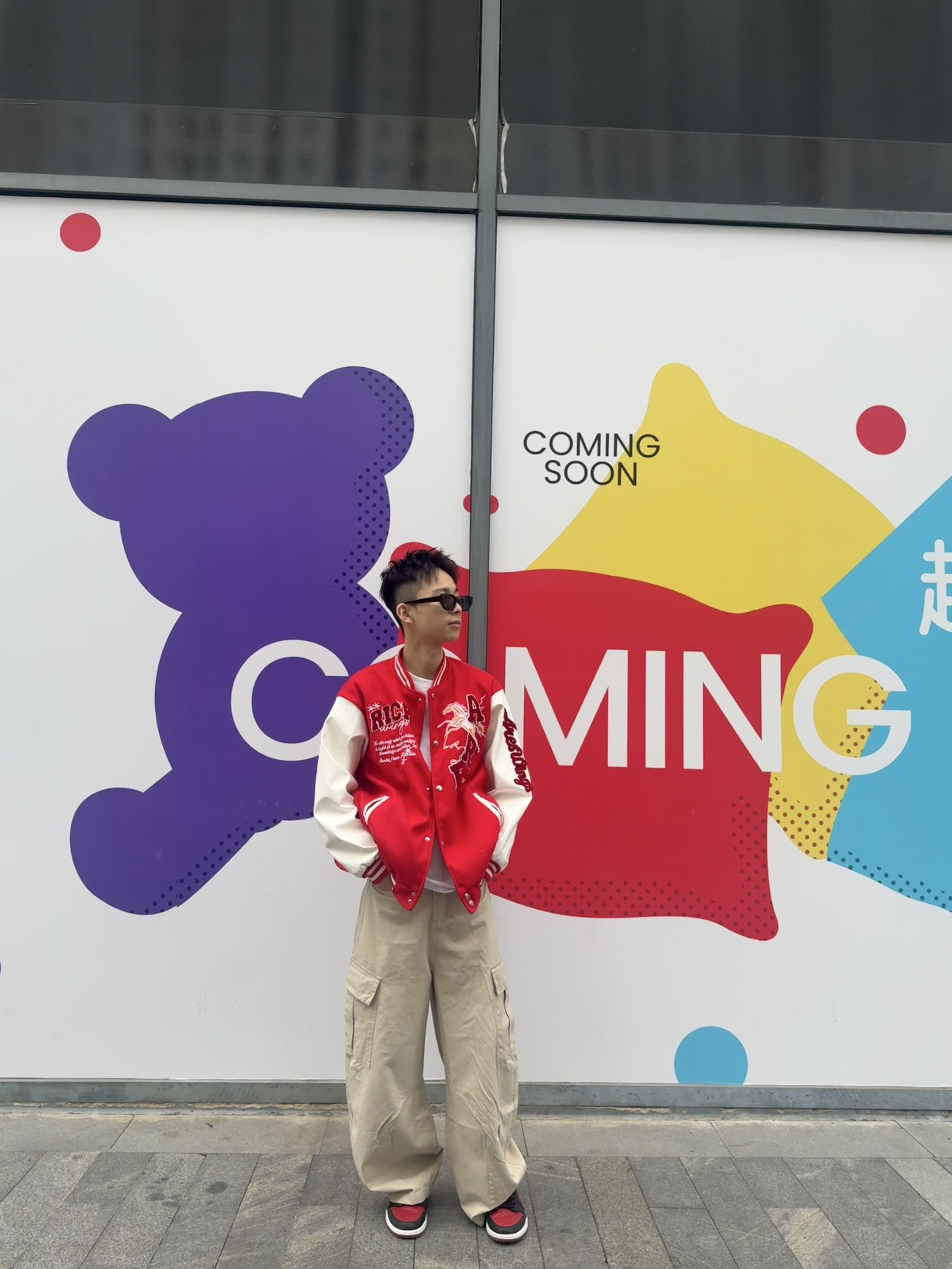 红夹克 麦色色系!外套M码 裤子S码 本来还以为最近这个天气拍不了这组照片了 结果这两天又稍微降了点温 今天就拍了这组照片 抄就完事了 这套穿搭包帅的 街头感氛围直接拉满 潮流前线 外套前袖白色那块是皮质的 质量不错 裤子腰间都不需要皮带 就是稍微有点长 可以拿去改短一厘米 这套穿搭男女都可以驾驭 #分享百搭氛围感夹克 #秋冬季夹克穿搭 #分享我的夹克穿搭 #街头风宝藏休闲夹克外套 #ootd...