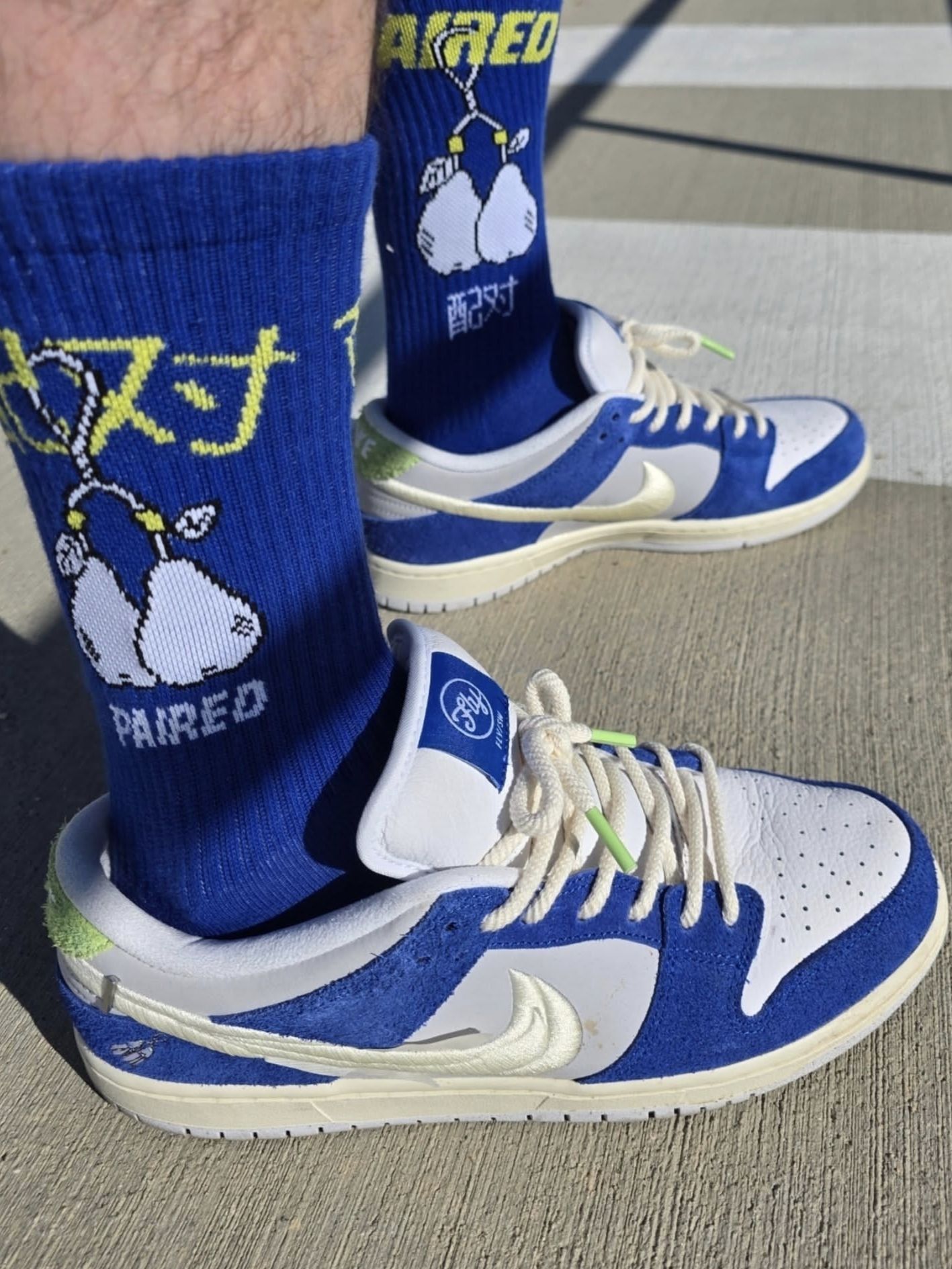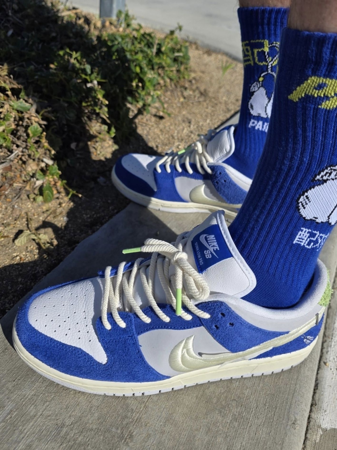我直呼上头,这双Fly Streetwear联名Dunk SB是我鞋柜里穿不腻的存在。从春日通勤到周末滑板,它都能稳稳hold住,麂皮+皮革的鞋面耐造又透气,麻绳鞋带和做旧中底越穿越有味道,哪怕走满一天也不会磨脚,脚感扎实得很。 越看越爱它的蓝白撞色,克莱因蓝麂皮像极了上海街头的晴空,叠加刺绣的Swoosh还原了白兰花的形态,后跟的青绿点缀和鞋侧的小花刺绣,把老上海的温柔感藏在细节里。没有夸张...
