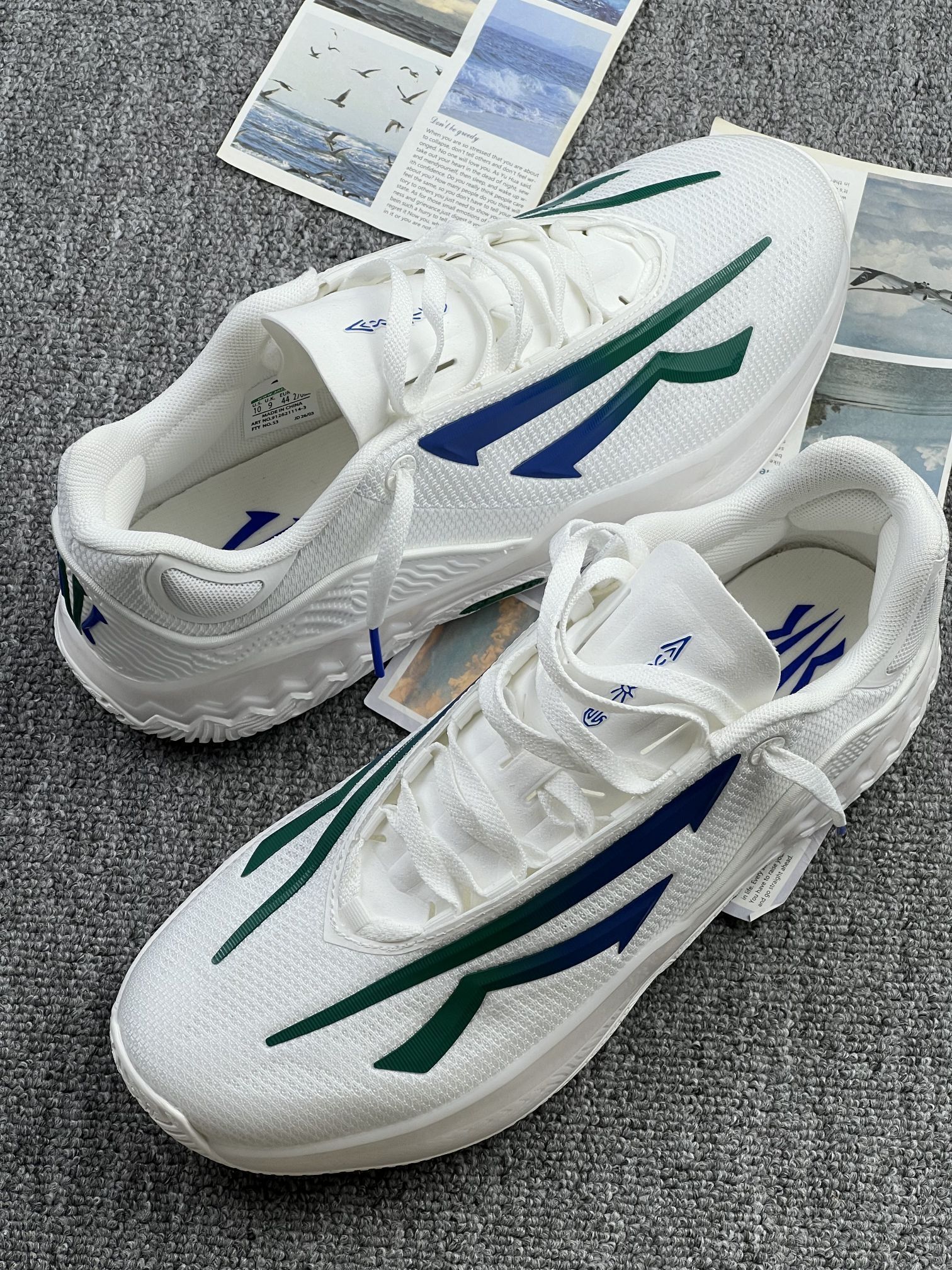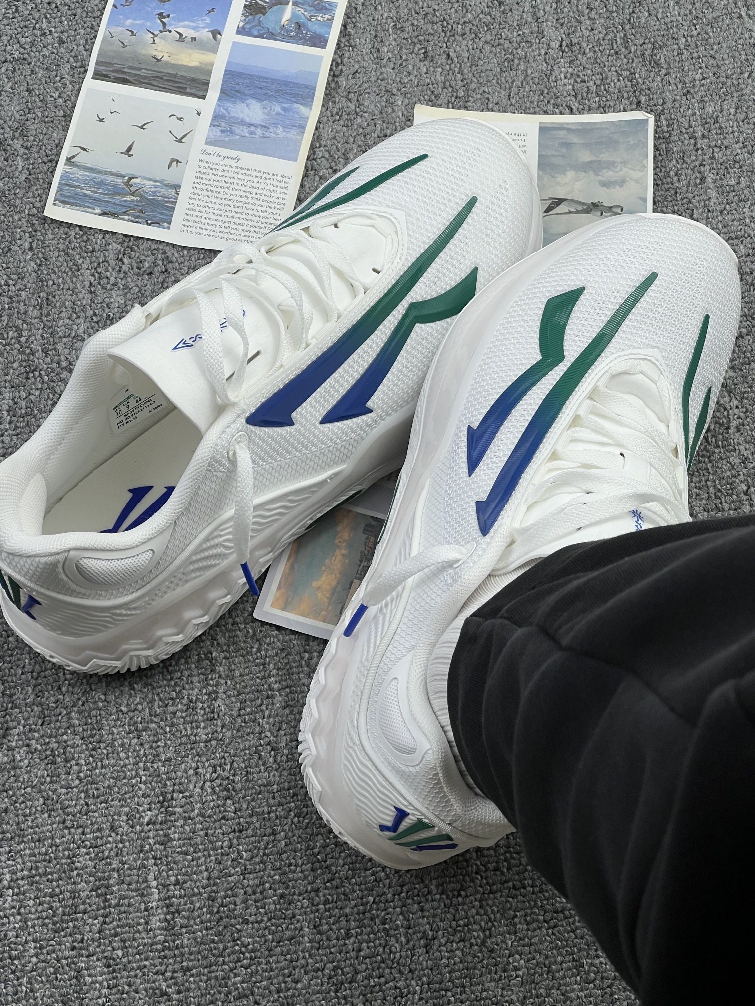 这双鞋上脚第一眼是清爽感👟,白绿蓝的配色很干净,搭运动裤、牛仔裤都不突兀,日常出街不挑穿搭。鞋面网眼布偏薄,春夏穿透气性还可以,不会闷得慌,鞋型偏修长,视觉上显脚瘦。 中底软弹度适中,日常走路、短距离通勤脚感舒服,不会累脚,重量也比较轻,长时间穿负担不大。 缺点也很实在:鞋楦偏窄,宽脚、高脚背穿会挤前掌,得选大半码;外底纹路偏浅,沾水后瓷砖、大理石地面容易打滑,雨天要小心;后跟包裹一般,快...
