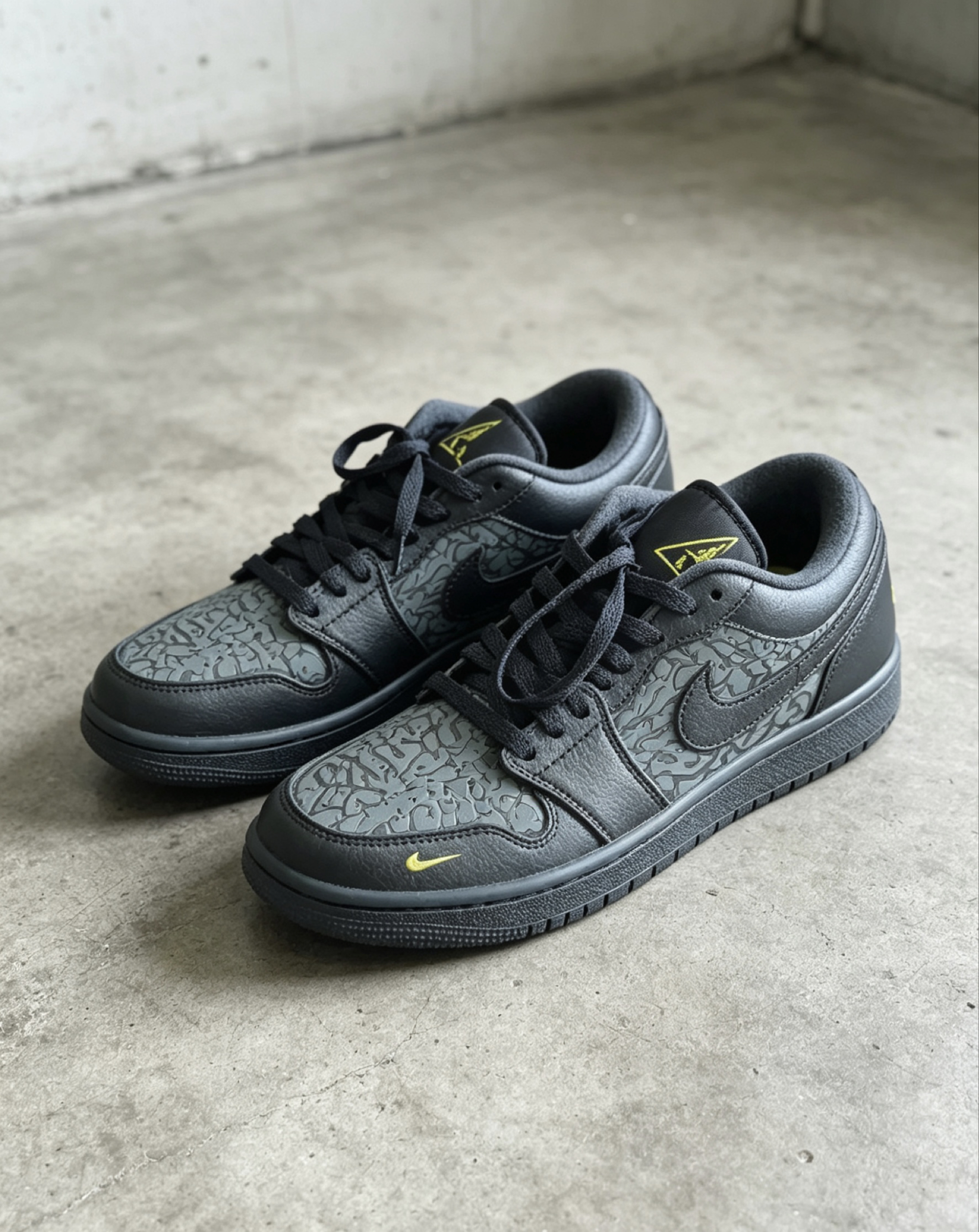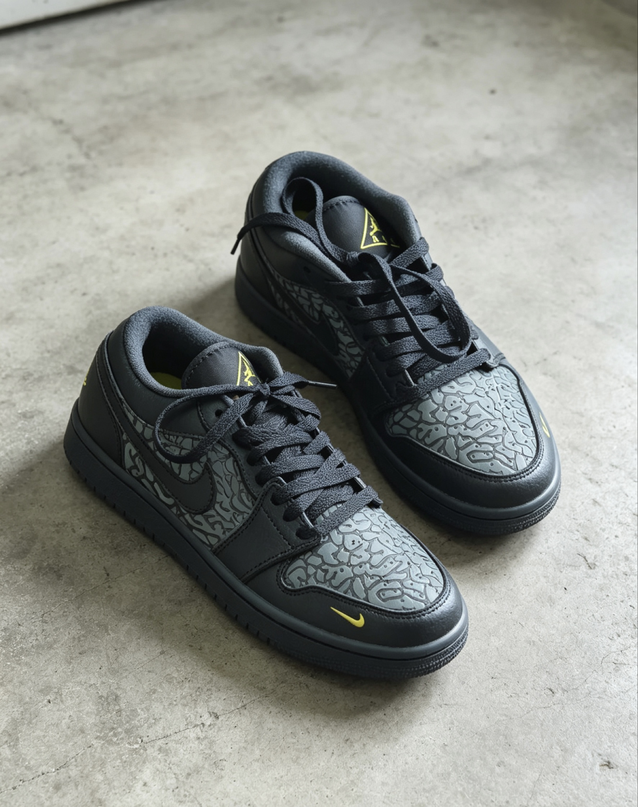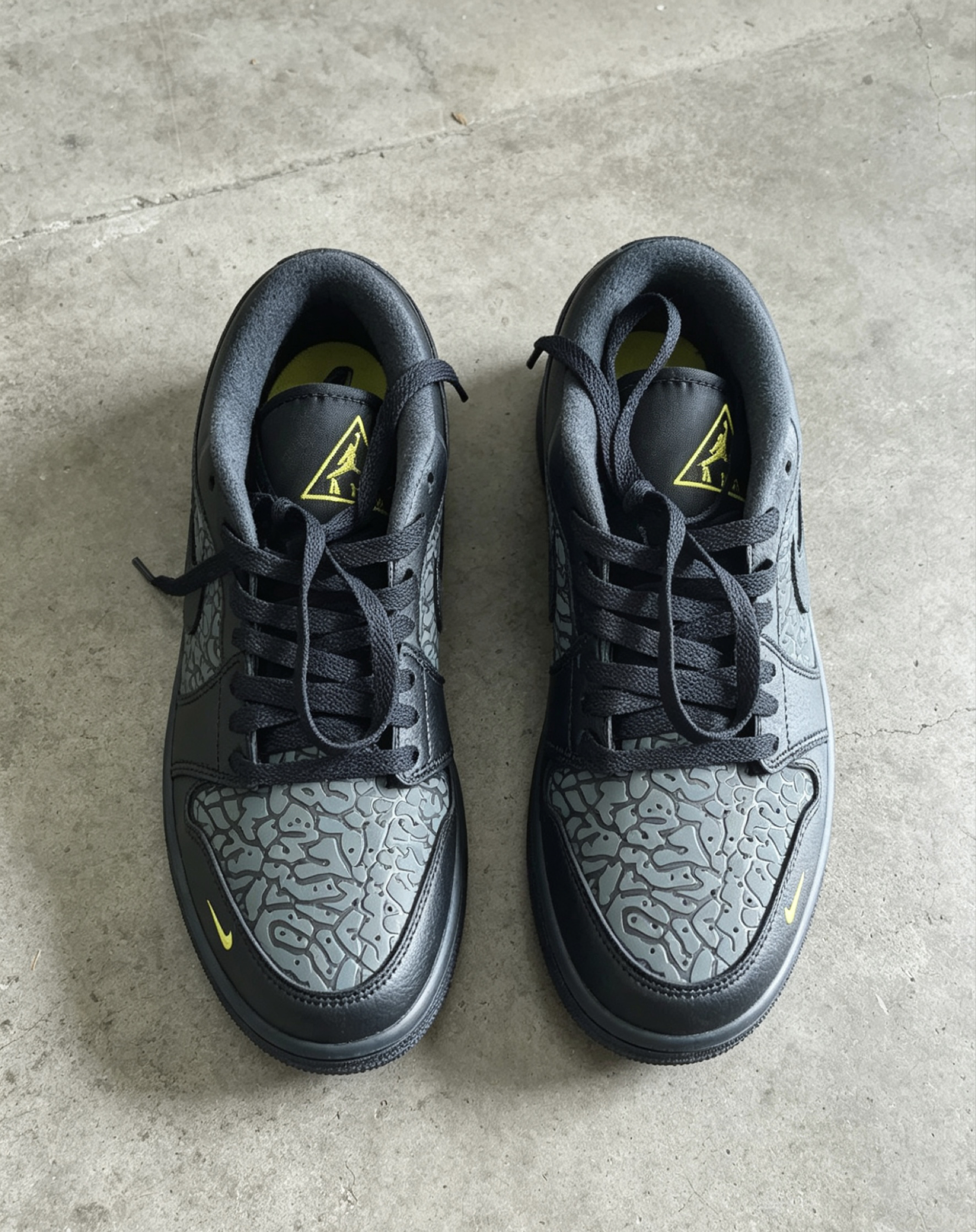 这双AJ1 Low黑水泥我穿了快半个月了🤙 整体脚感比元年款软很多,日常通勤完全不磨脚👟 黑灰爆裂纹+小金标,低调又有细节,搭牛仔裤运动裤都不挑👖 鞋型偏瘦,脚宽的兄弟建议大半码,避免挤脚⚠️ 打理也很方便,麂皮部分用软毛刷就能擦干净🧹 你们觉得这双黑水泥,适合当日常通勤鞋吗?🤔