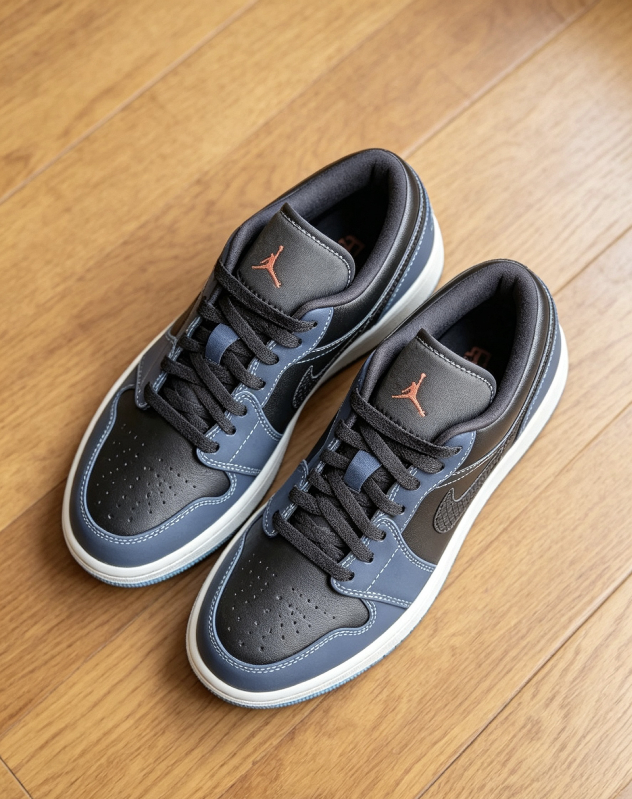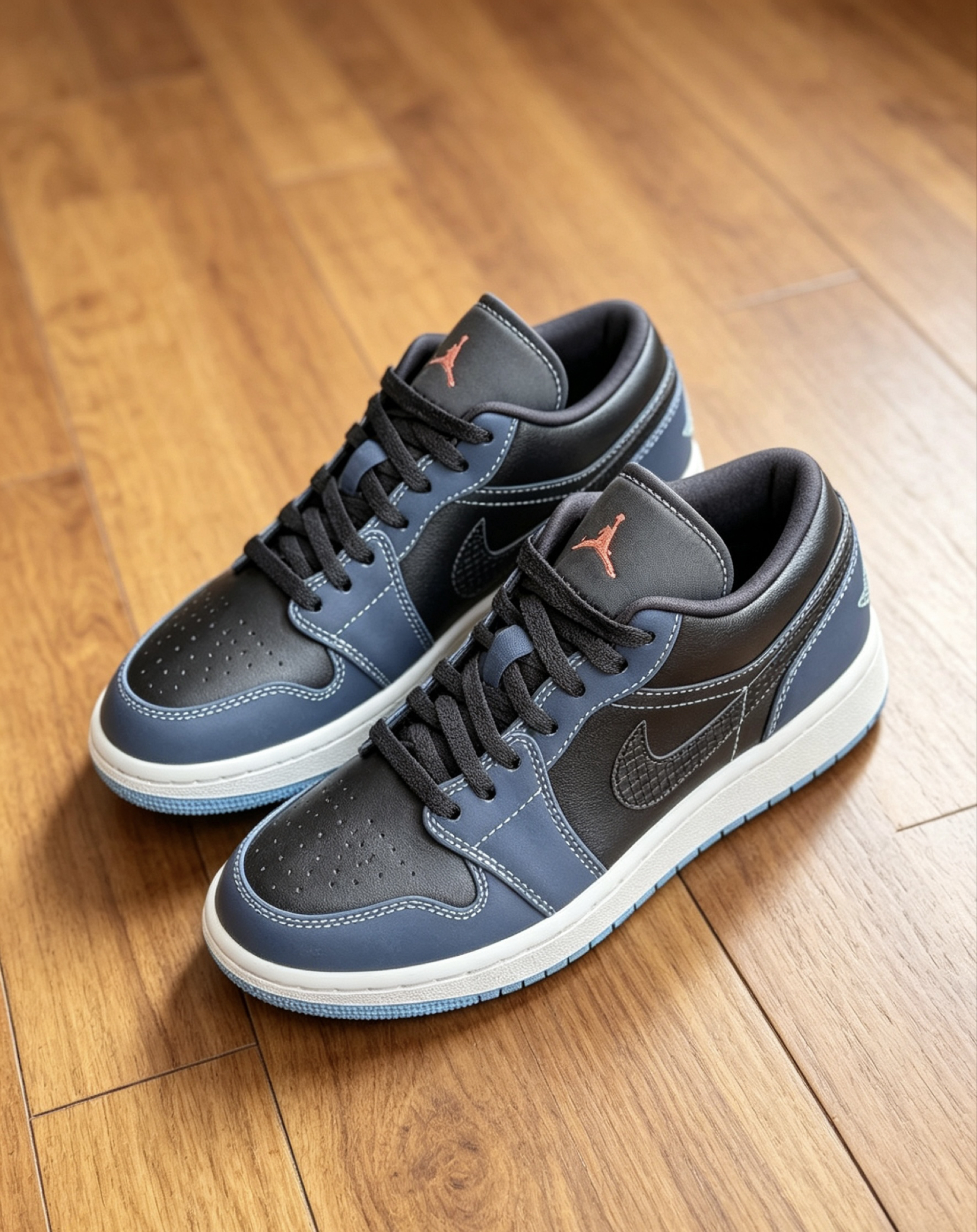 这双AJ1 Low午夜海军我穿了快一个月了🤙 整体脚感很稳,日常走路、上课通勤都不磨脚👟 黑蓝撞色+明线设计,低调又有细节,搭牛仔裤、运动裤都不挑👖 鞋型偏正常,脚宽的兄弟建议大半码,避免挤脚⚠️ 皮面打理很方便,脏了用湿抹布擦一擦就干净🧹 你们觉得这双午夜海军,适合当日常通勤鞋吗?🤔