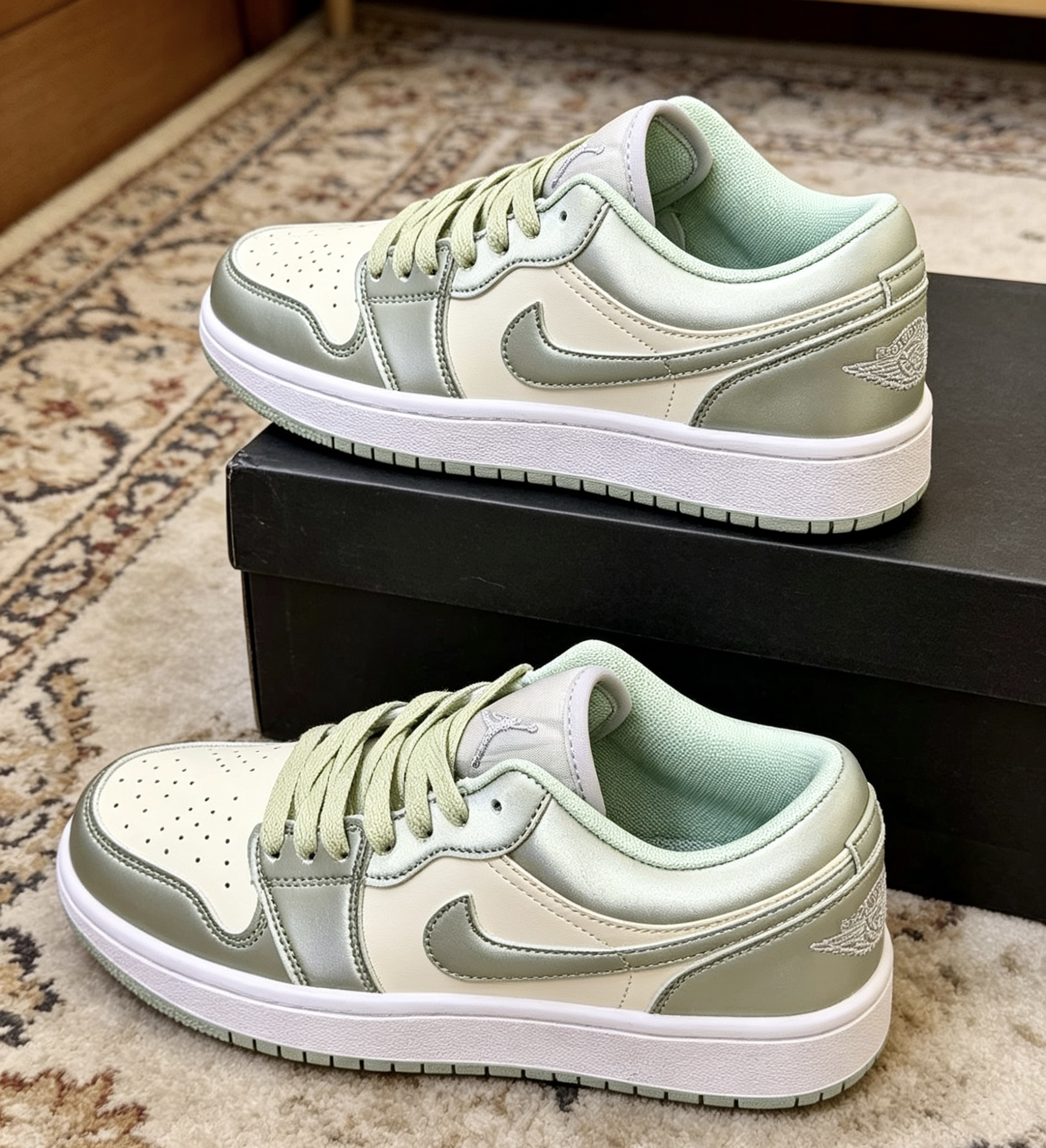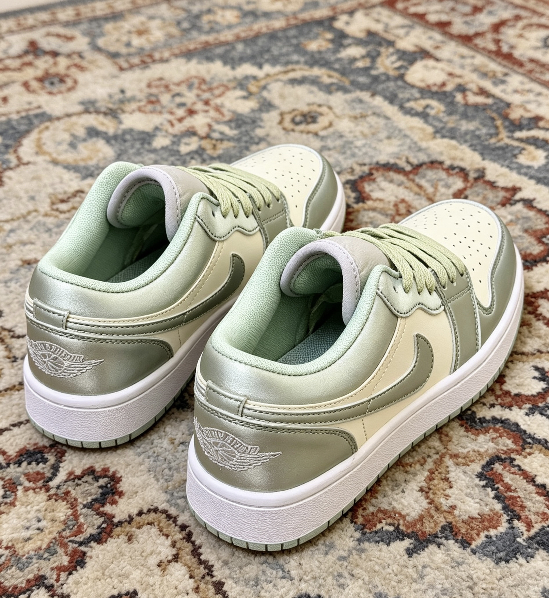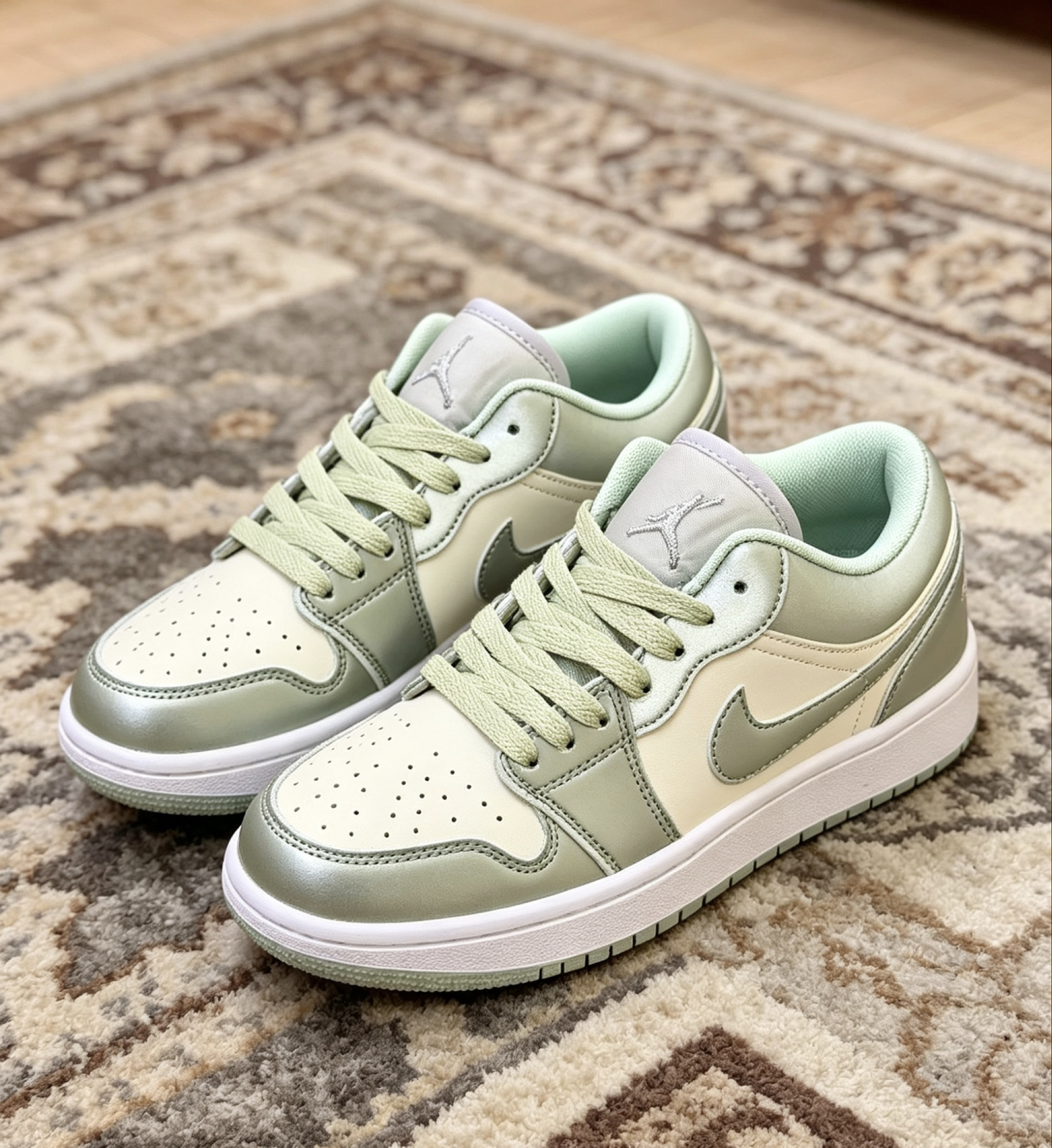 这双AJ1 Low海沫绿我日常穿了挺久了👟 整体脚感偏软,长时间走路也不会觉得累脚🚶 浅色系很清爽,春夏搭配裤子裙子都很适配🧊 鞋面材质好打理,轻微污渍擦一下就干净🧽 鞋码正常不偏,脚偏瘦的按正常码数选就可以✅ 你们平时会选这种浅色系球鞋当日常穿搭吗?💬