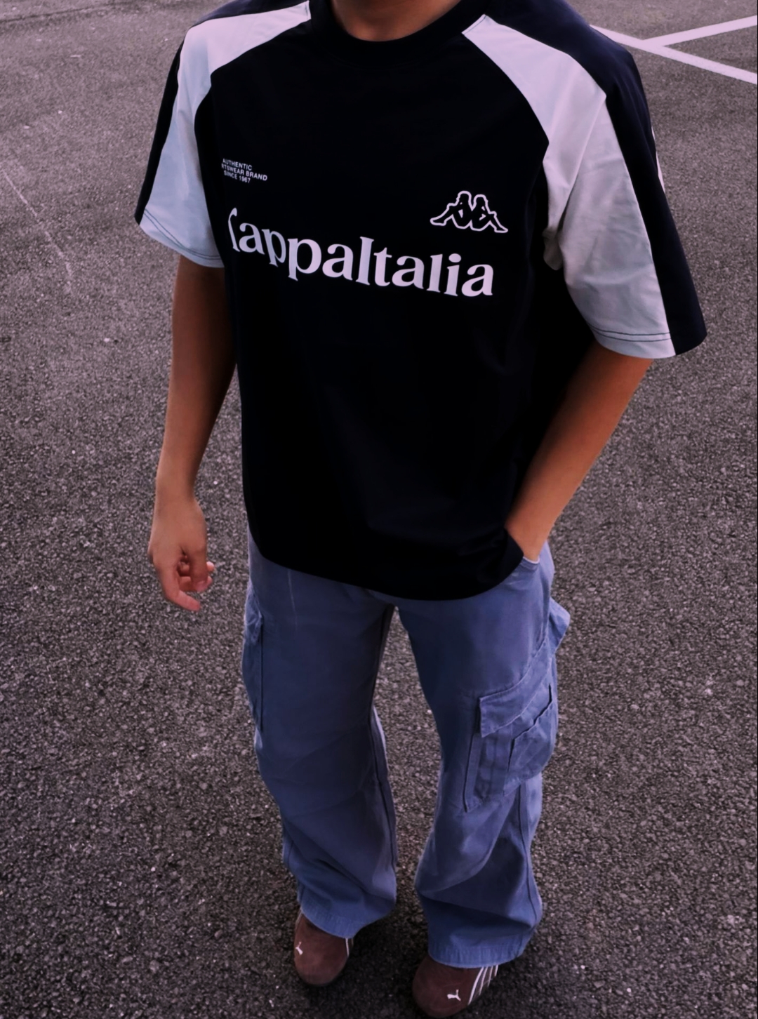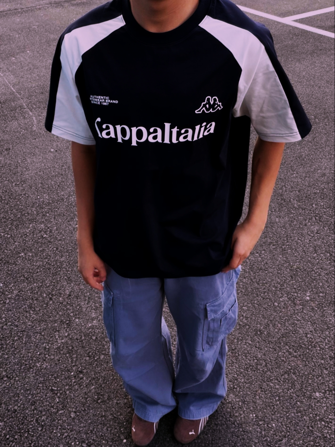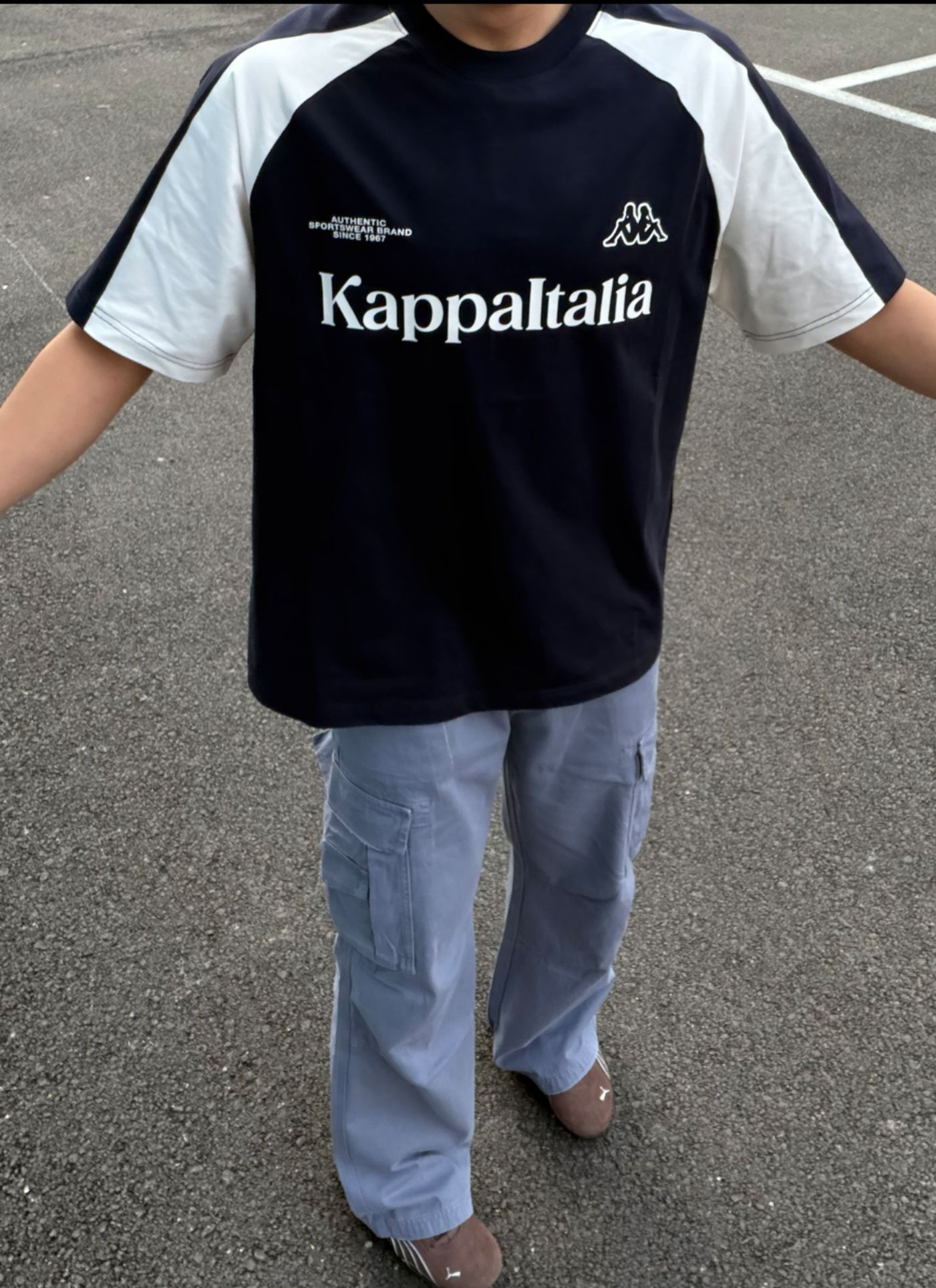 藏在日常里的运动风,Kappa的经典款永远不会出错,随性又耐看。 👨 🎽 👖 夏天的ootd公式:宽松T恤+工装裤,怎么搭都自带少年气滤镜。