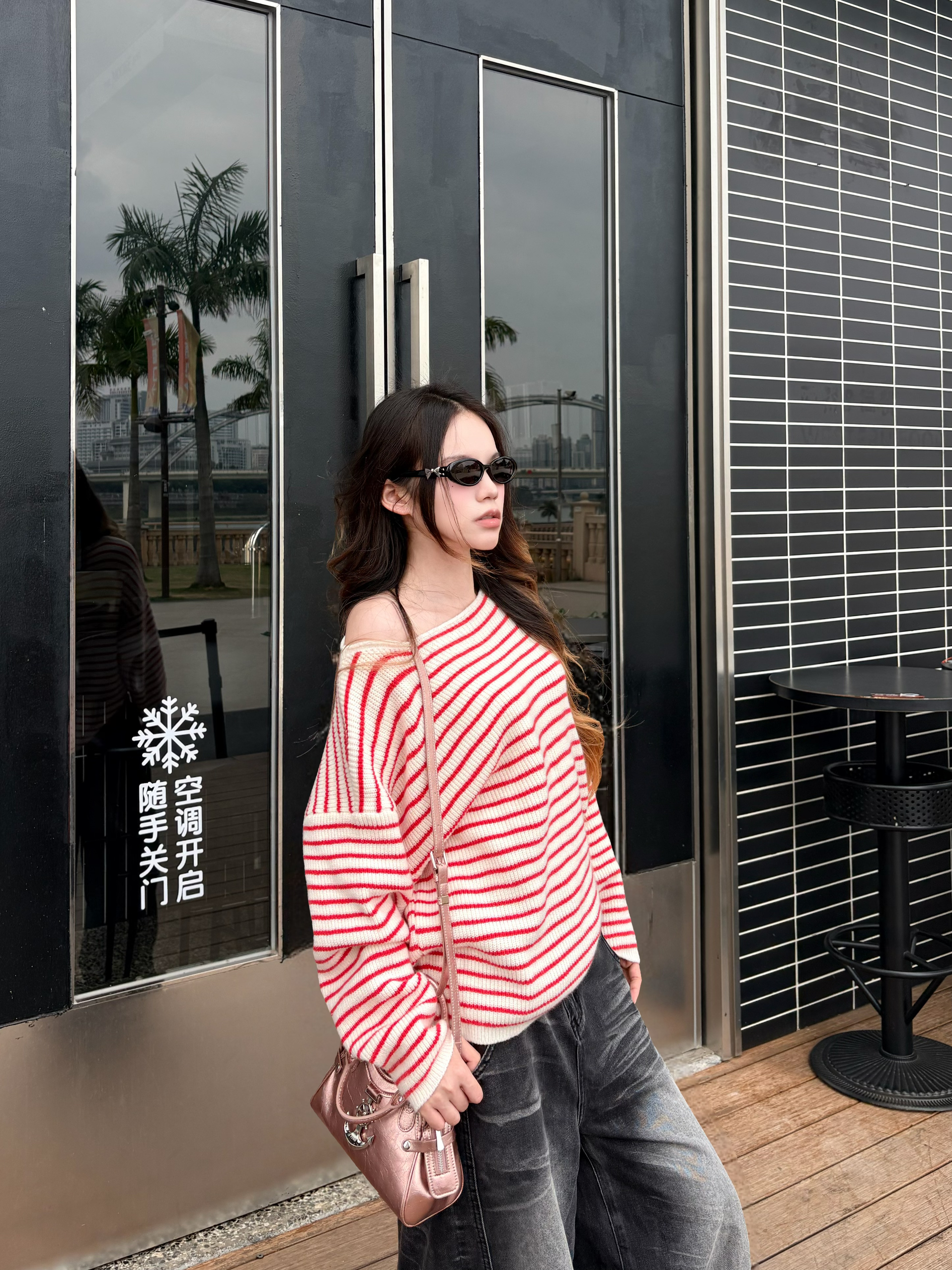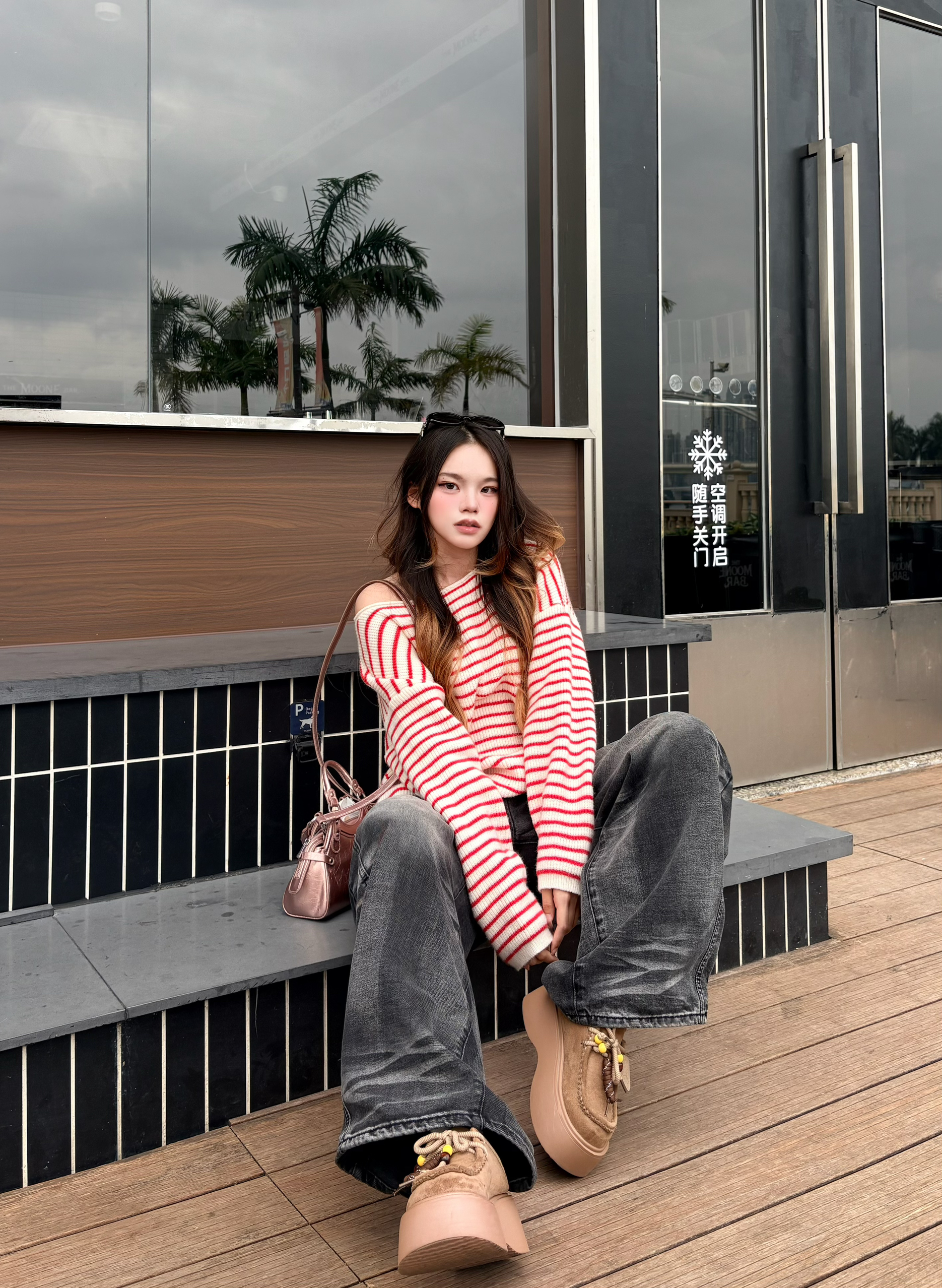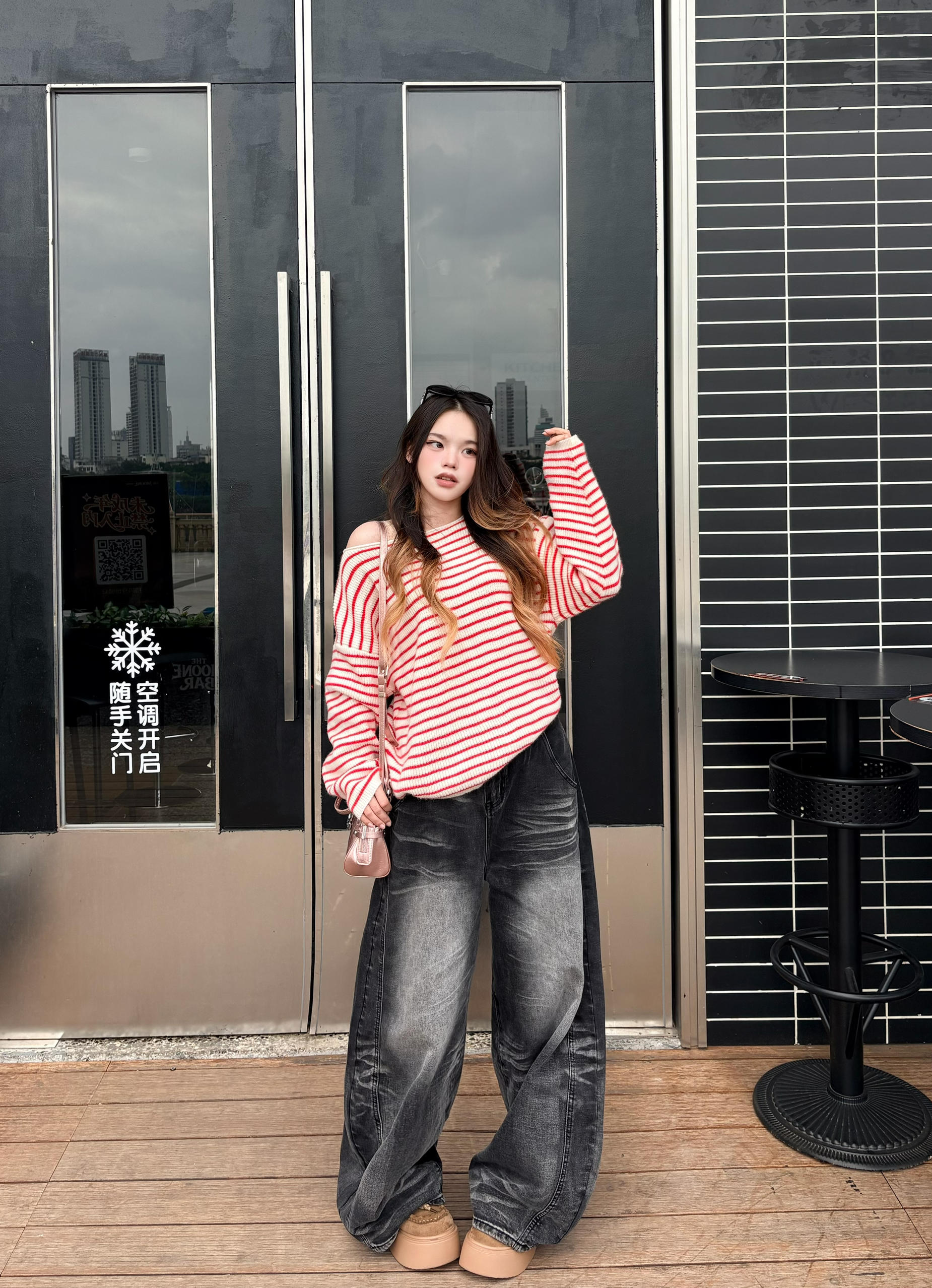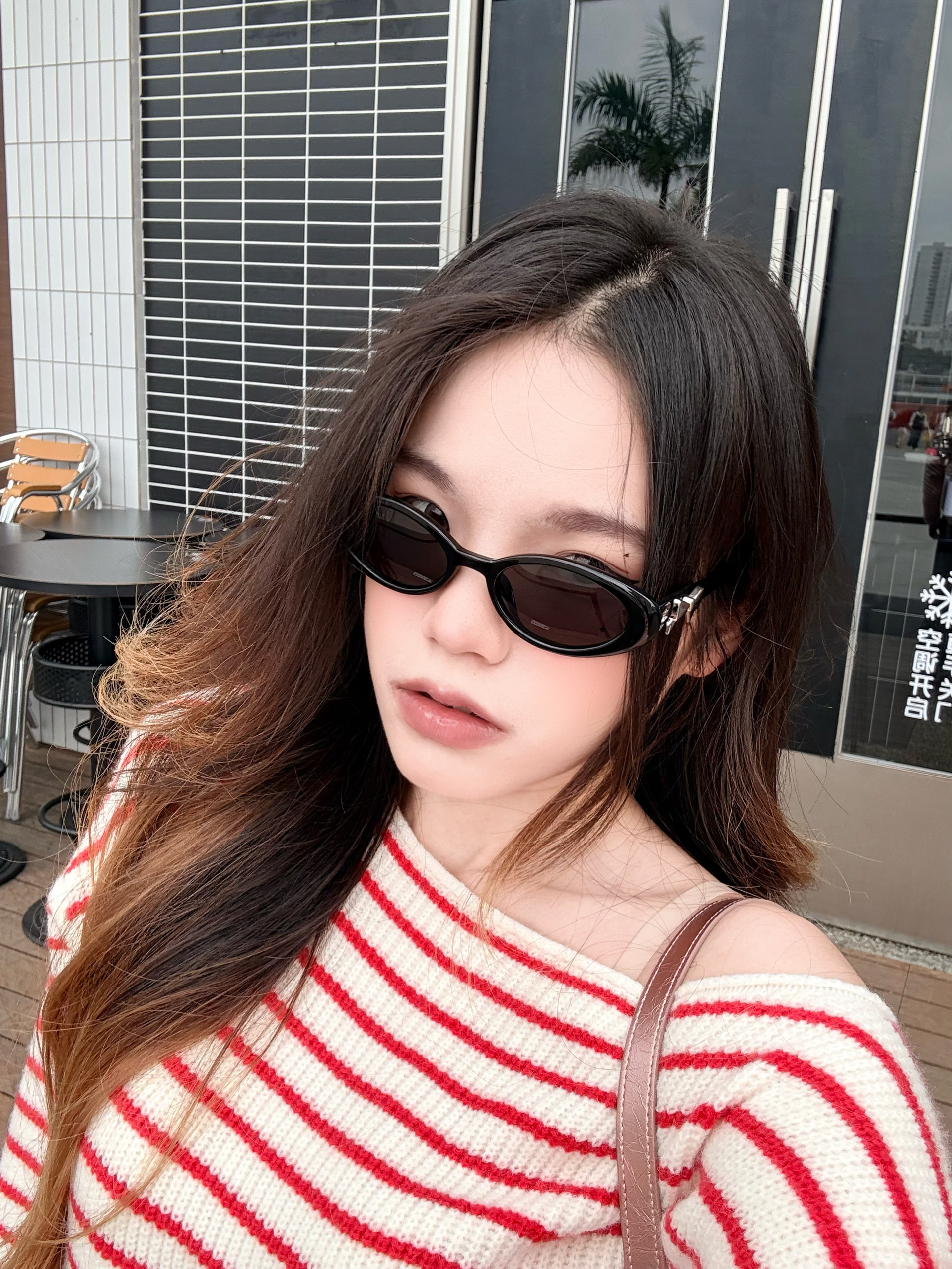 众所周知jennie是一种感觉😎 我今天这套是美式复古+韩系松弛感的混搭思路✨ • 上衣:红白条纹露肩毛衣 • 下装:做旧灰阔腿牛仔裤 • 我的灵魂单品:特地选了这款Jennie和张元英都在戴的椭圆窄框墨镜🕶️ 修饰脸型一绝,秒变猫系拽姐 阴天出门也能自带复古滤镜✅ 偏光太阳镜防晒防紫外线也是一绝,可配度数对我这种近视人也很友好👫