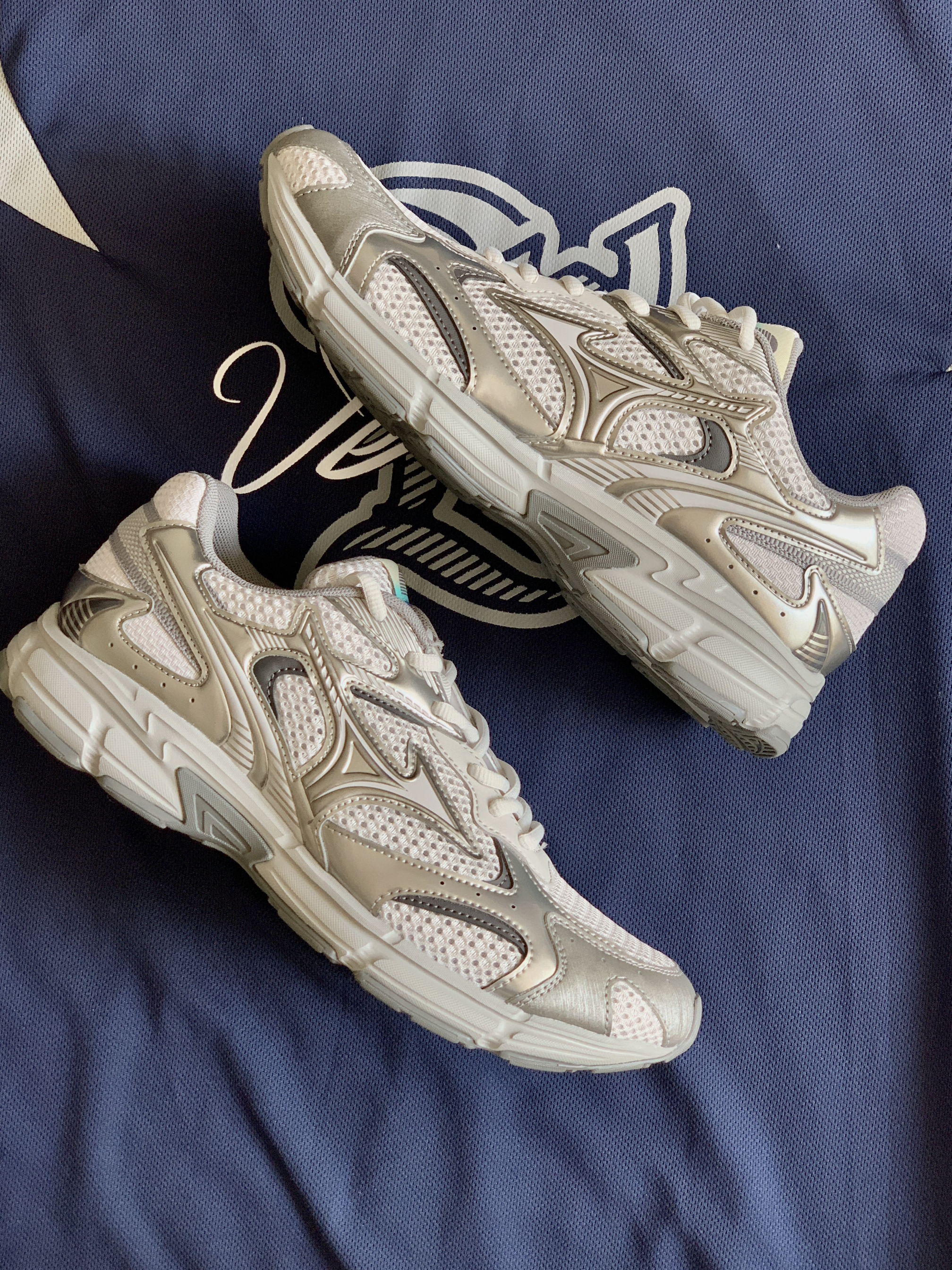 今天分享一双兼具复古感跟机能感的银色跑鞋 有一说一,我鞋柜的银色鞋已经好多了 但是当我再次看到银色单品 还是没办法控记记几 这双银色跑鞋散发出一种冷艳的味道 相较于普通的跑鞋 它多了一份机能感 米色+银色!Y2K千禧氛围感直接拉满 鞋面网眼透气适合春夏穿也不怕闷脚 厚底缓震还自带增高,我这个小个子狂喜啦! 真的是颜值和实力双在线,春夏百搭闭眼入的宝藏跑鞋!