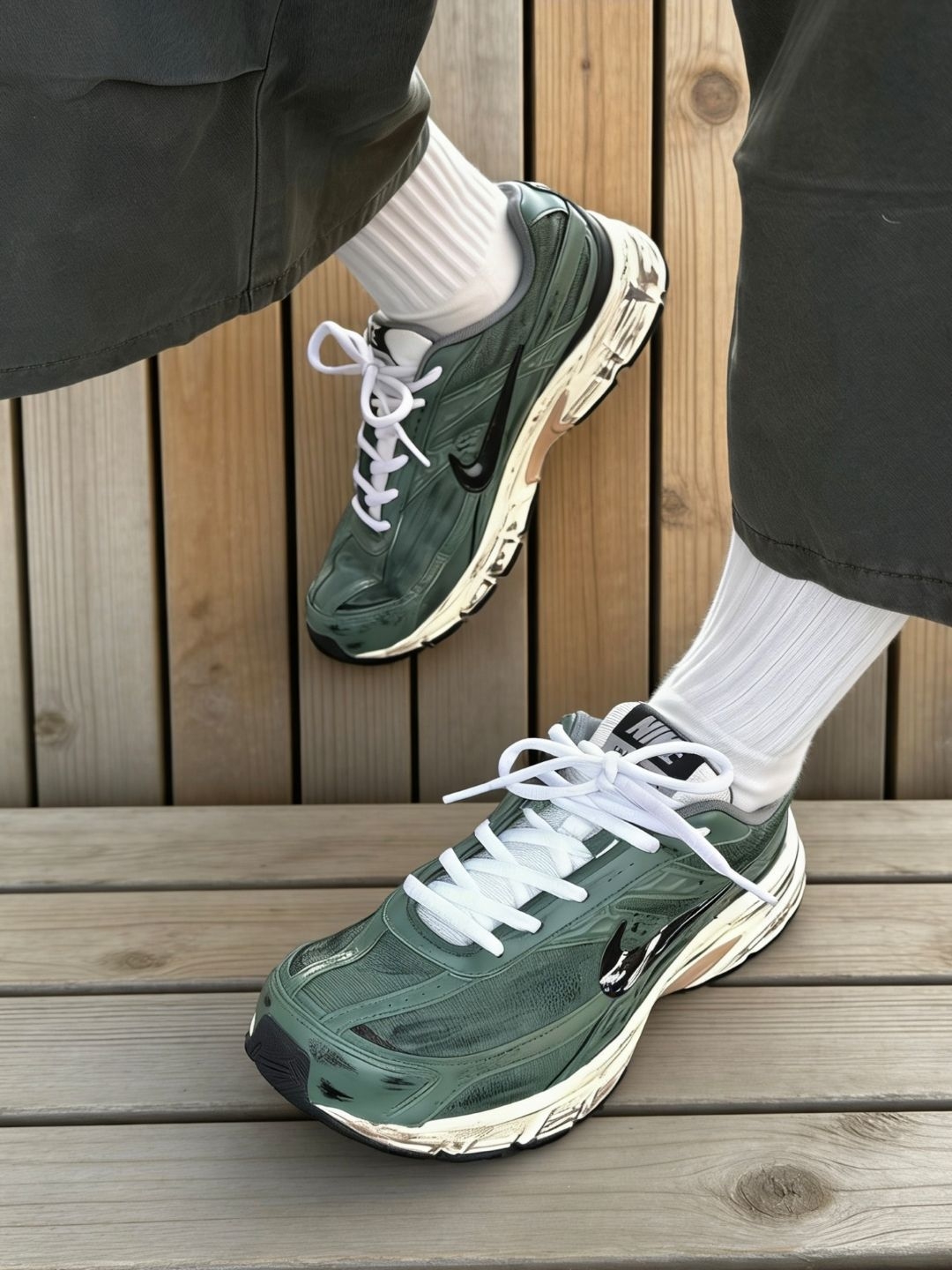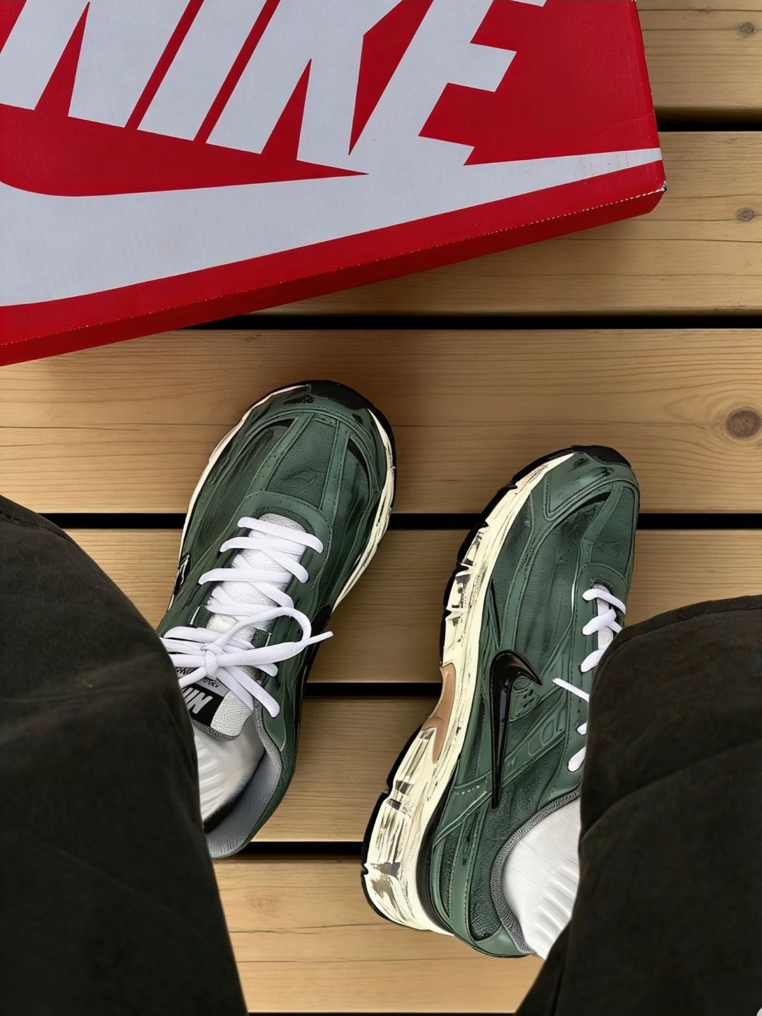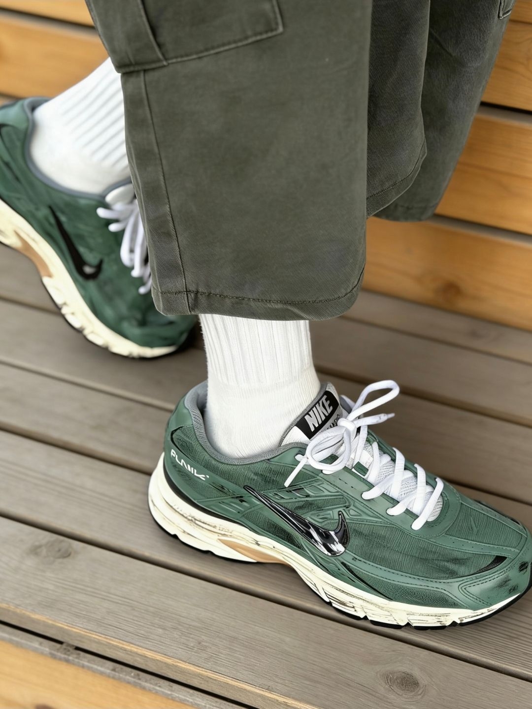 低饱和的森林绿搭配米白中底,自带一种慵懒的美式复古感,上脚也很显脚小,搭白袜子和工装裤真的👍 鞋面的线条和渐变Swoosh细节很耐看,走路的时候脚感也软软的,日常出门、压马路都很合适,配什么衣服都不挑,随手拍都很出片,最近真的天天穿它出门。