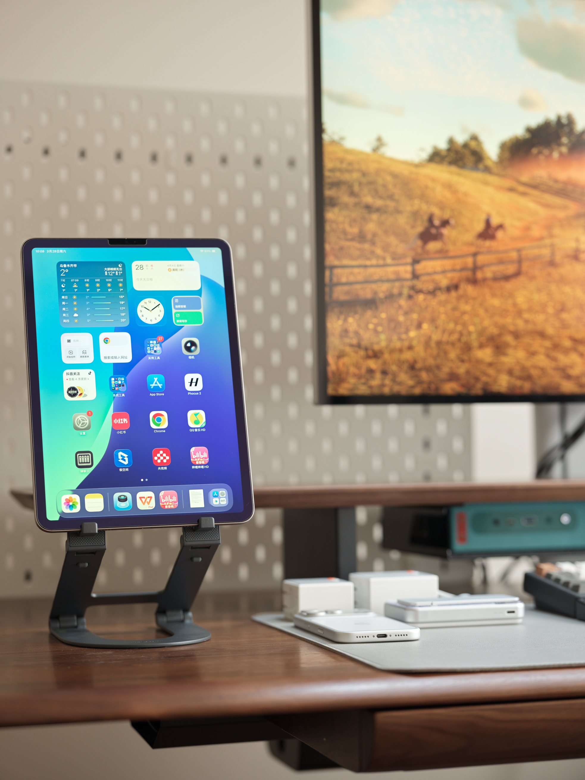 为优化桌面布局、保护颈椎,支架类产品我选用苹果官网在售款式,兼顾质感与人体工学。电脑和iPad支架均来自Twelve South品牌,CurveFlex和CurveMini采用轻量化铝金属,延续苹果极简调性,线条流畅无多余装饰,与桌面风格契合。双轴支持夸张角度调节,适配人眼高度,可折叠设计便捷,折平后能轻松放入背包,兼顾桌面使用与外出携带。