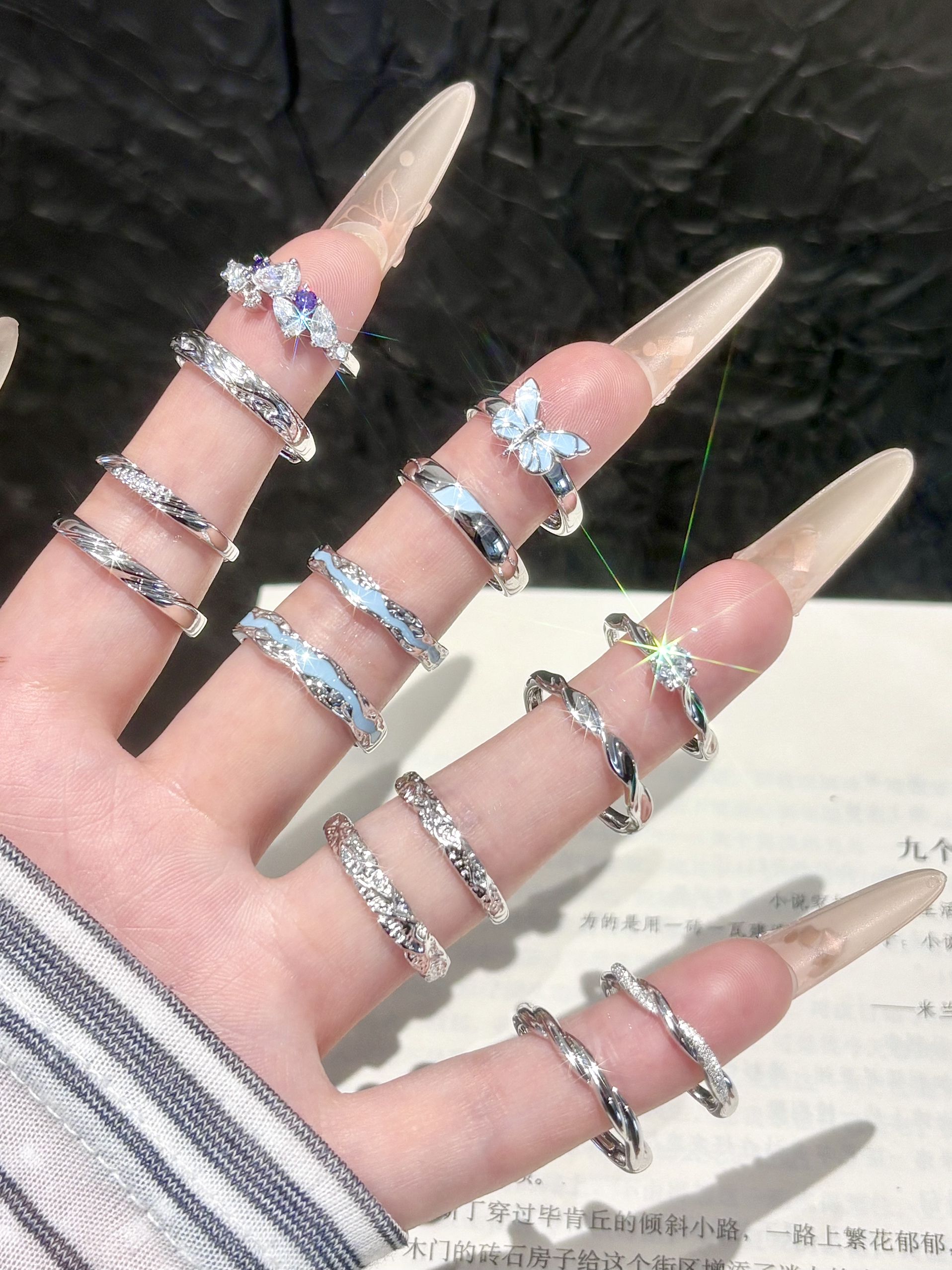 不用羡慕别人因为我也有甜甜的情侣对戒吖 这几对戒指的设计还蛮有风格的 平时我上班、约会都可以戴着哦 紫藤花和夜光蝴蝶是我常佩戴的 尺寸都可以调节戴手上也不勒手 和喜欢的人就是要戴好多漂亮对戒~
