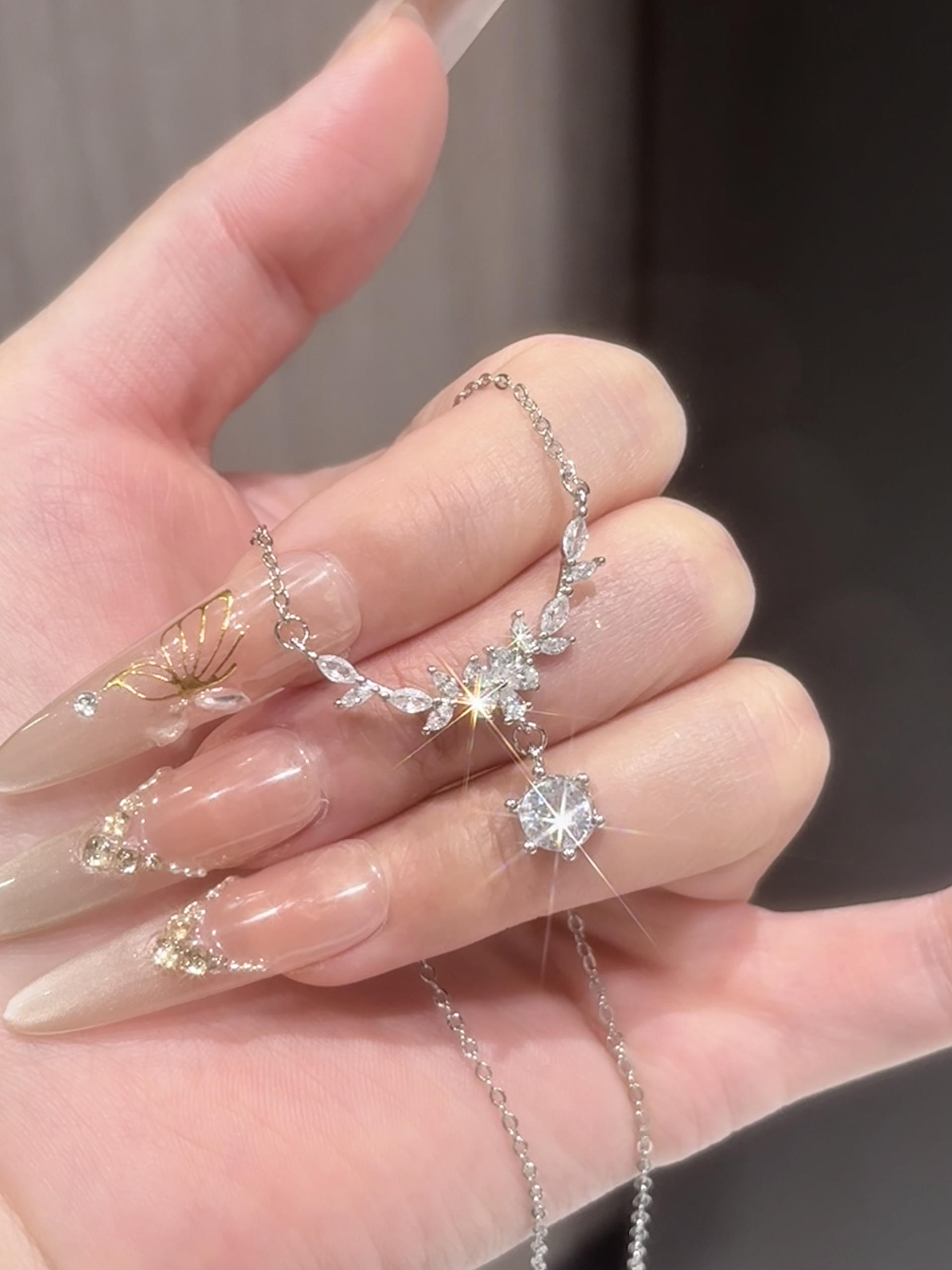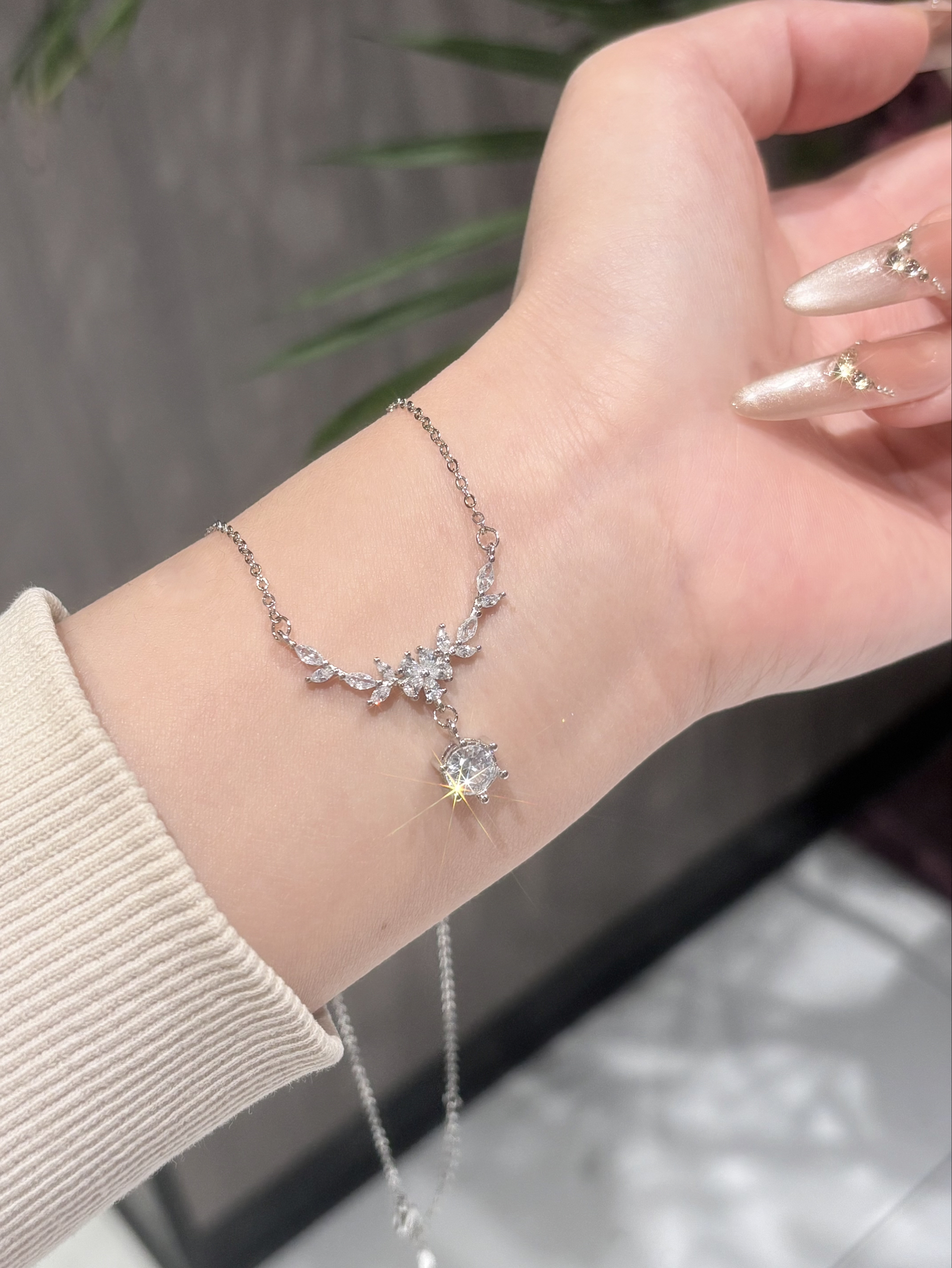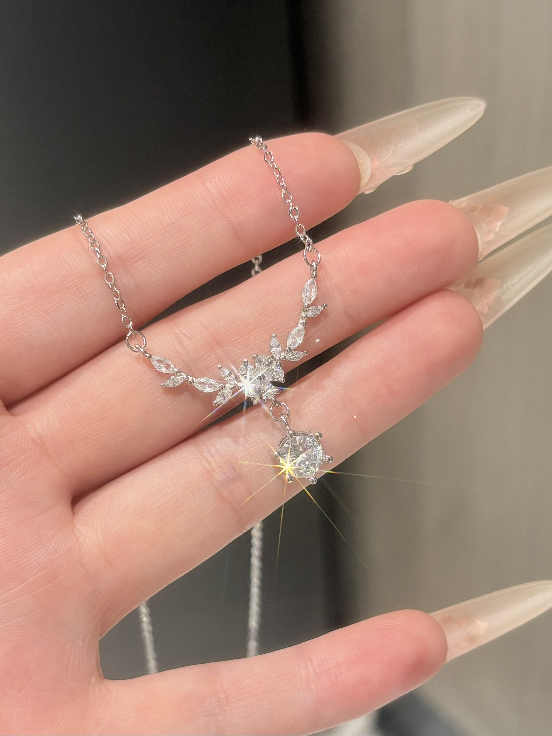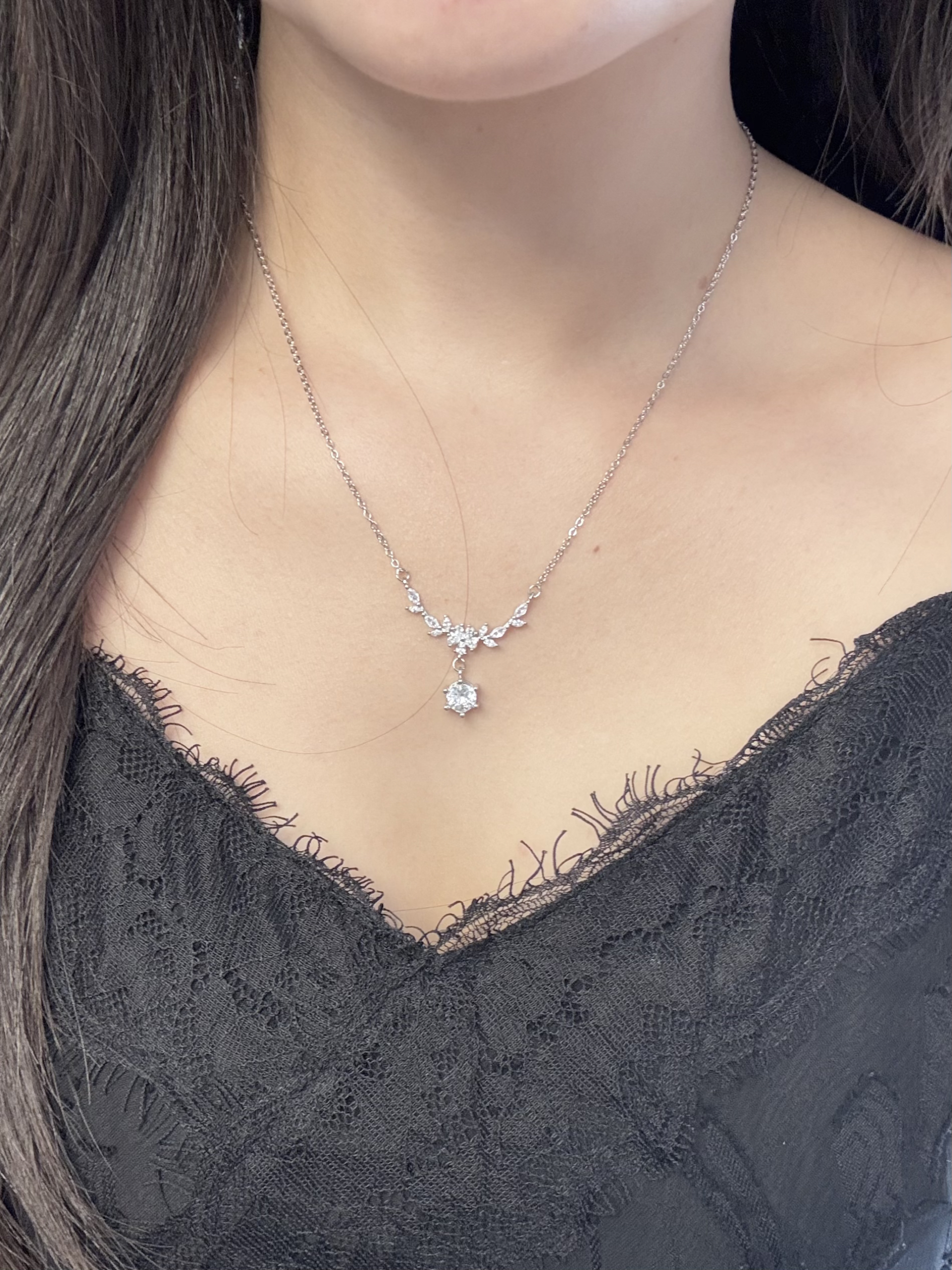 春天就适合戴blingbling的小项链吖 介条一克拉的紫藤花就是我的近期敲爱 每颗锆石在光下都闪闪哒 我觉得戴在身上也有存在感哦 穿裙子或者休闲装戴着都百搭的 还有包装礼盒拿来送人也有排面耶~