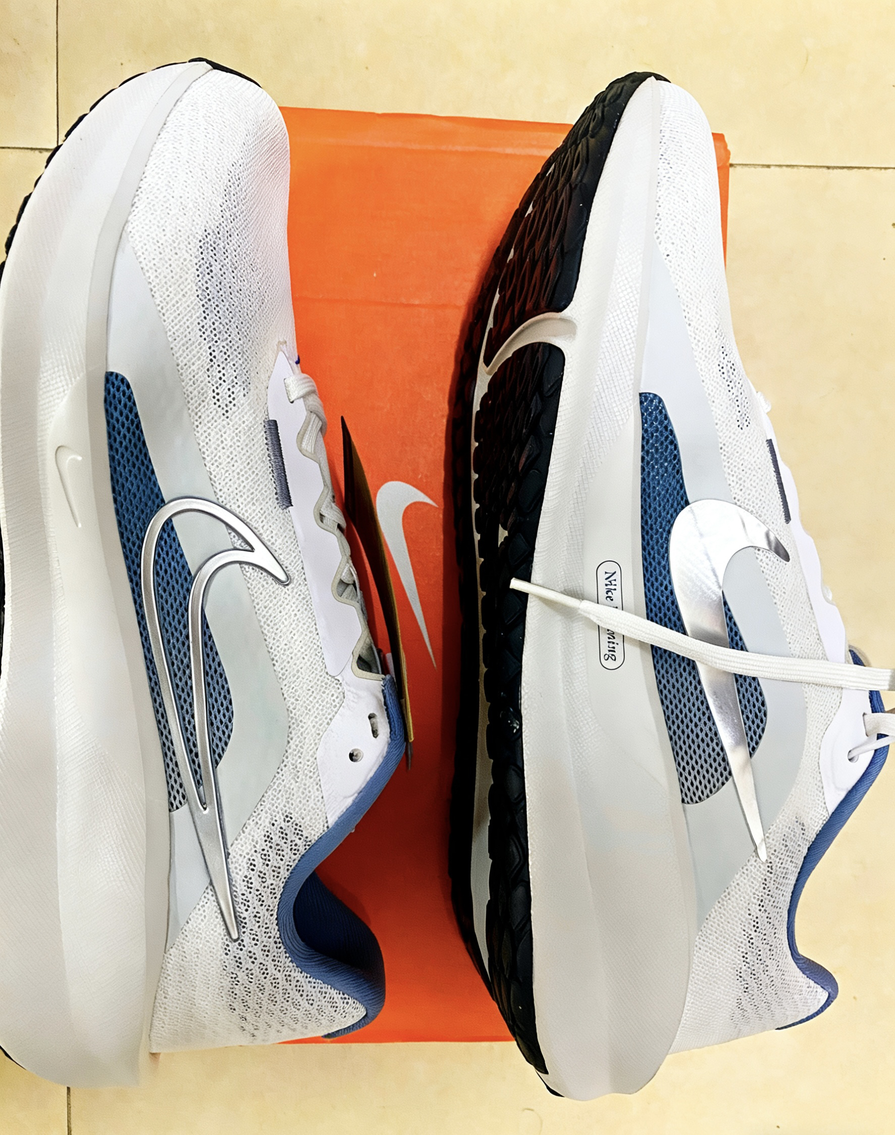 1. 颜值与穿搭适配度拉满 • 白+银+浅蓝的配色清爽干净,金属Swoosh很有质感,鞋型线条流畅,不臃肿。 • 低帮+浅色系设计,不管是运动风穿搭、休闲通勤,还是搭配牛仔裤、运动裤都很合适,日常穿完全不违和。 2. 透气舒适,对宽脚友好 • 工程网眼鞋面透气性优秀,春夏穿不闷脚、不捂汗,长时间走路双脚也能保持干爽。 • 鞋楦相对宽松,对宽脚、高脚背人群很友好,不会挤脚趾,日常穿着的包裹...