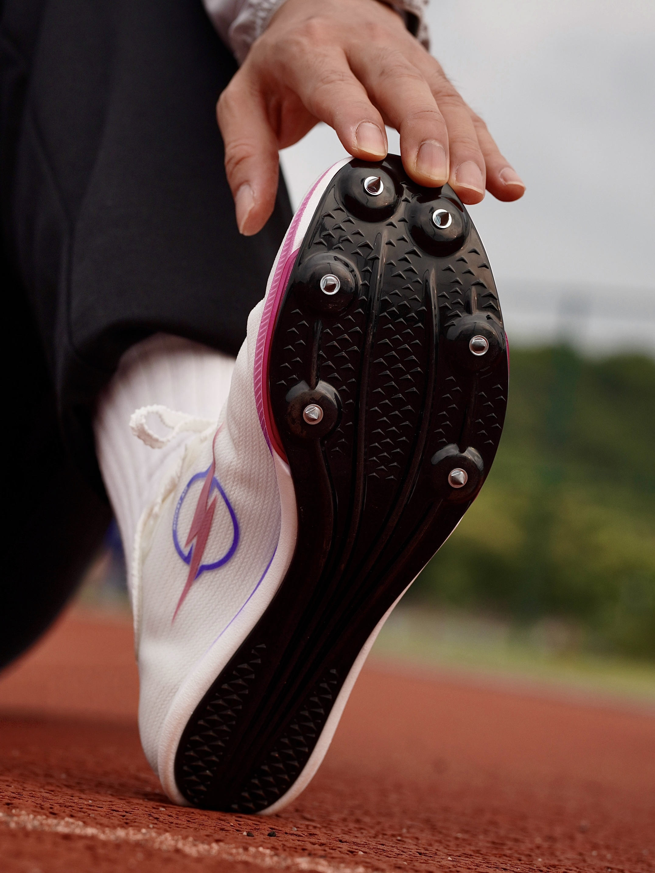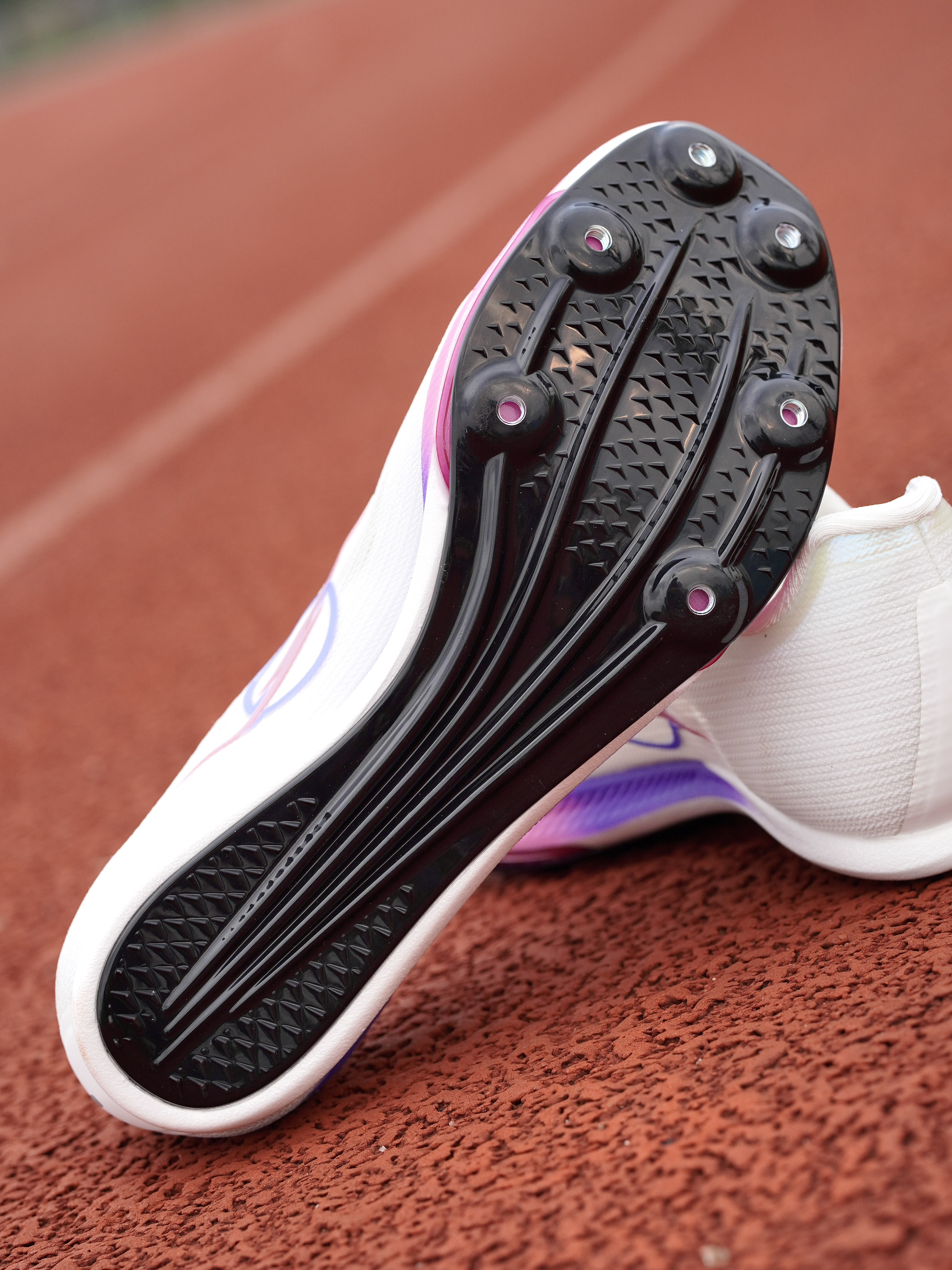 最近,在田径场跑步训练,我一直再穿这双:沃兰迪火箭气垫钉鞋(六钉闪电版)⭐ 这款6钉版本,钉位布局和自家7钉版比,做了一个改变减,把中足那一颗钉减去之后,使得过弯流畅度提升不少,步态引导自然,发力灵活省力了。 重量方面,单只40码,155g克左右。比Maxfly轻10克。 中底是81cm²氮气气垫,结合过渡泡棉,上脚感受,前掌气垫软弹,回弹干脆!气压比Maxfly还足,过弯的时候,表现相当不错!碳...