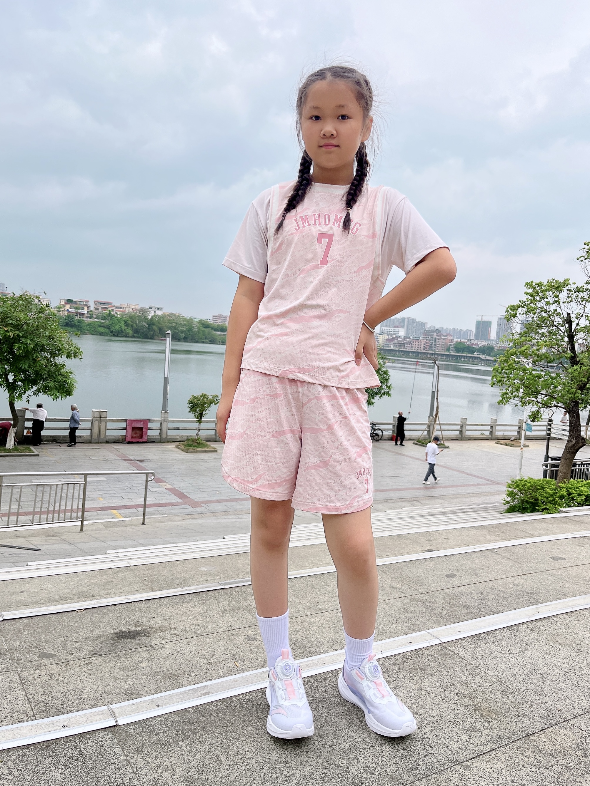 家有爱运动的娃,这双鞋直接闭眼入! 拼色设计超吸睛,上脚活力感拉满 缓震大底软弹到飞起,跑跳、打球、上学都能穿 网面透气不闷脚,夏天穿也清爽 搭配插肩袖T+网纱运动裤,甜酷感直接拿捏