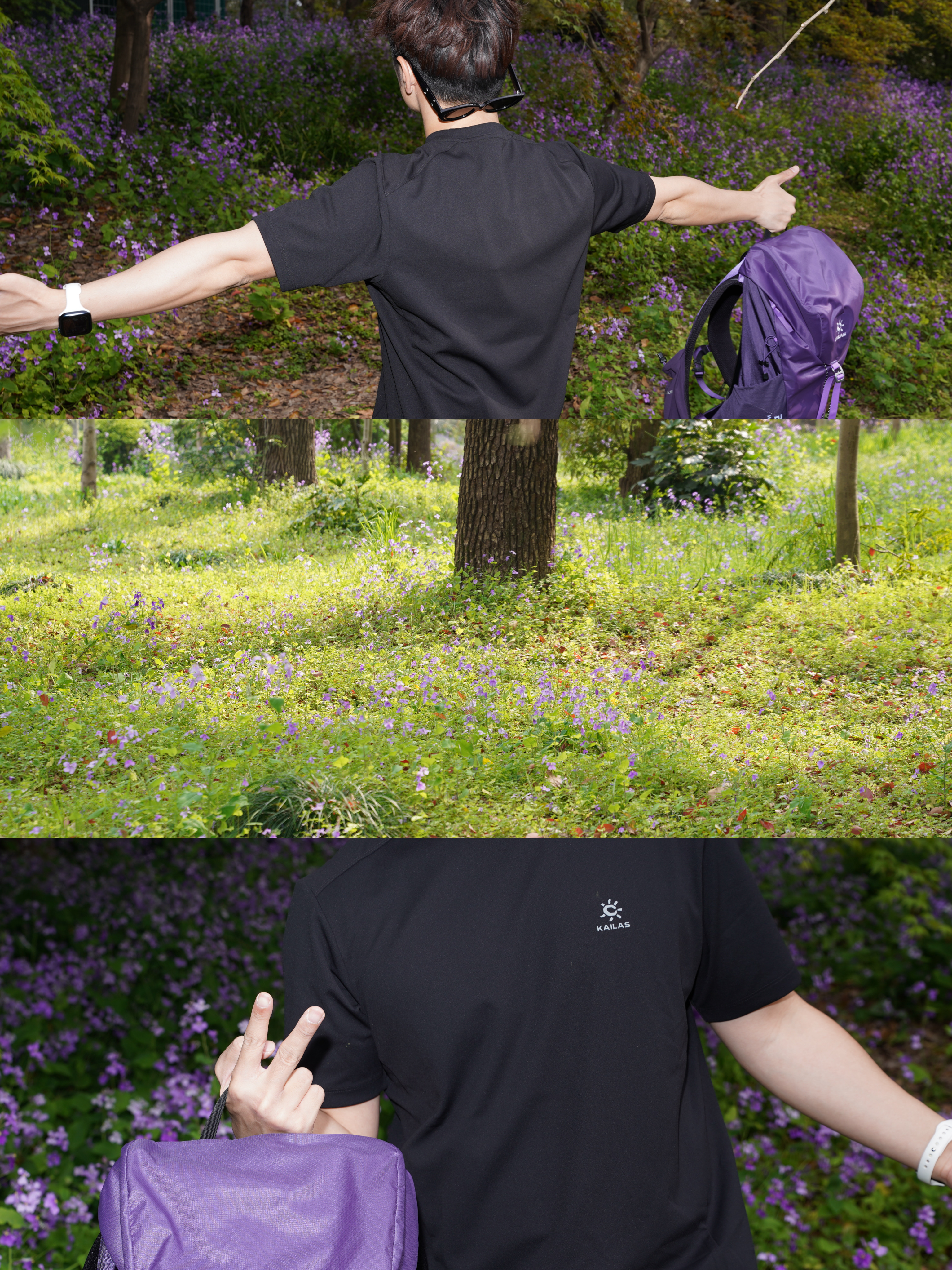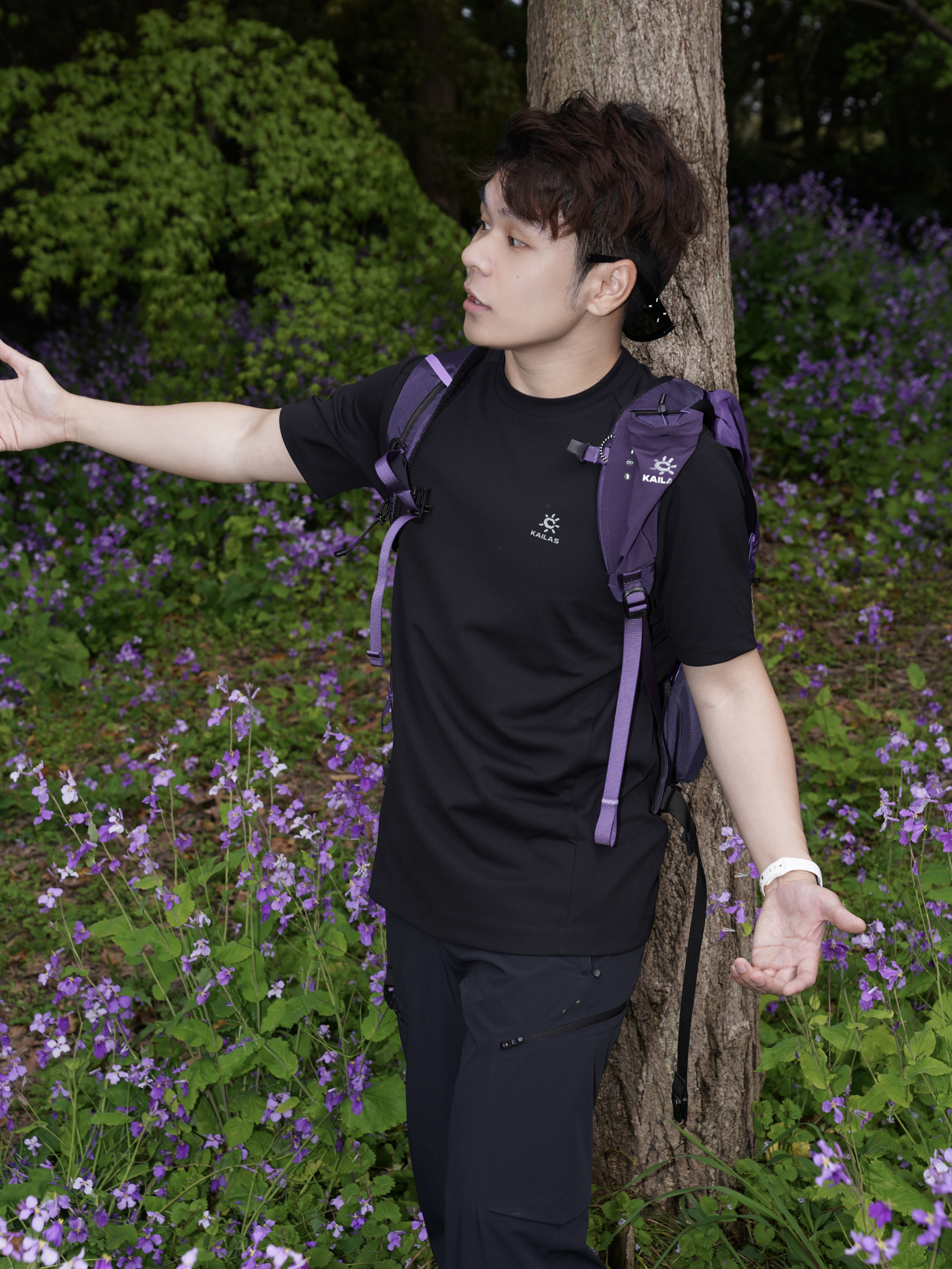 - 初春的山系穿搭,干净又利落,最近迷上凯乐石这套山系户外风,简单搭就很有质感,日常、徒步都合适。 - 26新款速干短袖是真的舒服,面料吸湿排汗还抑菌,春天走一天也不闷汗,版型合身不紧绷,干净清爽。 - 配这条黑色软壳裤,阔腿直筒很显利落,防风防泼,微弹面料活动自在,日常穿也不突兀。 风洞20L深锂辉紫背包是亮点,颜色高级又特别,轻量化设计久背不累,20L容量刚好装下一日所需。 - 整套低调有细节...