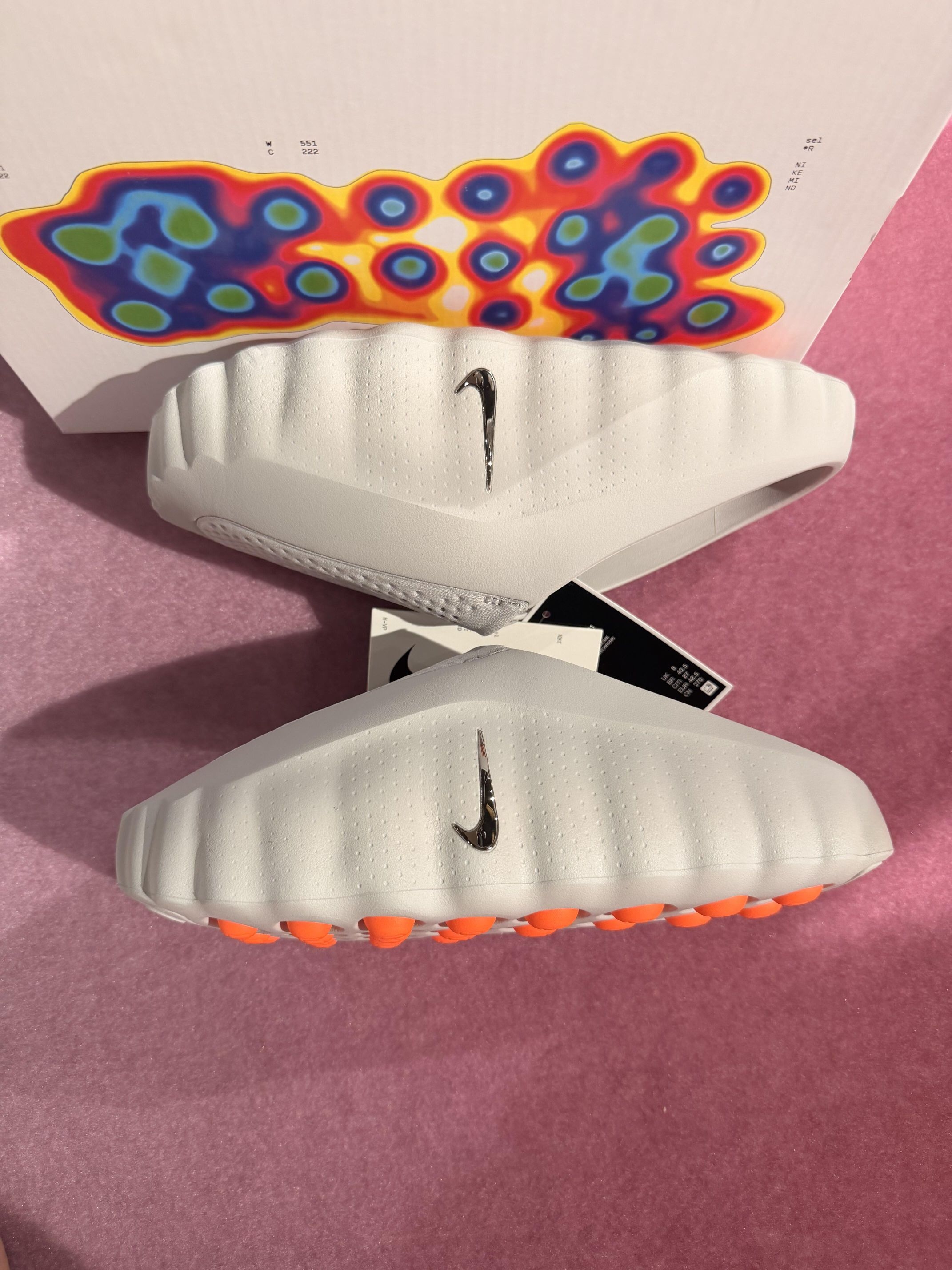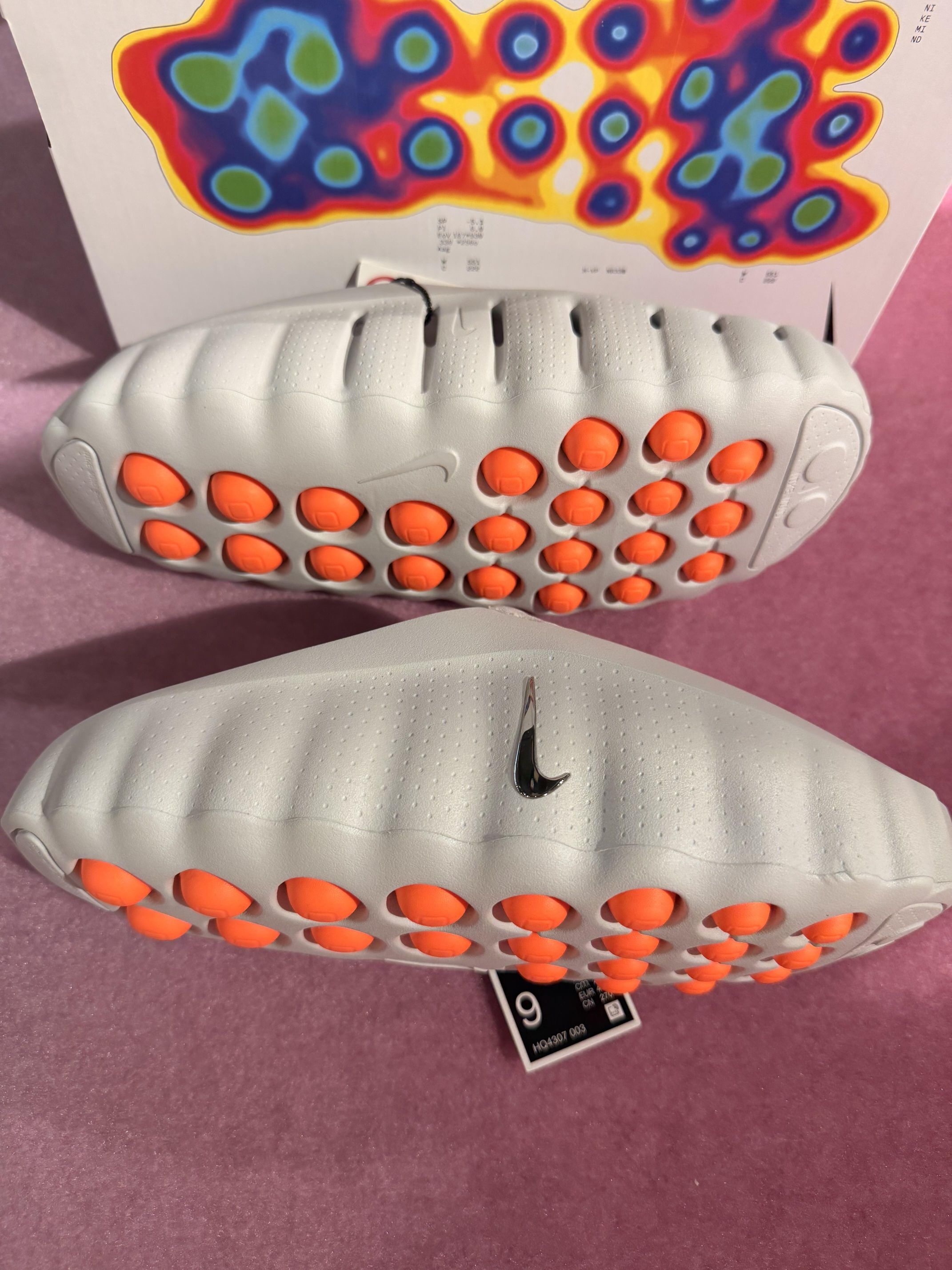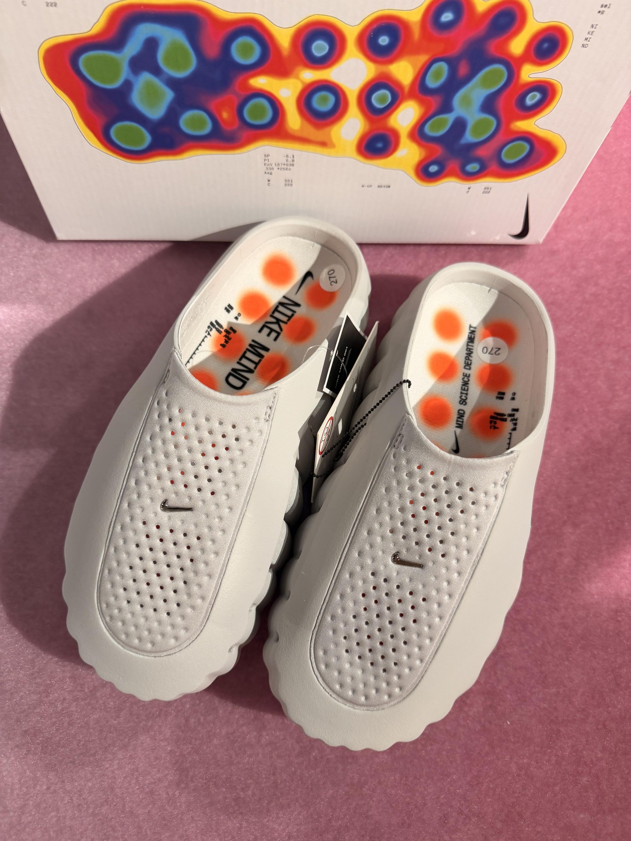 Nike Mind Science穆勒拖太戳我了💥 浅灰色调高级感拉满,鞋面的透气孔设计超贴心,脚感软乎乎的像踩在云朵上☁️ 鞋垫的橙红渐变图案搭配“MIND SCIENCE”字样,潮流感直接拉满,日常出街或者运动后穿都超合适,Nike这波设计真的赢麻了!