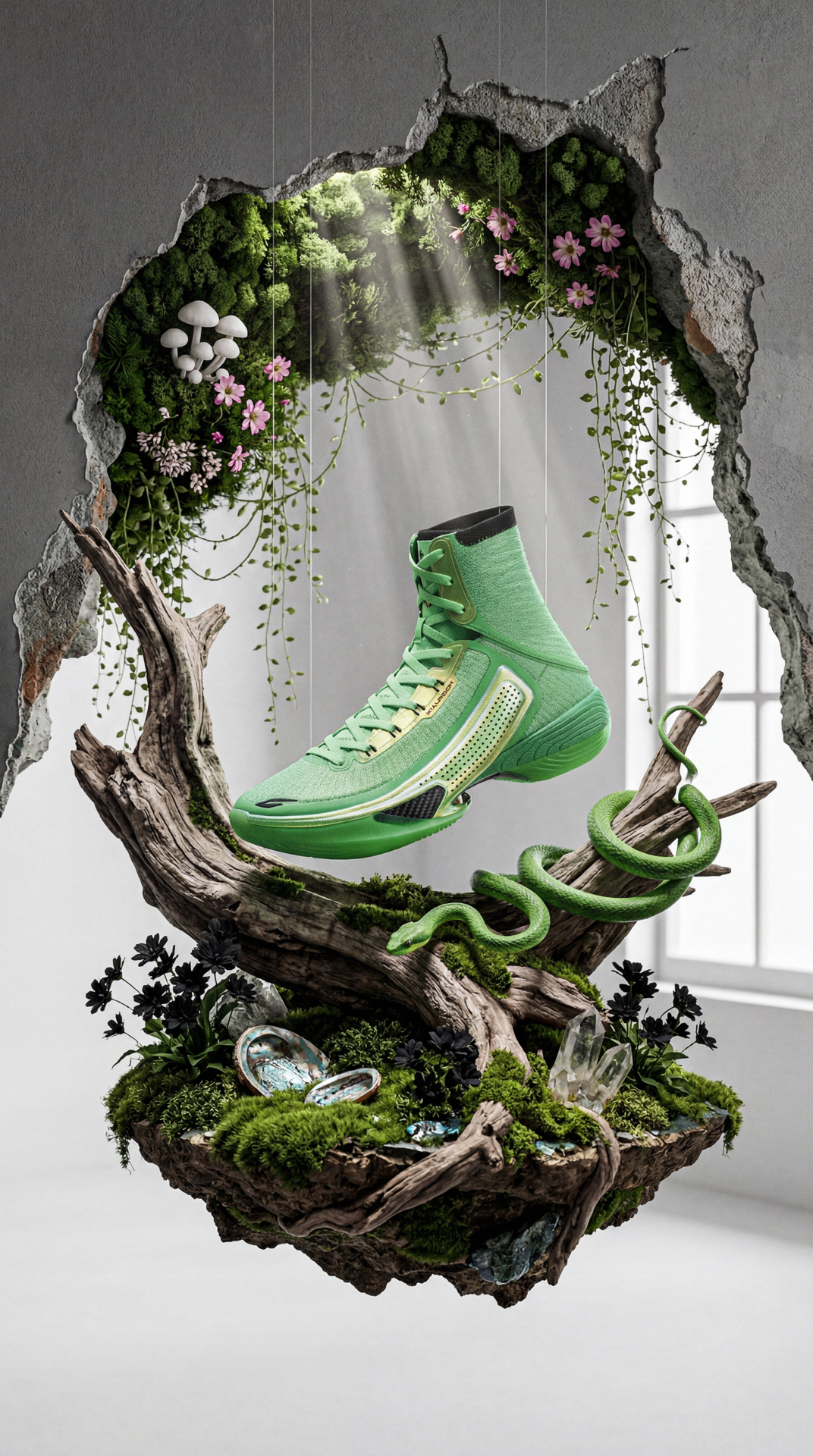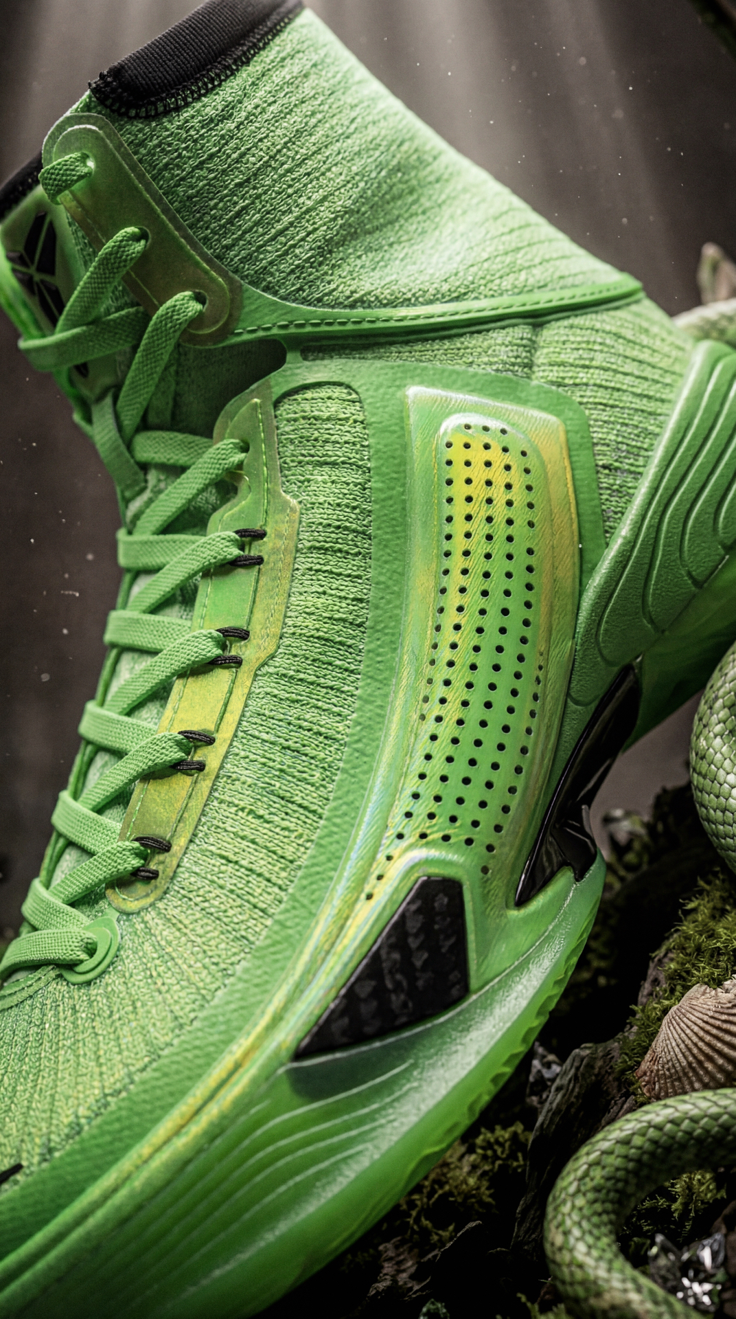这个配色灵感来自竹叶青,实物有电镀绿的感觉 颜值相当不错,很合适跑跳型选手