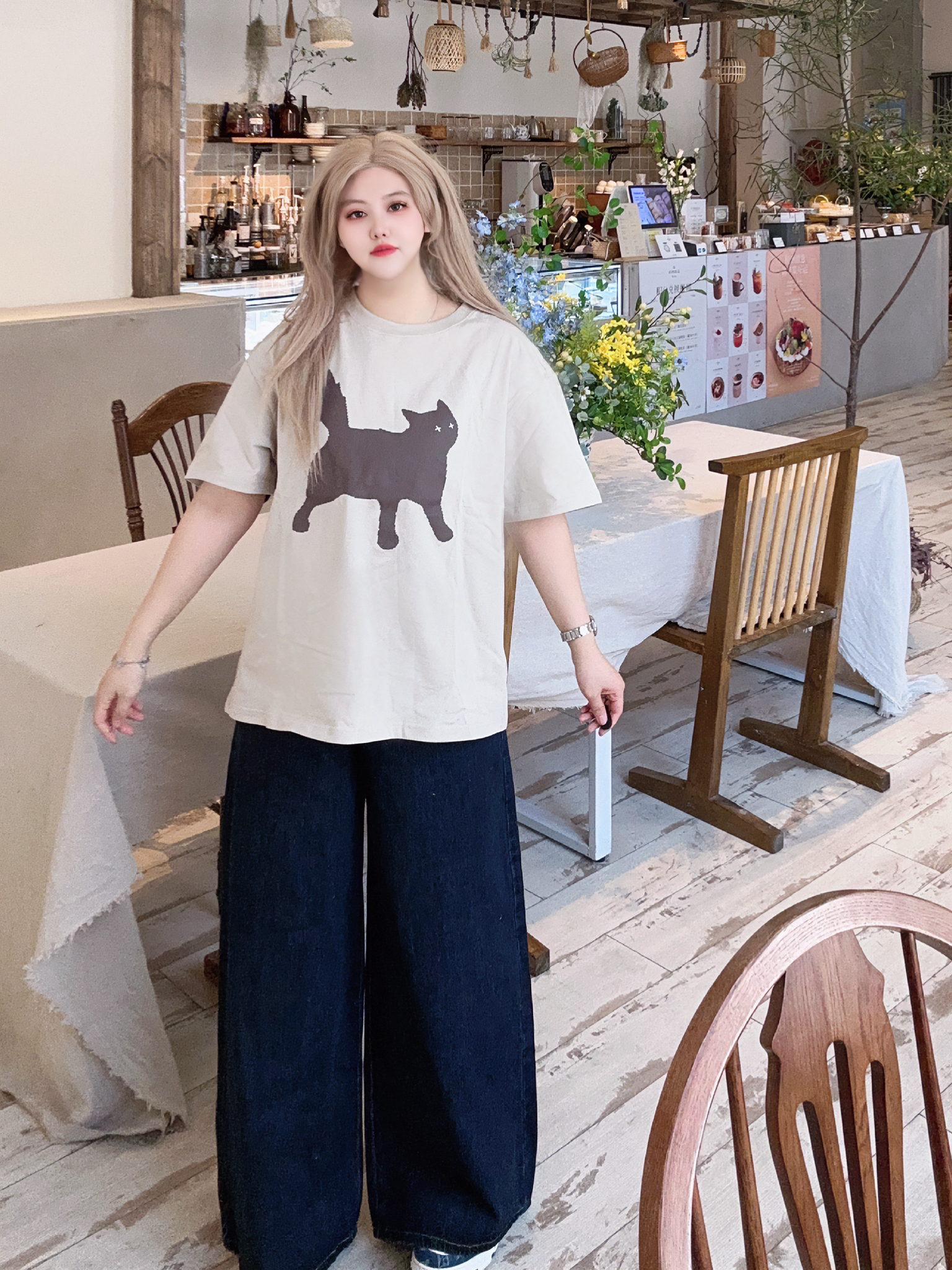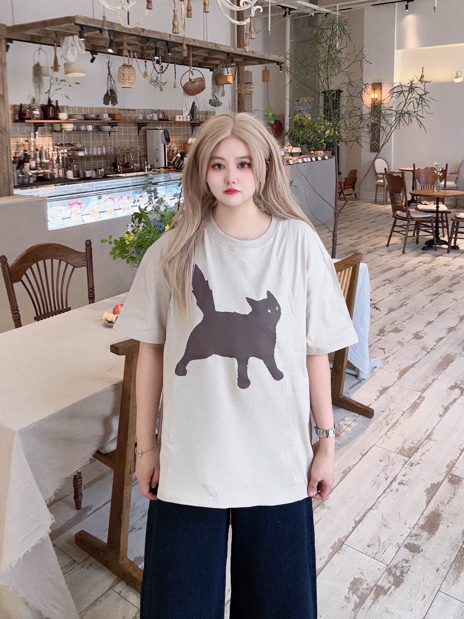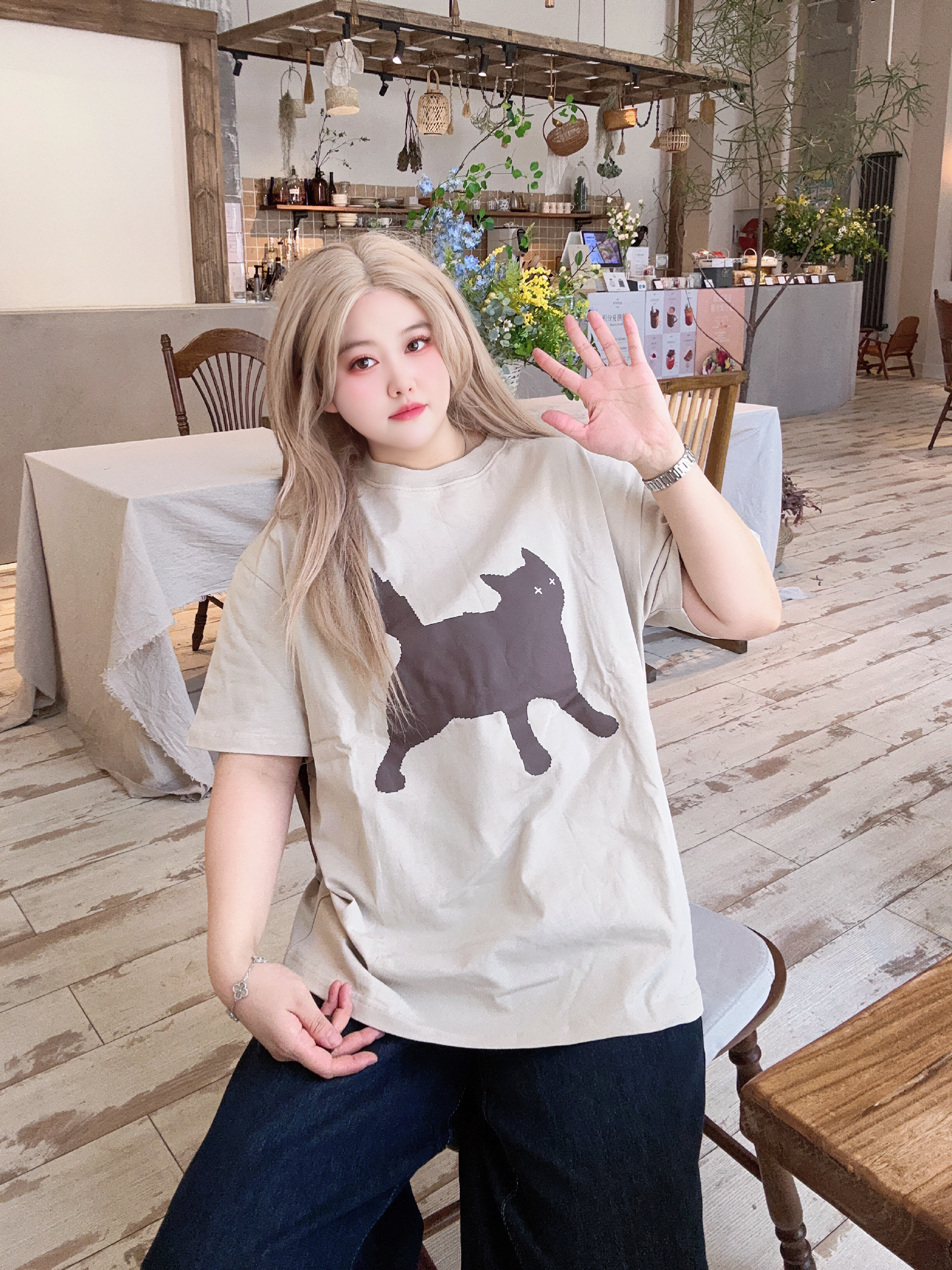 这件小猫T恤真的是我的心头爱, 宽松自带慵懒感, 不挑身材还超显瘦!!随性又松弛~ 宽宽松松的穿起来敲舒服的! 也没有什么束缚感简约又不简单, 随性搭配一条牛仔裤或者休闲裤就好啦! 百搭又好穿~ 170/119/L Suamoment