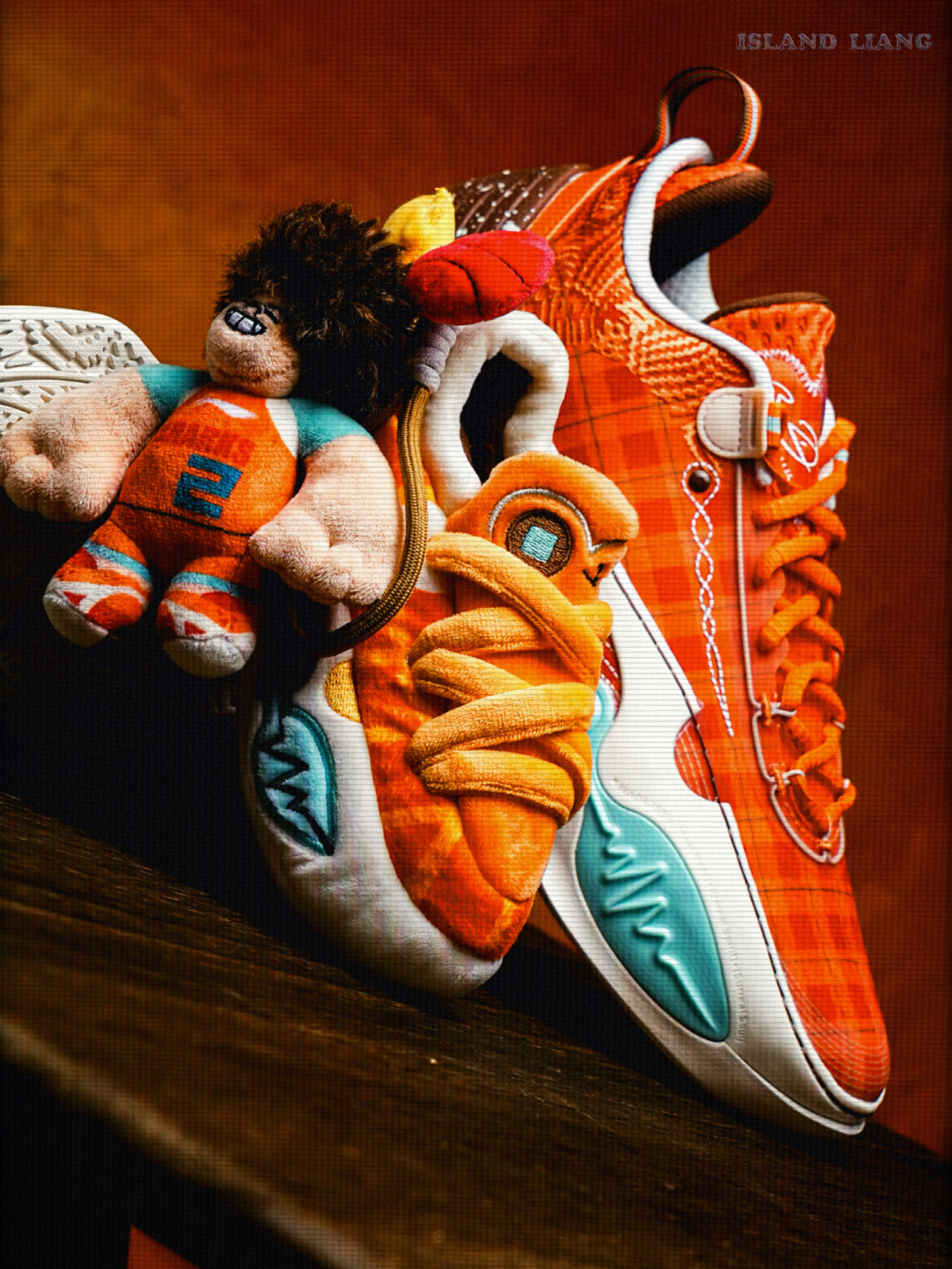 用复古游戏机电子屏幕的效果来看这双全城14的联名 这次选择的是《无敌破坏王》中的主角拉尔夫 再梦幻联动一波上海队的外援洛夫顿 有种洛夫顿cosplay一波拉尔夫的直视感 毕竟两者的破坏力和统治力确实有得一拼 而全城14的这款配色也变更成更透气的面料 匹配于如今的春夏实战需求 是个很不错的变动 更何况这次入手还有机会获得洛夫顿与鞋子的玩偶 造型与细节可以说是相当还原了 玩偶线下据说先到先得 兄弟...