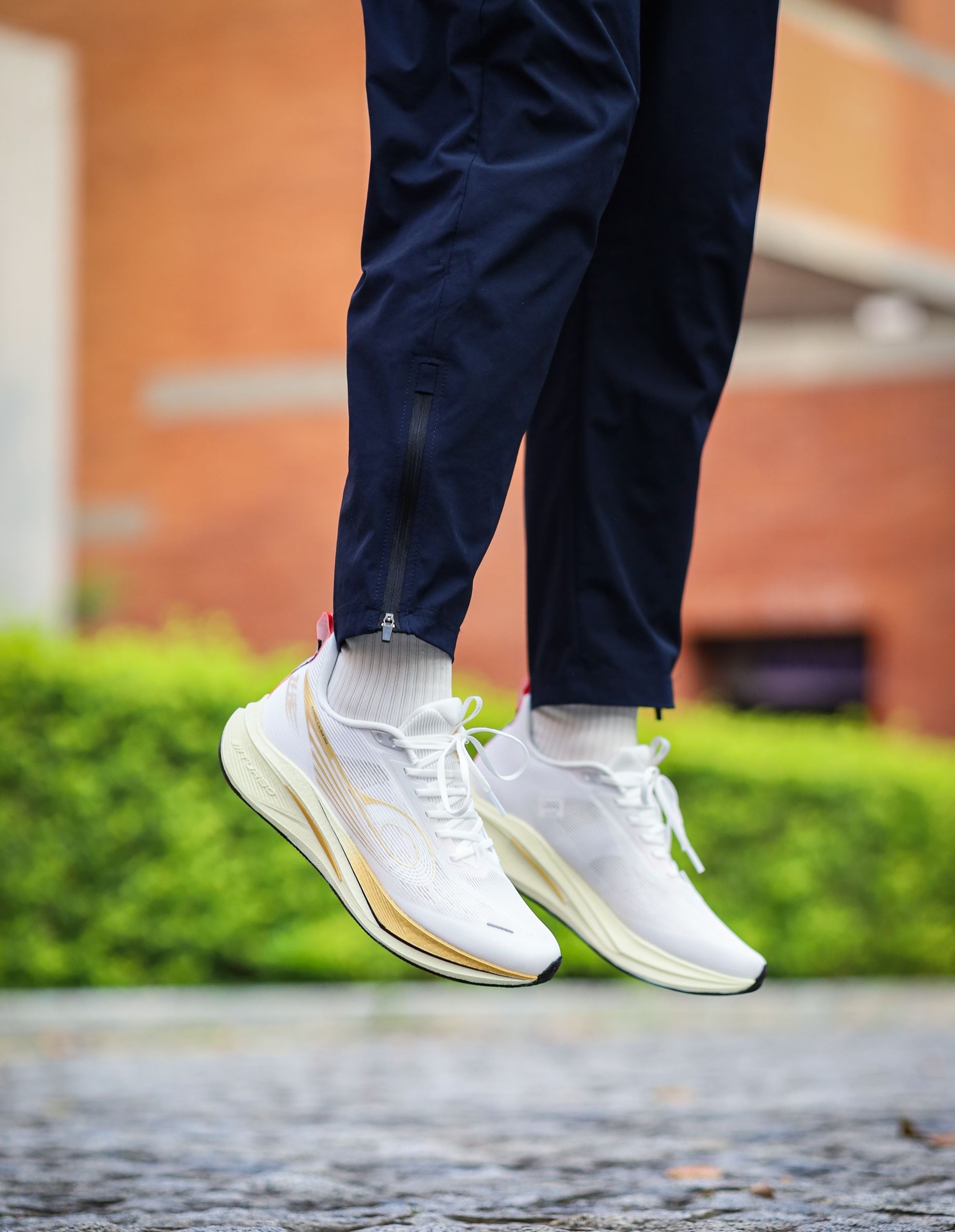 中乔飞速4.0又出新配色了,这双叫“一马当先”,白金配色看着就挺精神。后跟还有几个篆体字,仔细一瞅——嚯,“四项全能”“马到功成”,这寓意谁顶得住啊。 鞋面薄薄的,透气不闷脚。全掌巭TURBO中底脚感韧弹,不软不塌,跑起来回馈响应快而且不卸力。内置的三叉TPU能给到明显的推进感,但又没有碳板鞋那种硬邦邦的板脚感,日常穿也不累。 没碳板,门槛低,落地稳,对膝盖友好。体考体测、日常慢跑、校园通勤,一双...