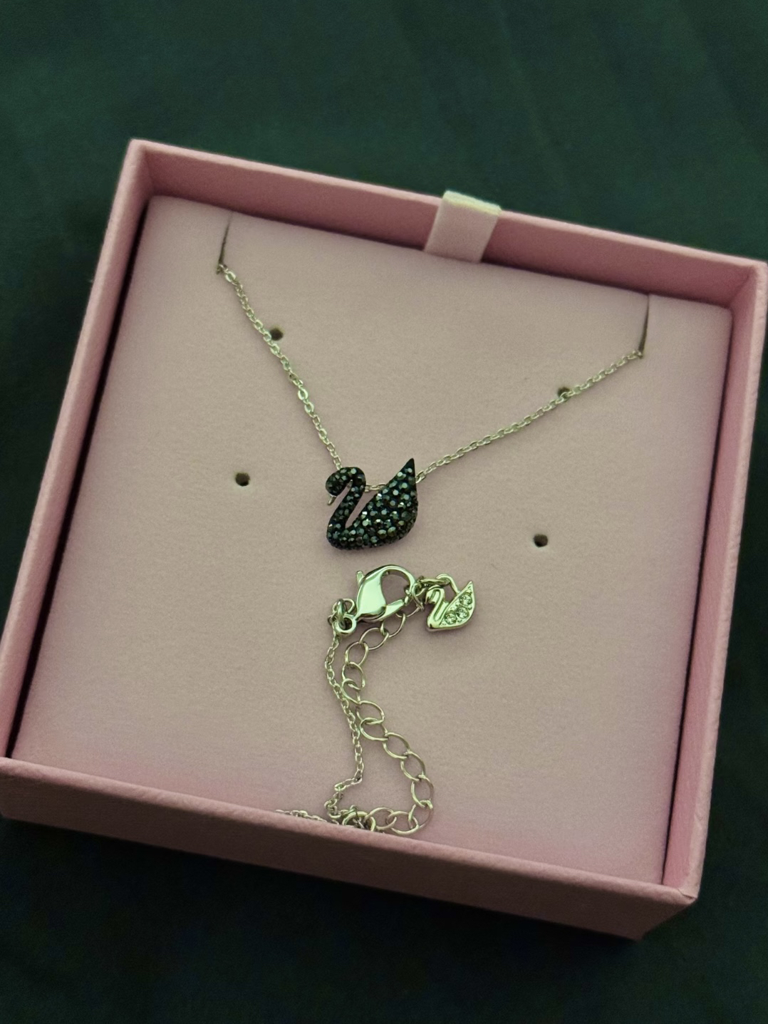 男朋友送的施华洛世奇黑天鹅项链也太会选了!黑水晶超闪又低调,玫瑰金超显白,戴在锁骨温柔又精致。日常百搭不挑衣服,出门被问好几次,越看越喜欢,心意和颜值都拉满~上班穿V领针织衫时,项链长度刚好在锁骨窝,低头就能看到细闪;周末配牛仔外套,精致感和休闲风平衡得刚好,你们平时戴项链喜欢配什么领口呀?
