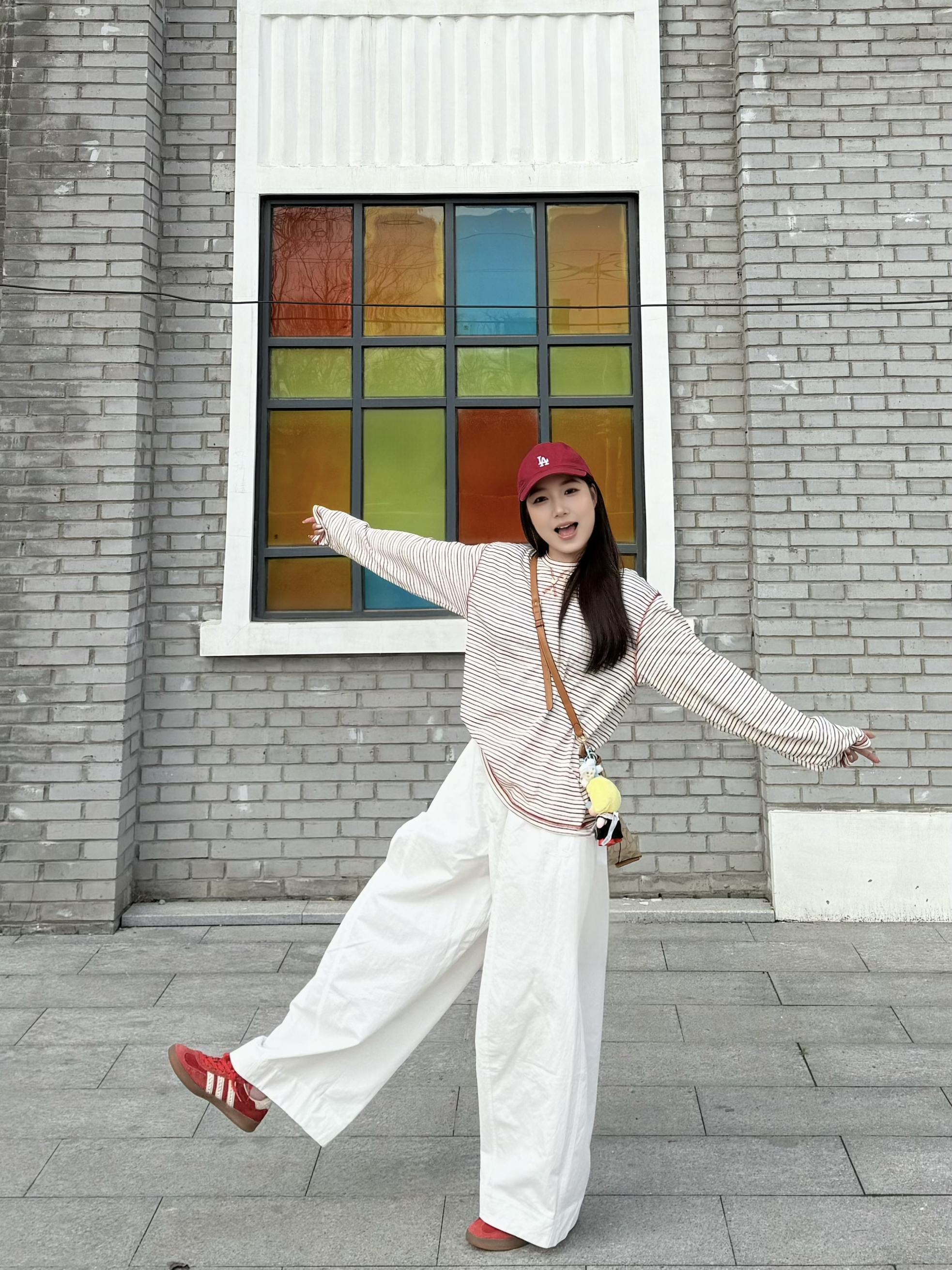 👕条纹长袖T恤:宽松落肩版型,慵懒感直接拉满,红白细条纹显白又减龄,单穿内搭都绝了,早春日晒天穿刚刚好,休闲又显精神! • 👖白色阔腿裤:梨形身材的本命神裤!垂坠感直接拉满,巨藏胯藏肉,把腿型修饰得又直又长👍