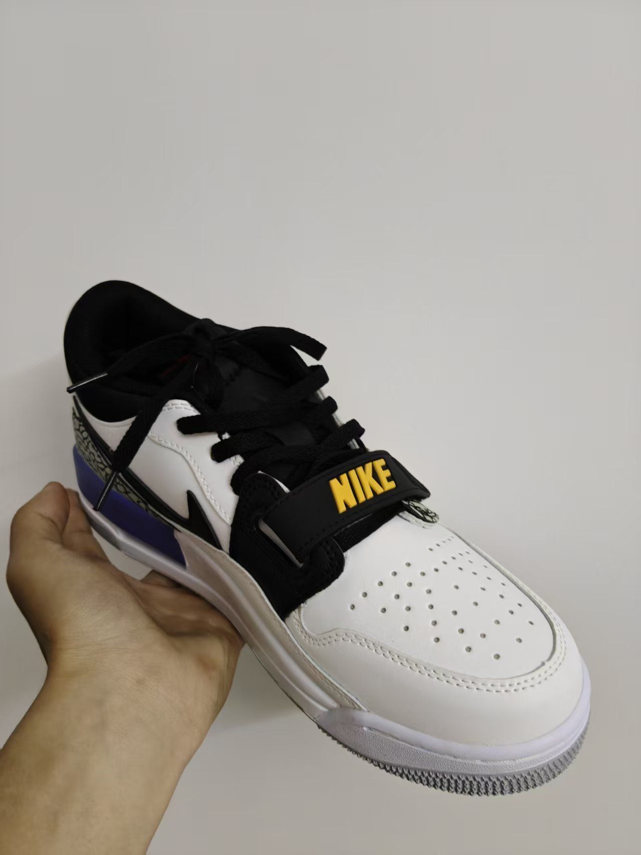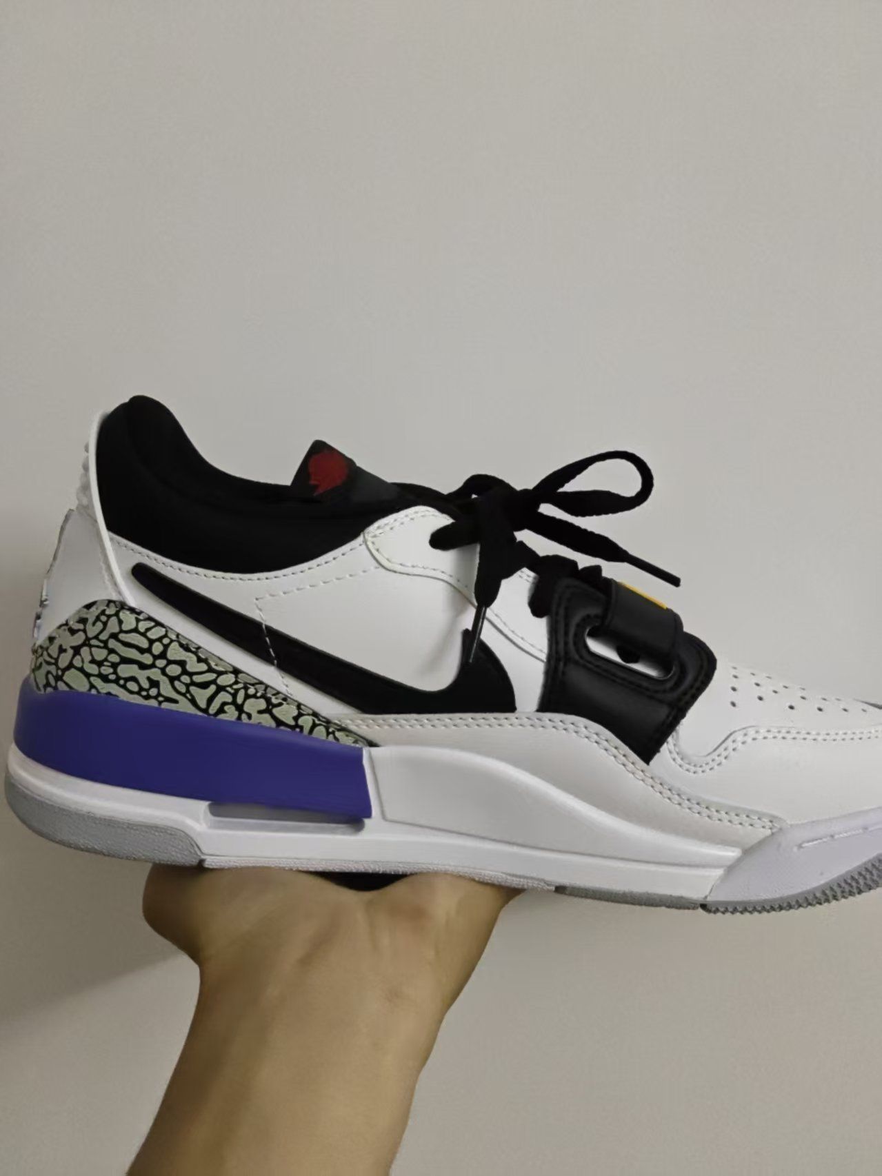 入手这双Jordan Legacy 312 low白黄紫真的很惊喜,整体颜值很在线。白黄紫撞色清爽亮眼,低帮复古鞋型搭配皮革鞋面,质感扎实细腻,街头感拉满,搭牛仔裤、运动裤都很出片。上脚包裹性不错,魔术贴设计贴合脚面,后跟气垫有基础缓震,日常通勤、逛街走路脚感舒适,久走不易累。皮革材质耐穿有型,就是鞋面容易留折痕,白色部分要勤打理。鞋身略偏硬,需要短暂磨合,宽脚建议选大半码。作为潮流复古篮球鞋,颜...