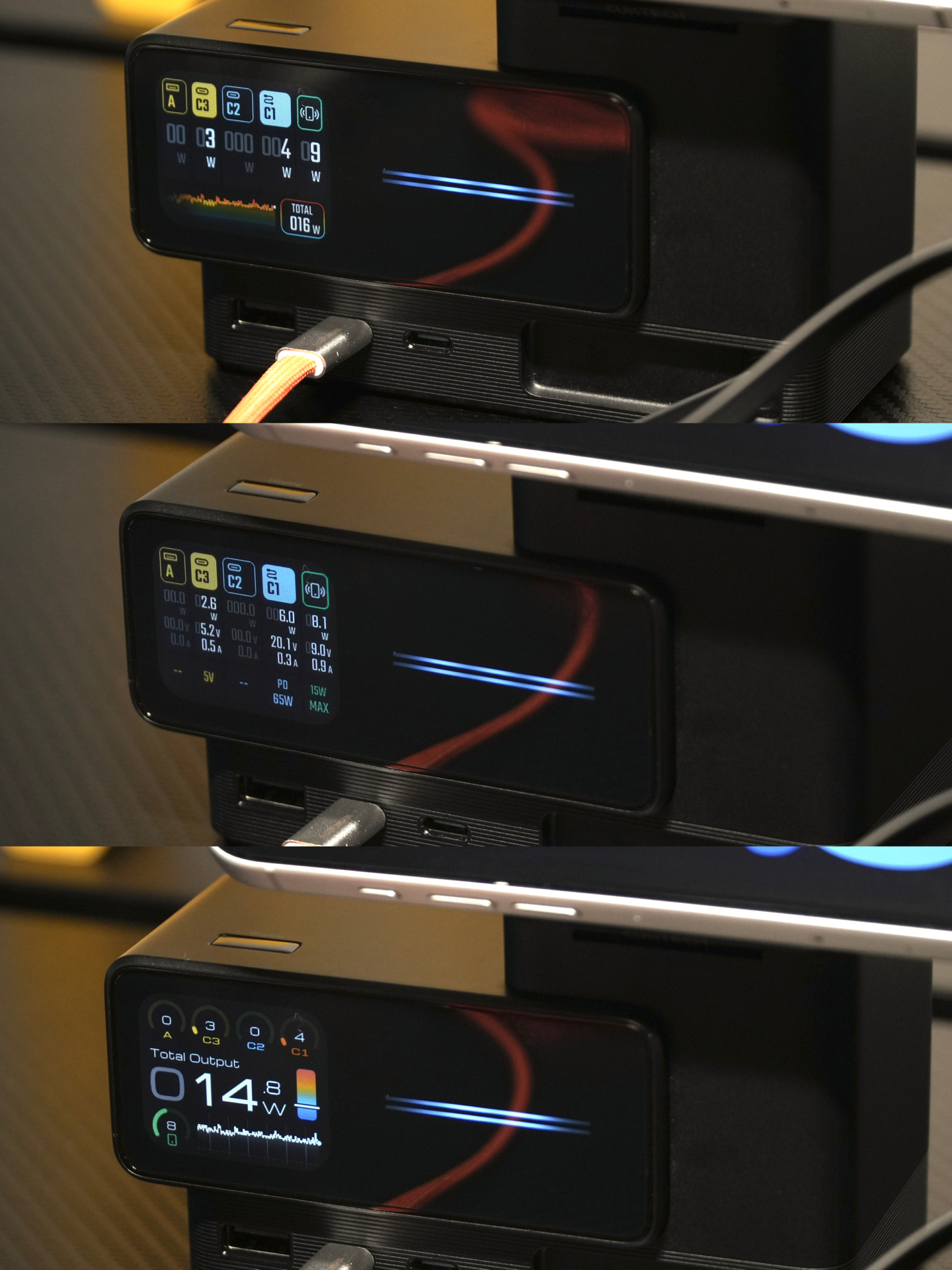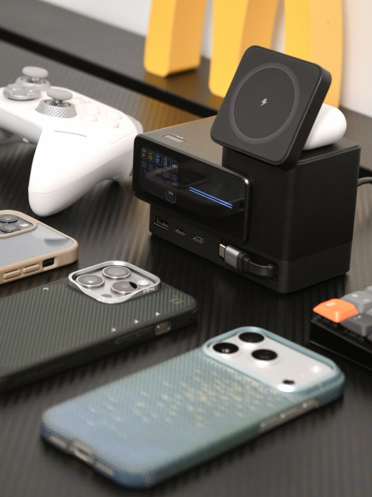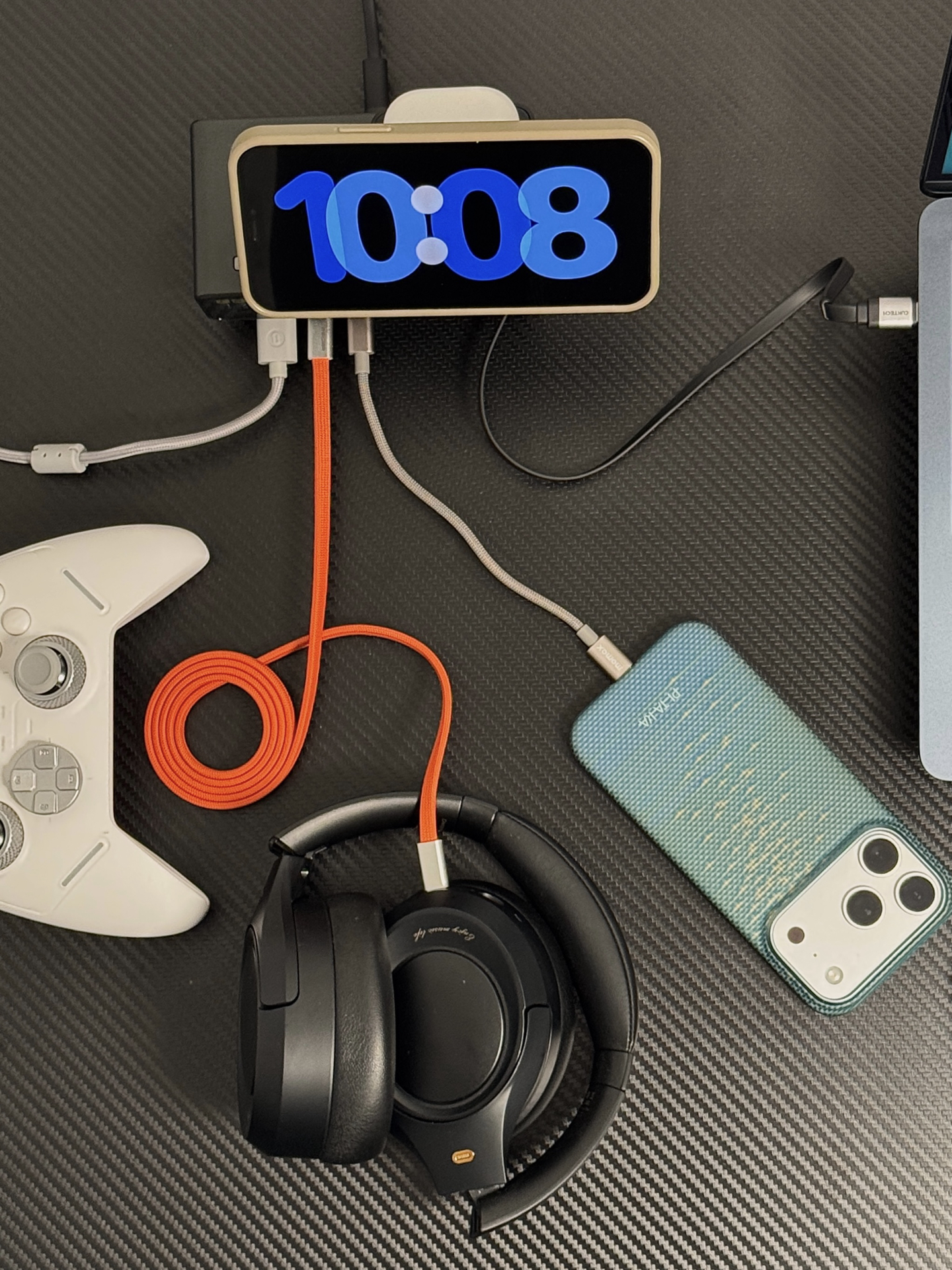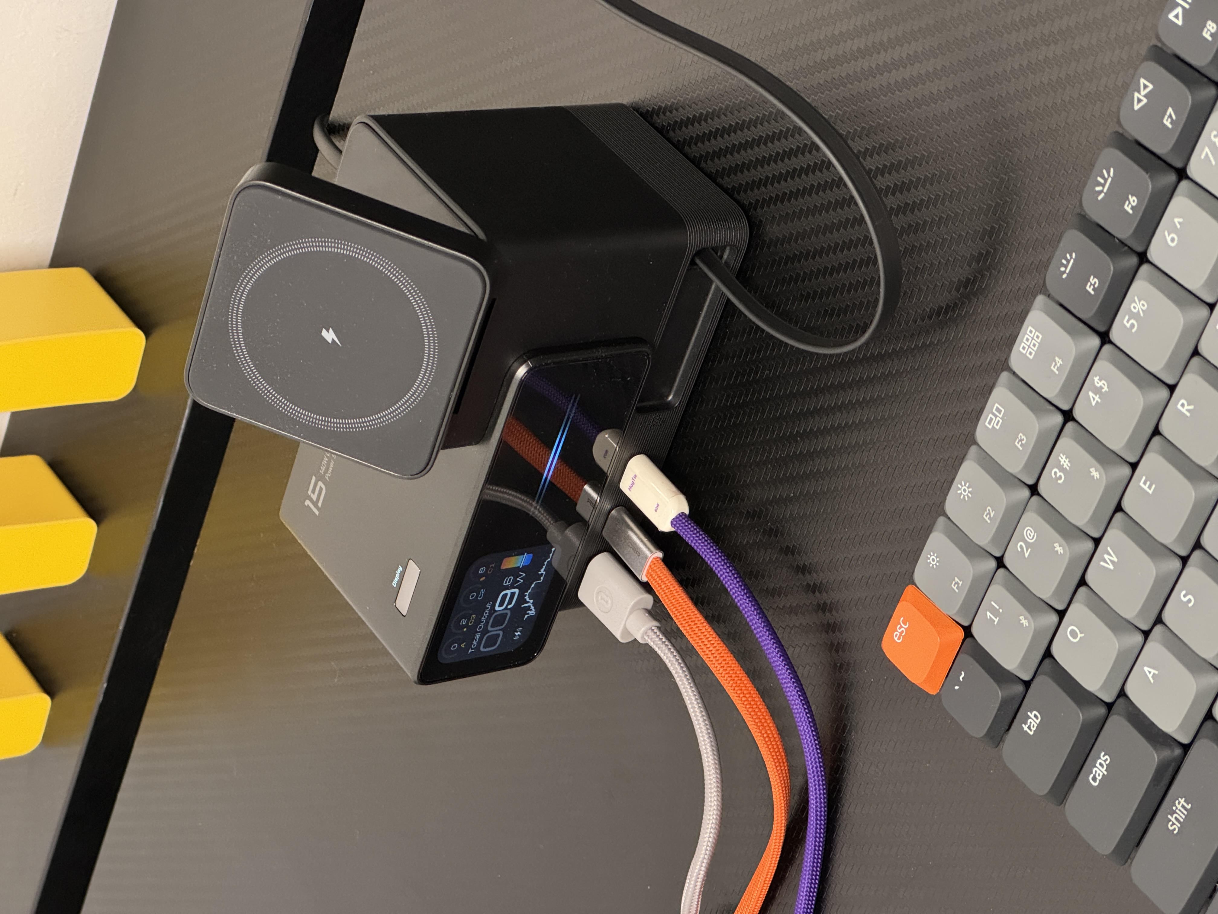 我终于把桌面那堆乱糟糟的充电器全扔了!现在一个就能搞定手机、耳机、MacBook,6台设备同时充都不打架😎。自带的伸缩线收纳超方便,就是体积有点大,占了我小半块桌面空间🤏。屏幕还能看充电状态,强迫症表示一本满足!